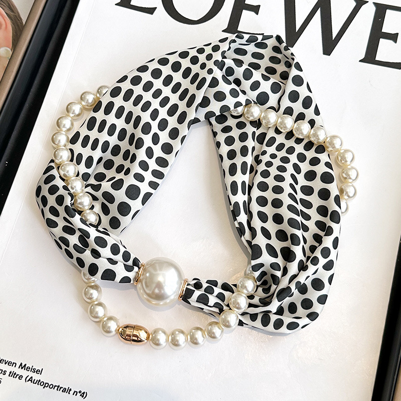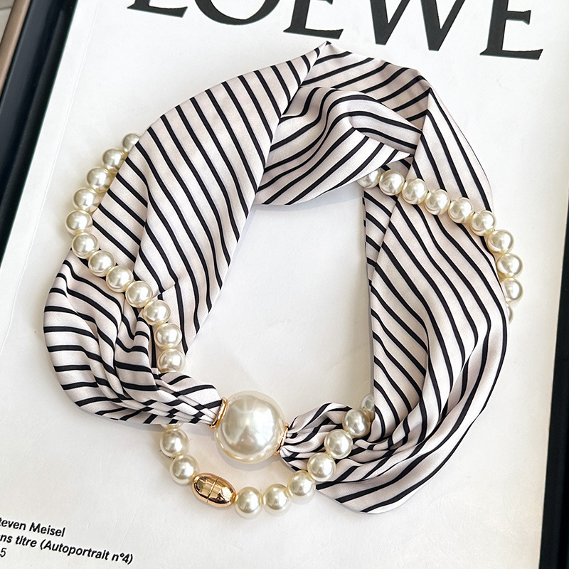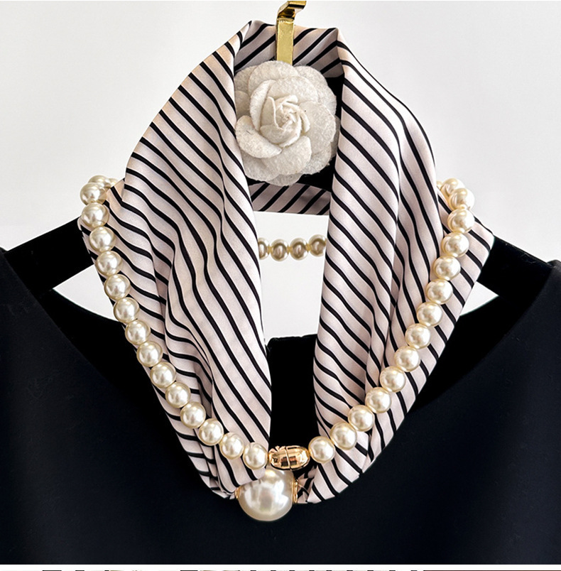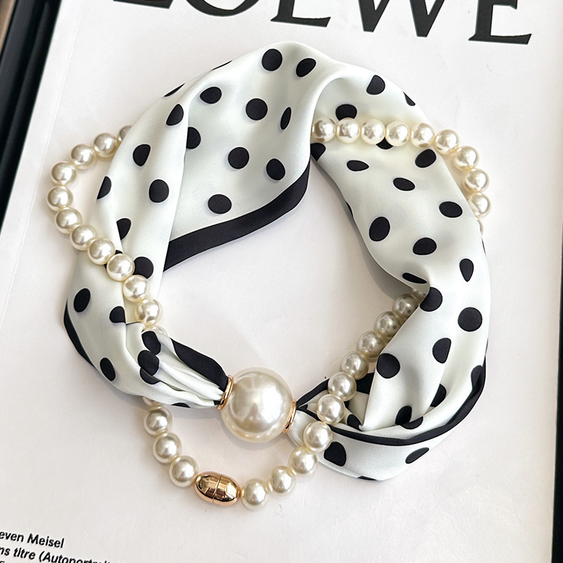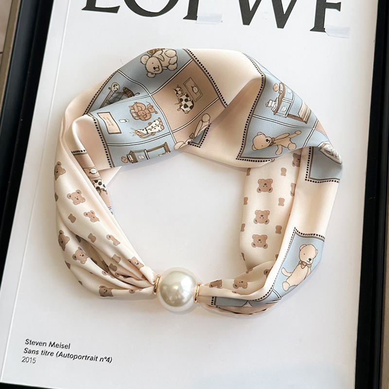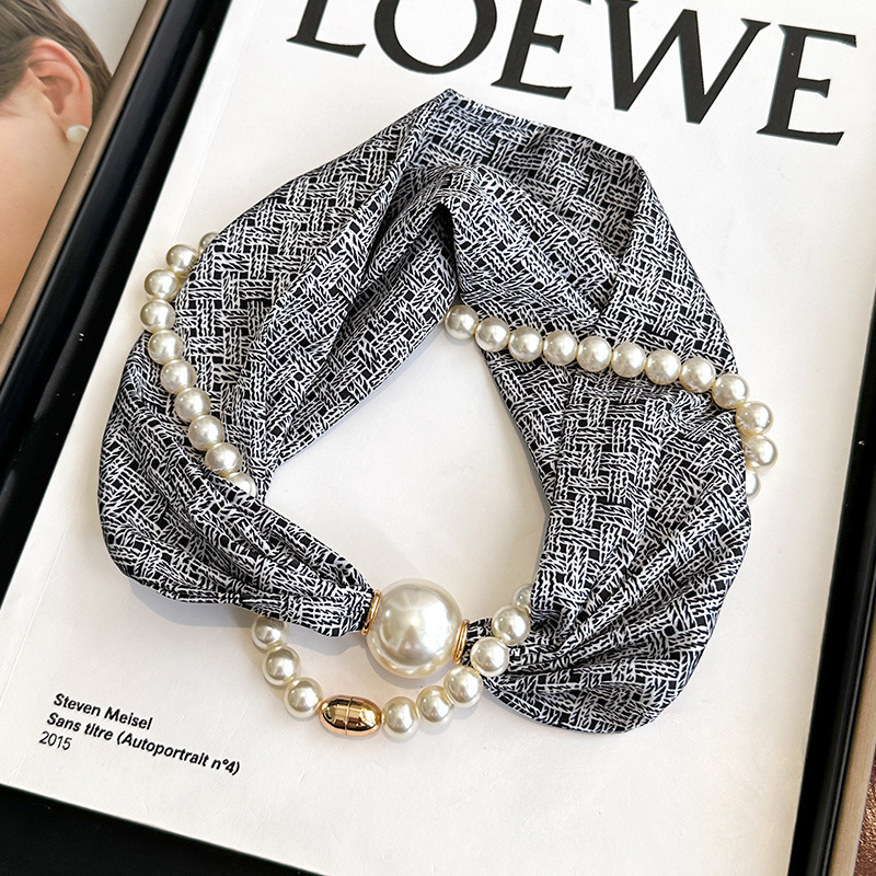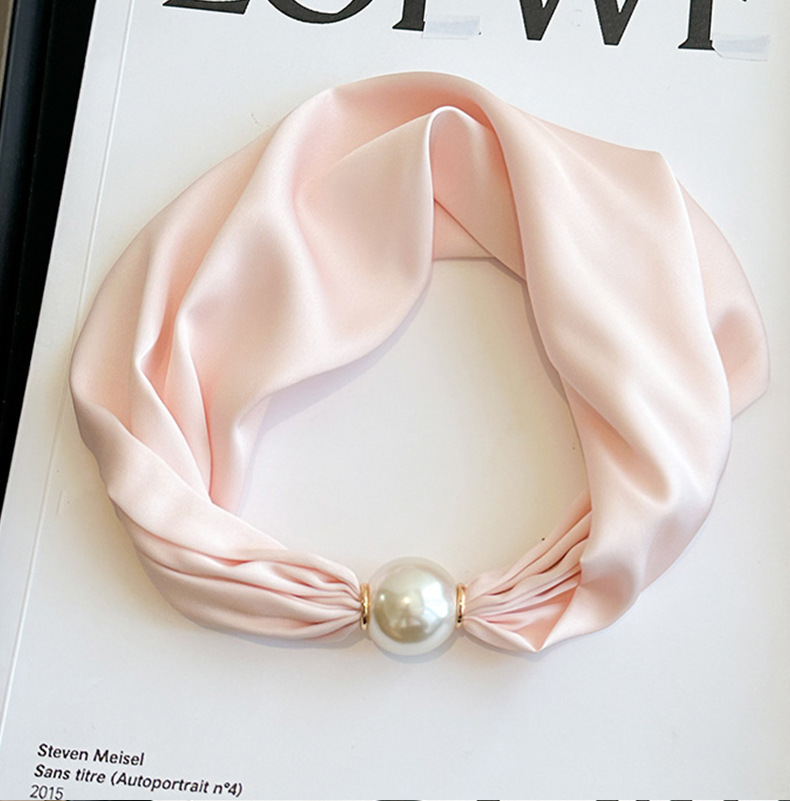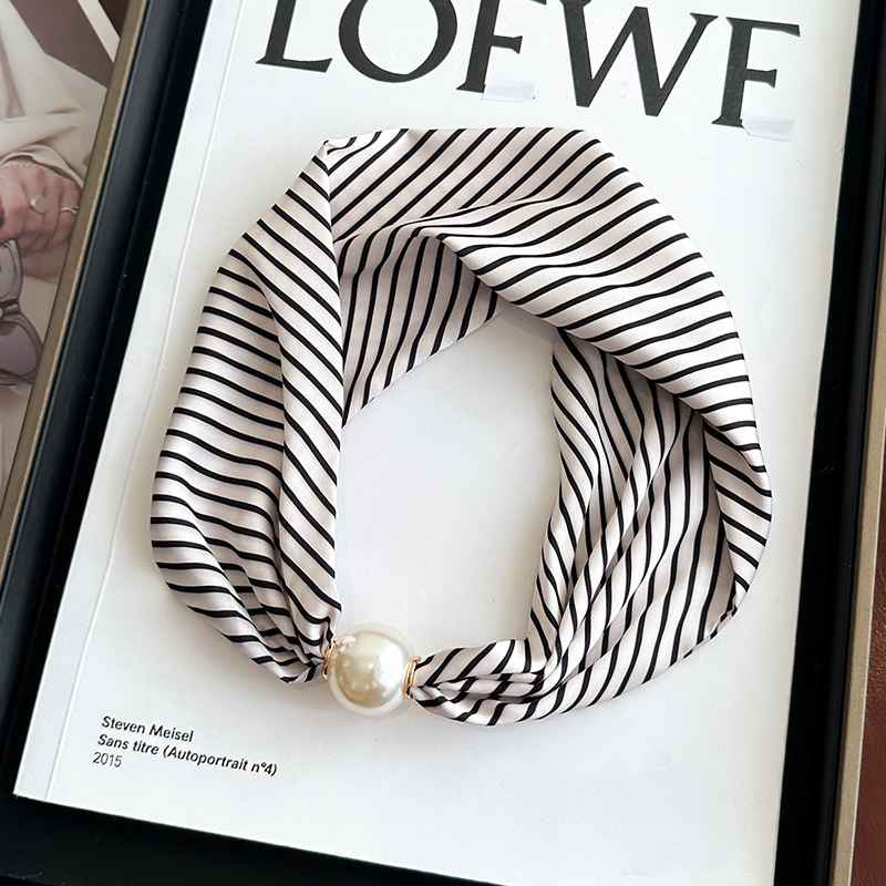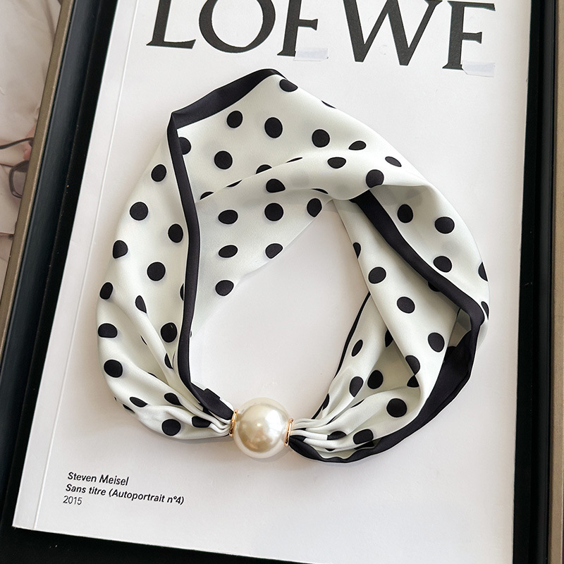 여성을위한 여름 패션 마그네틱 버클 진주 긴 실크 스카프 봄, 가을 스카프 인쇄 장식 스카프 다목적 얇은 목 보호대스토어 가기