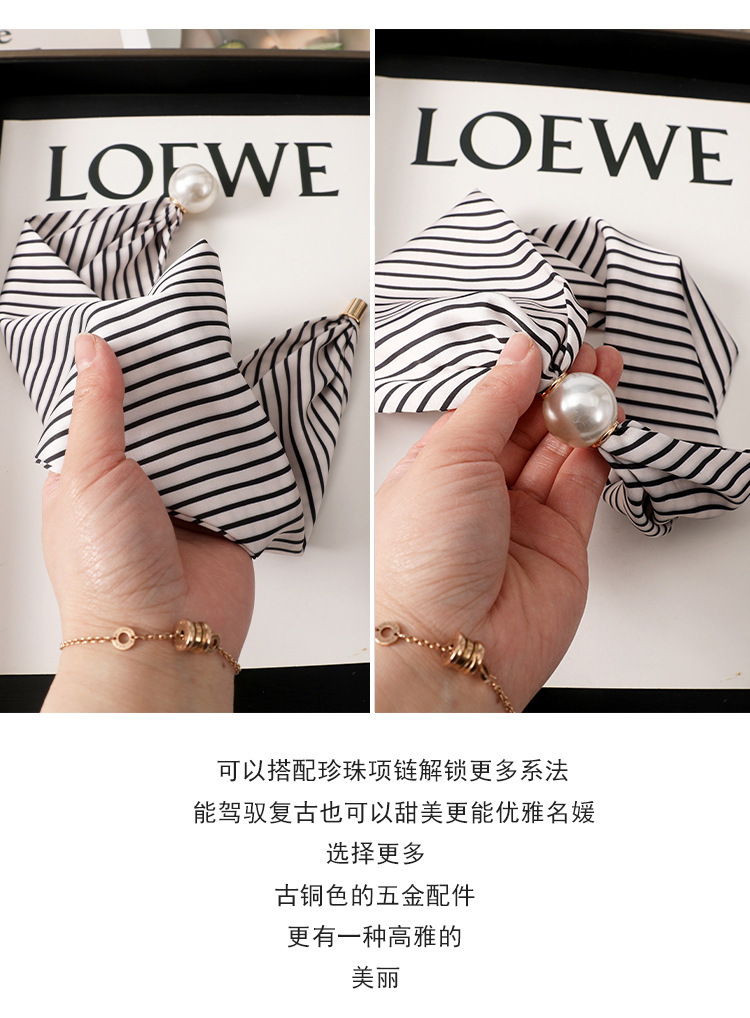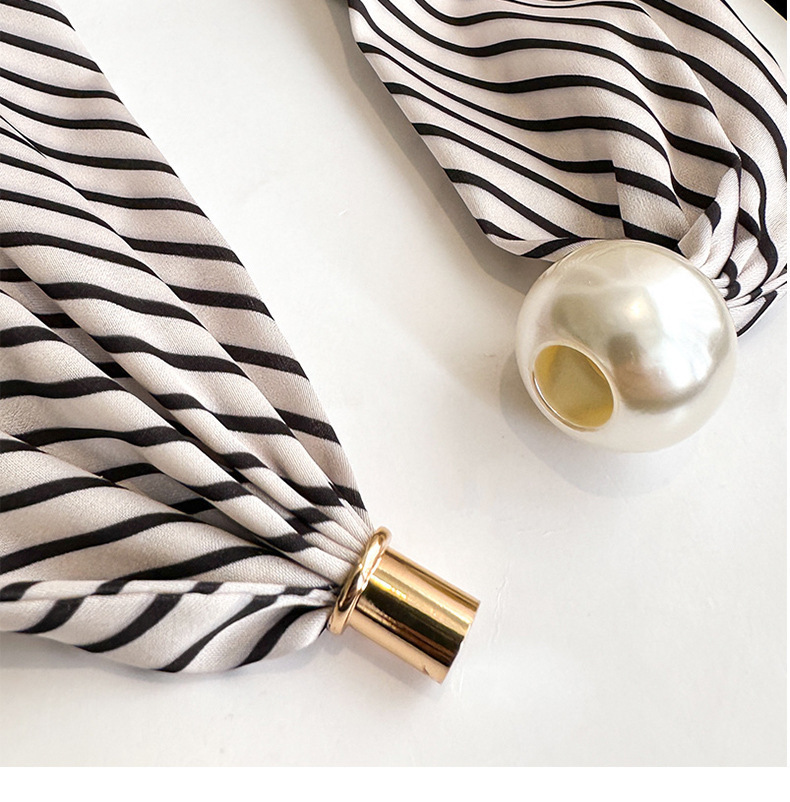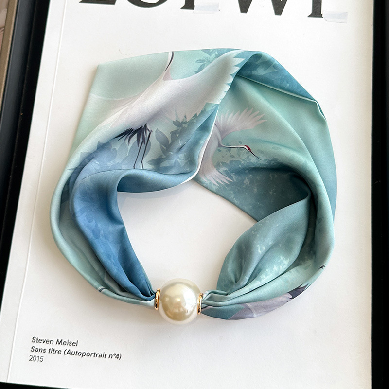 여성을위한 여름 패션 마그네틱 버클 진주 긴 실크 스카프 봄, 가을 스카프 인쇄 장식 스카프 다목적 얇은 목 보호대