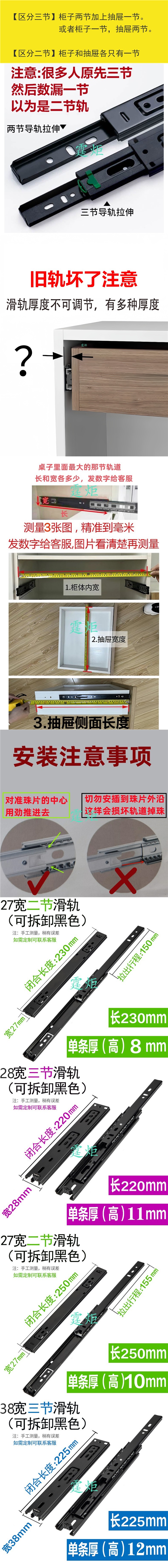 초박형 좁은 2섹션 2 3섹션 3 구식 서랍 슬라이드 트랙 TV 캐비닛 커피 테이블 침대 옆 책상 키보드 도매