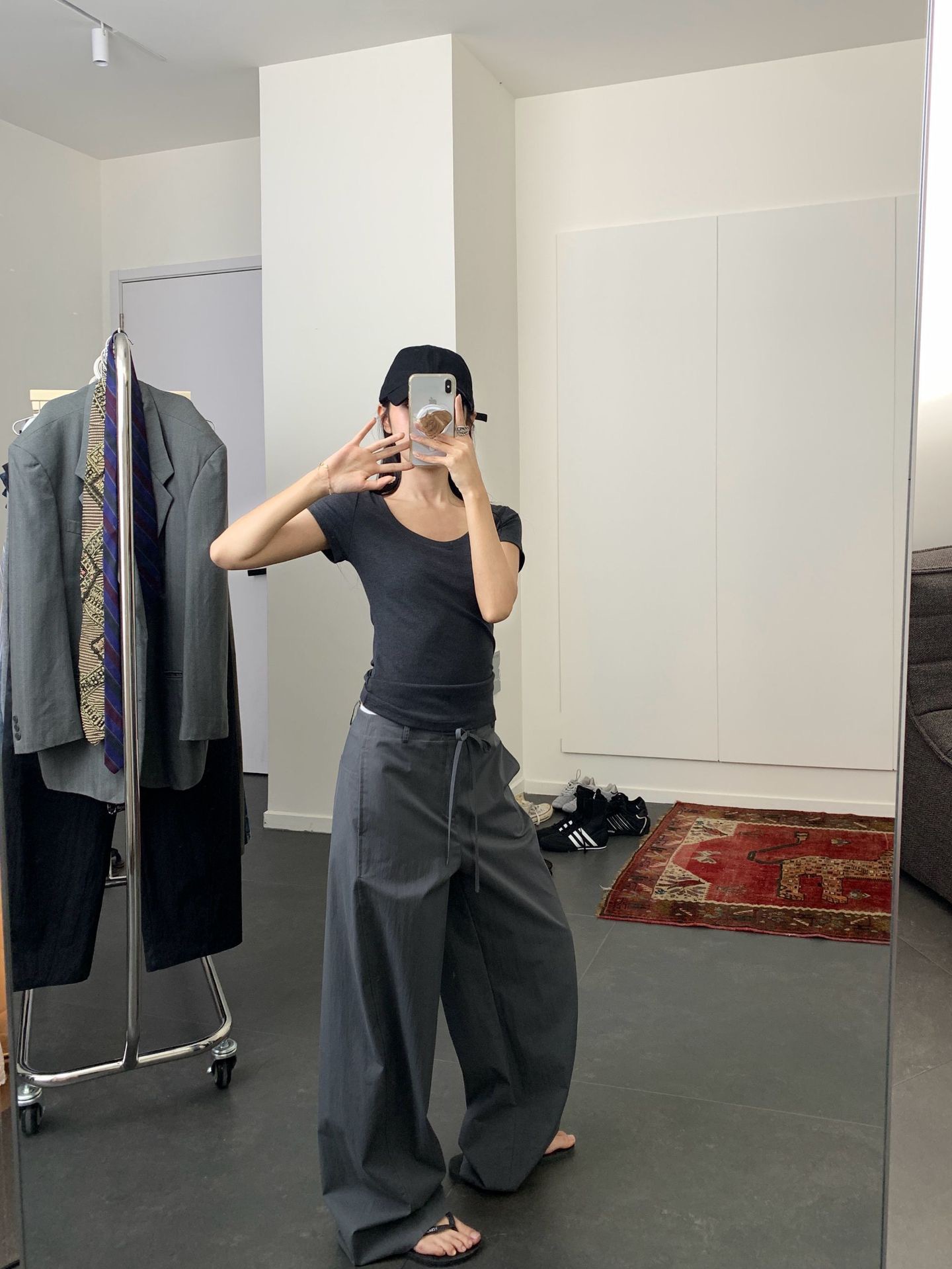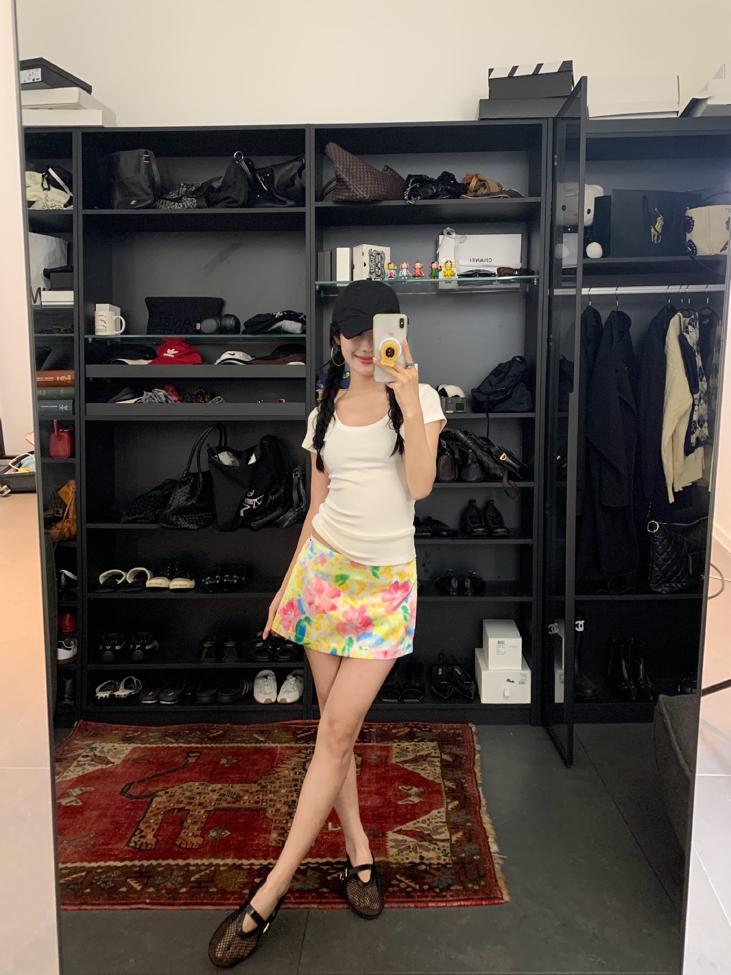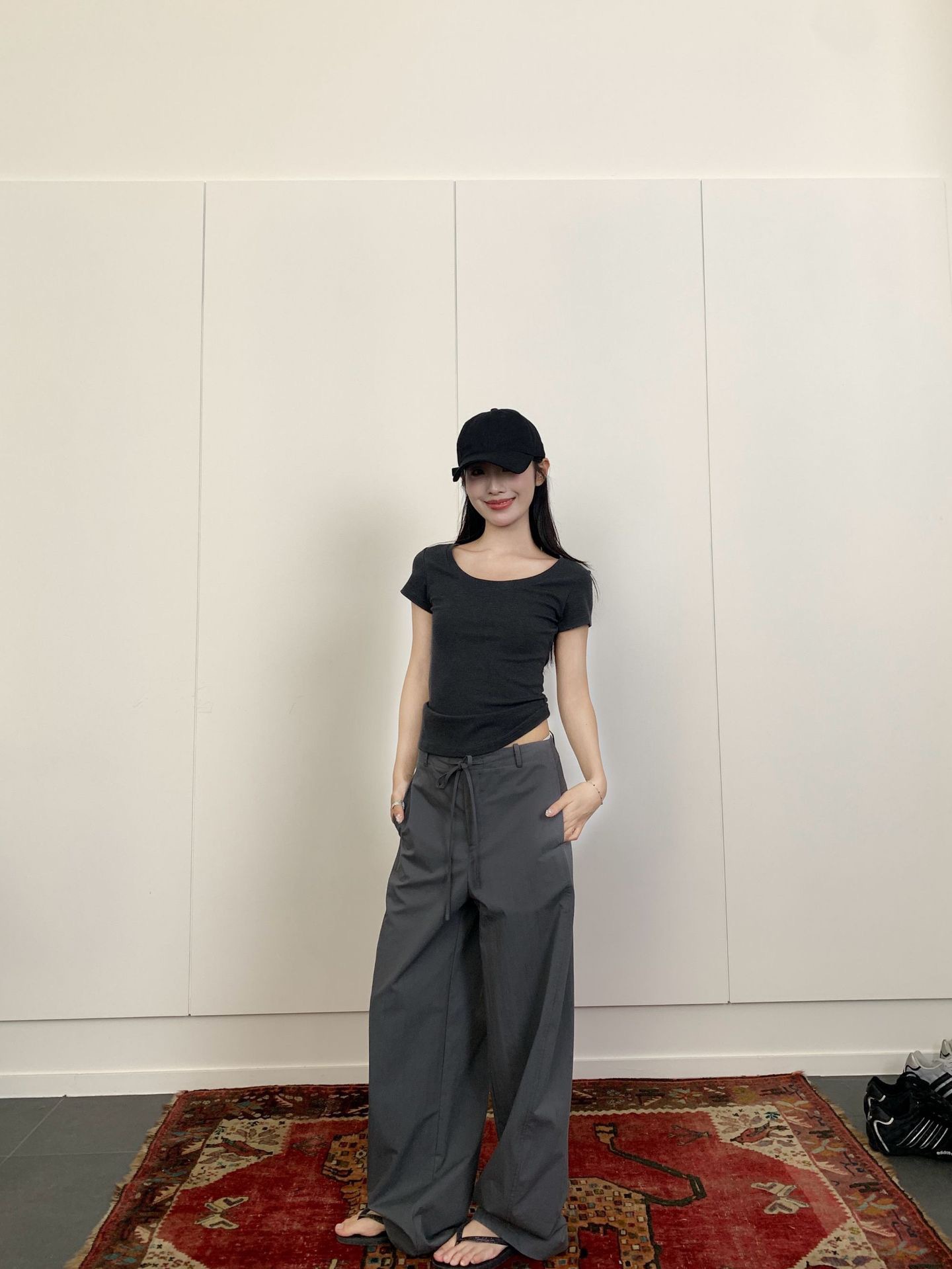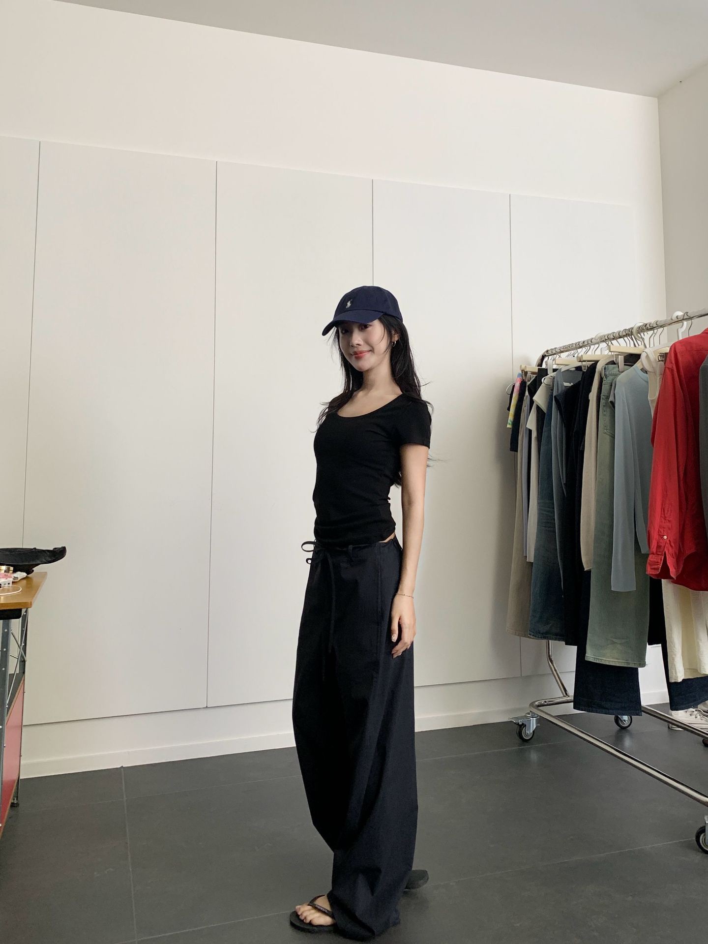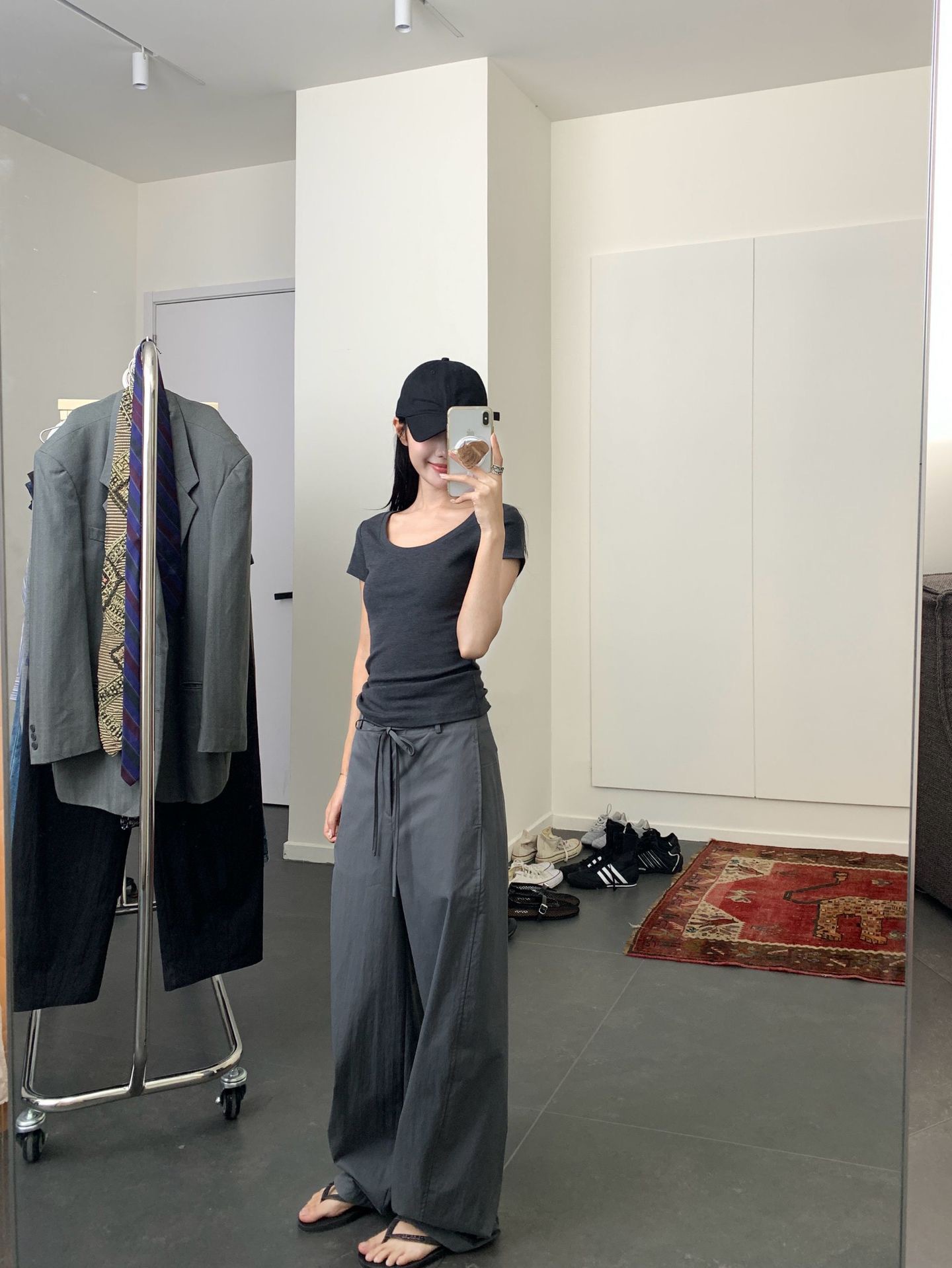 콰이 리 베이직 U 칼라 반팔 티셔츠 여성용 여름 새로운 슬림 핏 슬리밍 스킨 친화적 인 스트레치 어깨 타이트 웨이스트 탑스토어 가기