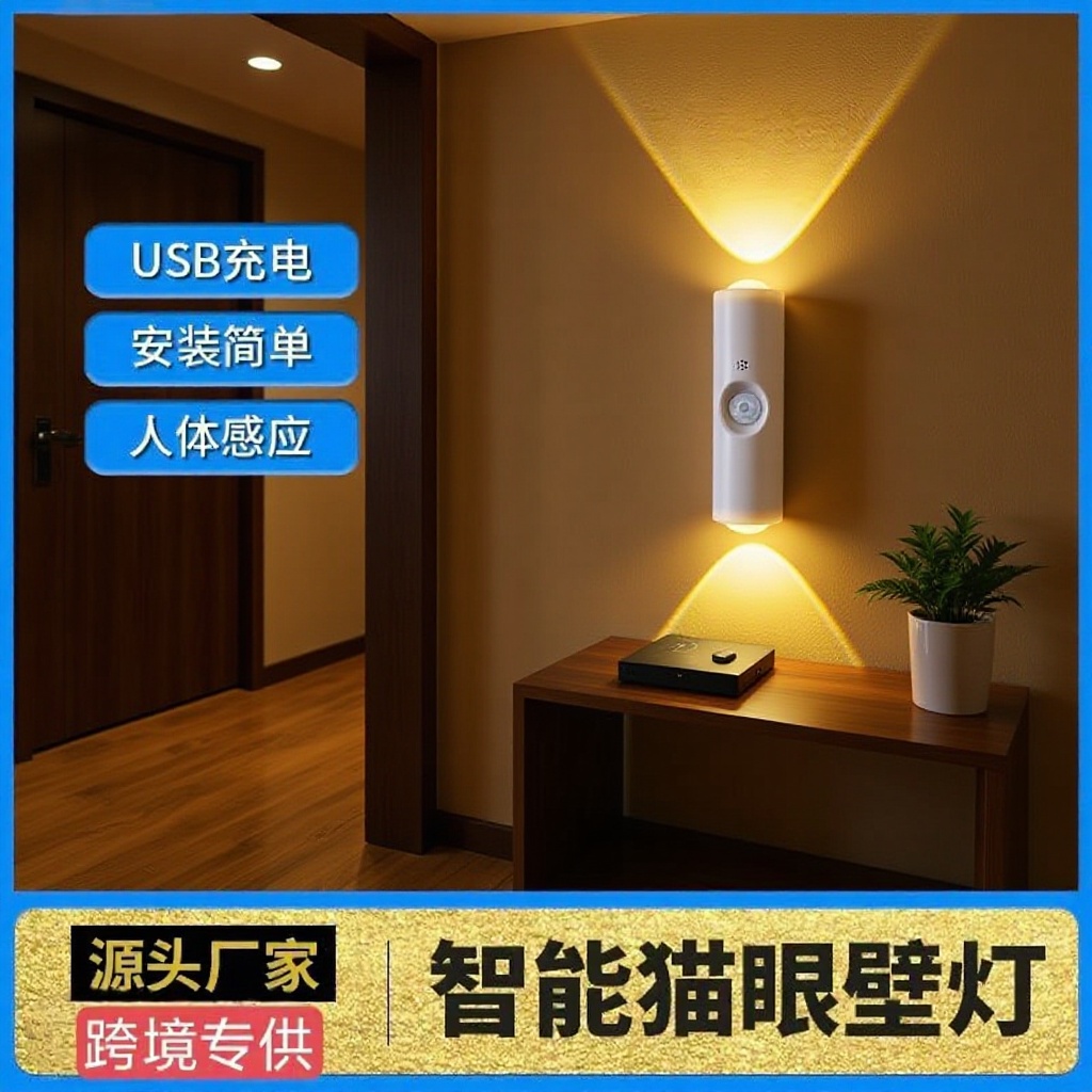 크로스보더 분위기등 고양이눈 스마트 테이블 램프 인체감지 적외선 벽등 자석 USB 충전식 야간등