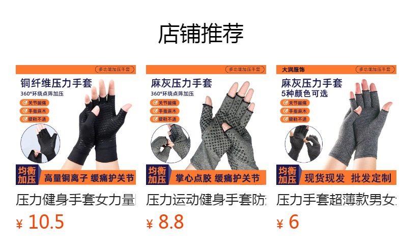 국경 간 맞춤형 구리 섬유 반 손가락 압력 장갑 야외 사이클링 관절 재활 스포츠 훈련 핑거리스 장갑스토어 가기