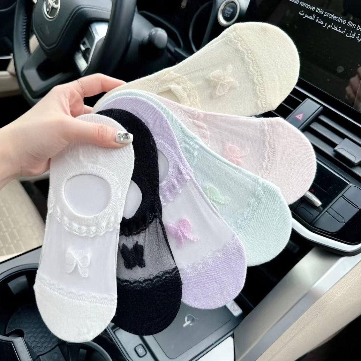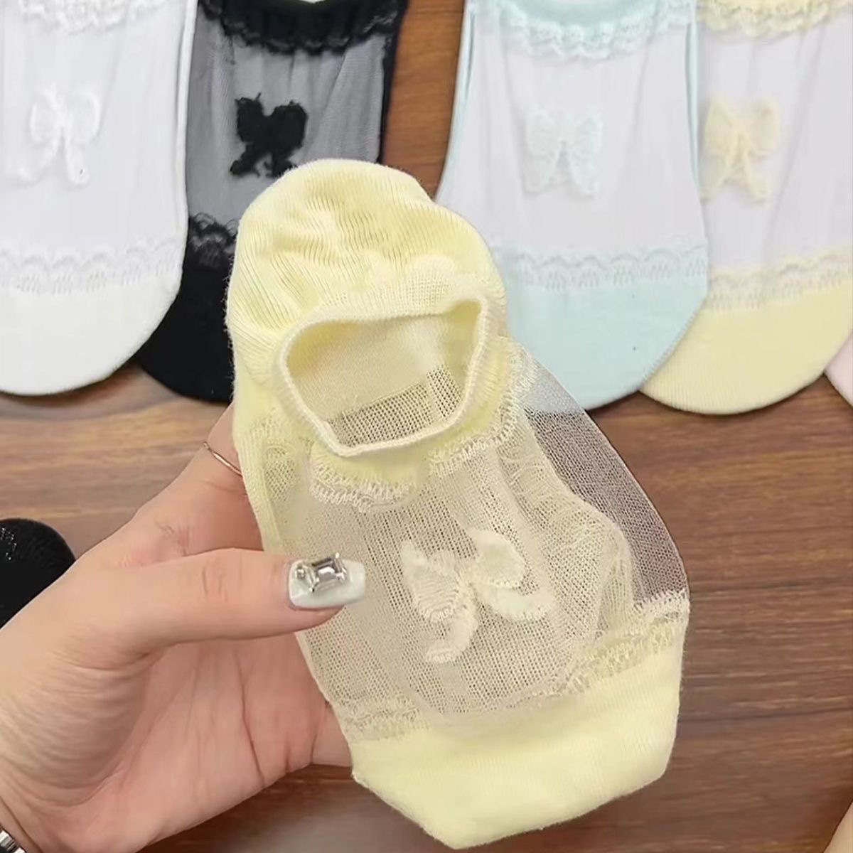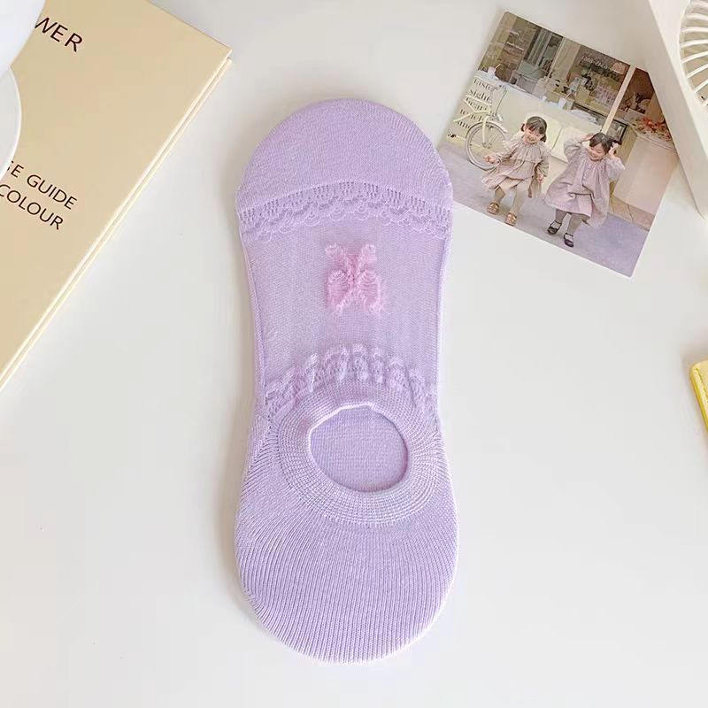 슈퍼 요정 레이스 보우 아이스 실크 보이지 않는 양말 인기 여름 얇은 얕은 입 보트 양말 통기성 컬러 보이지 않는 보트 양말