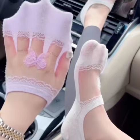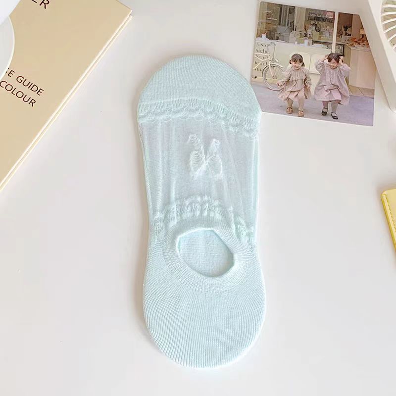 슈퍼 요정 레이스 보우 아이스 실크 보이지 않는 양말 인기 여름 얇은 얕은 입 보트 양말 통기성 컬러 보이지 않는 보트 양말스토어 가기