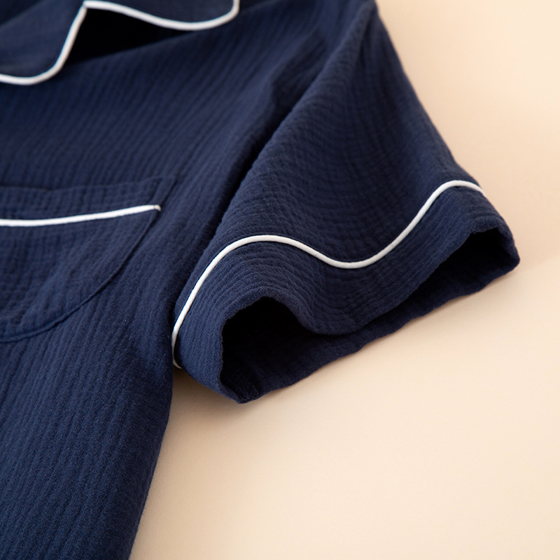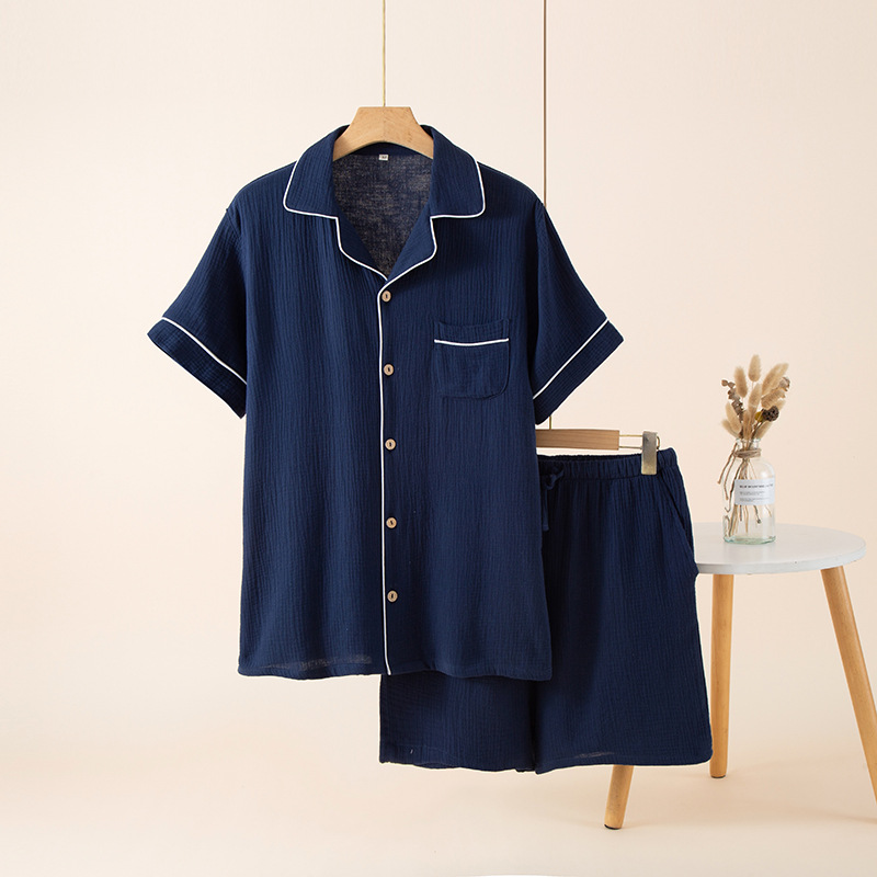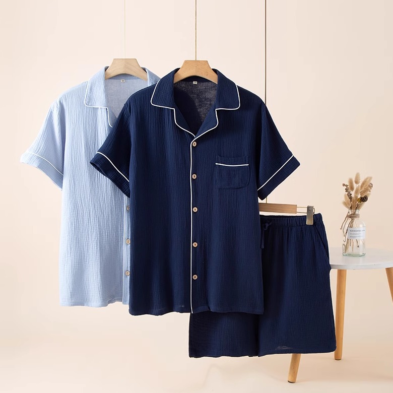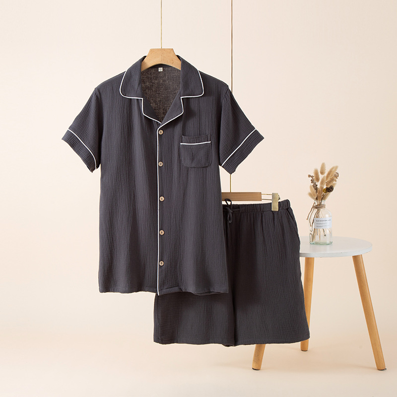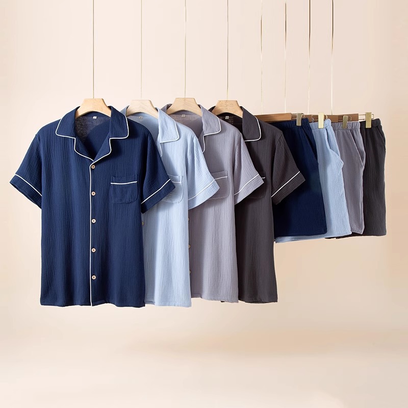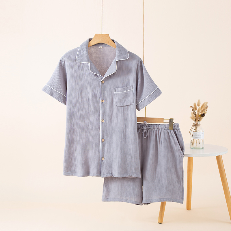 남성 잠옷 여름 순면 거즈 얇은 반팔 반바지 정장 일본식 심플 캐주얼 홈웨어 외부에서 착용 가능