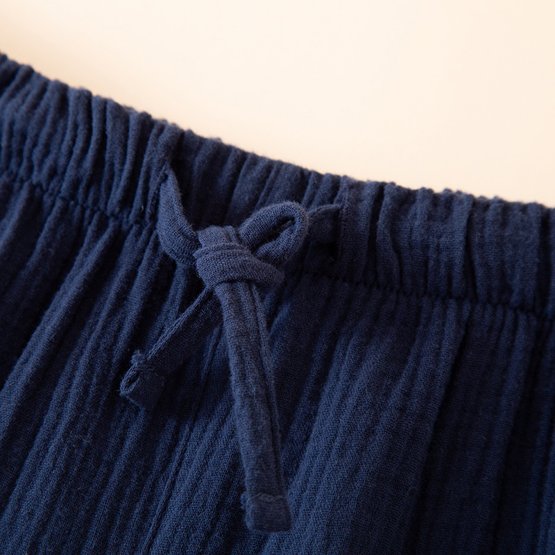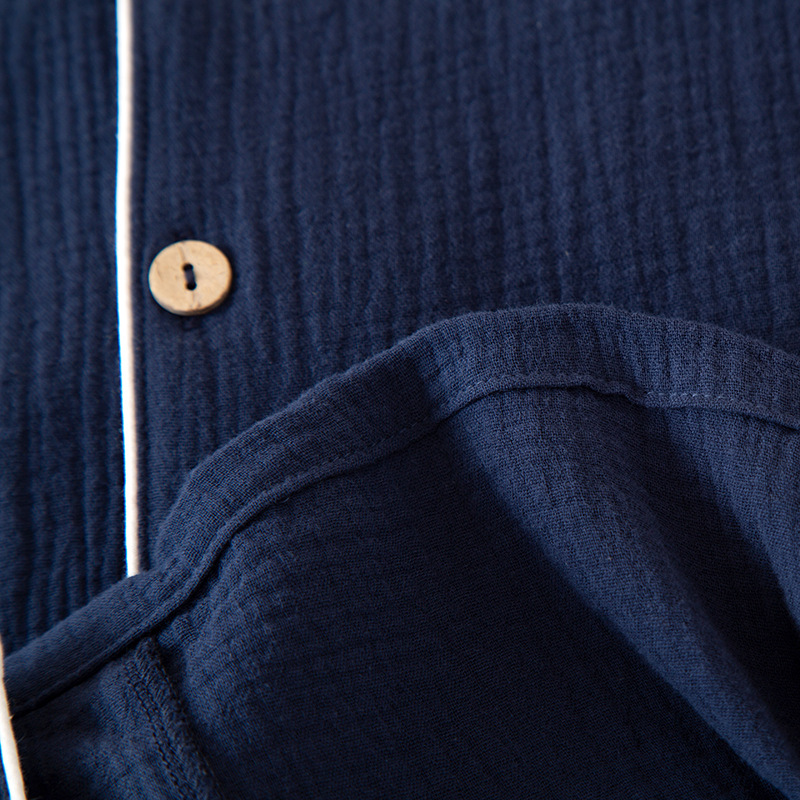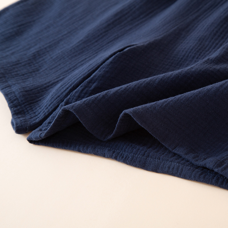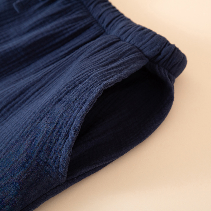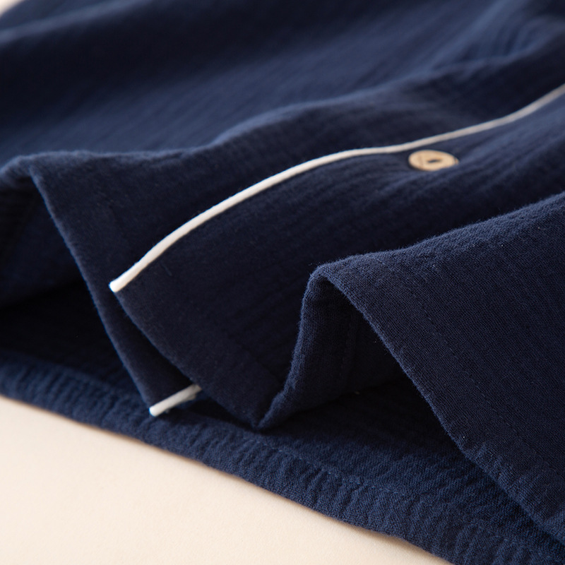 남성 잠옷 여름 순면 거즈 얇은 반팔 반바지 정장 일본식 심플 캐주얼 홈웨어 외부에서 착용 가능스토어 가기