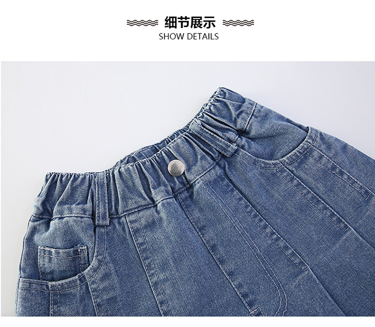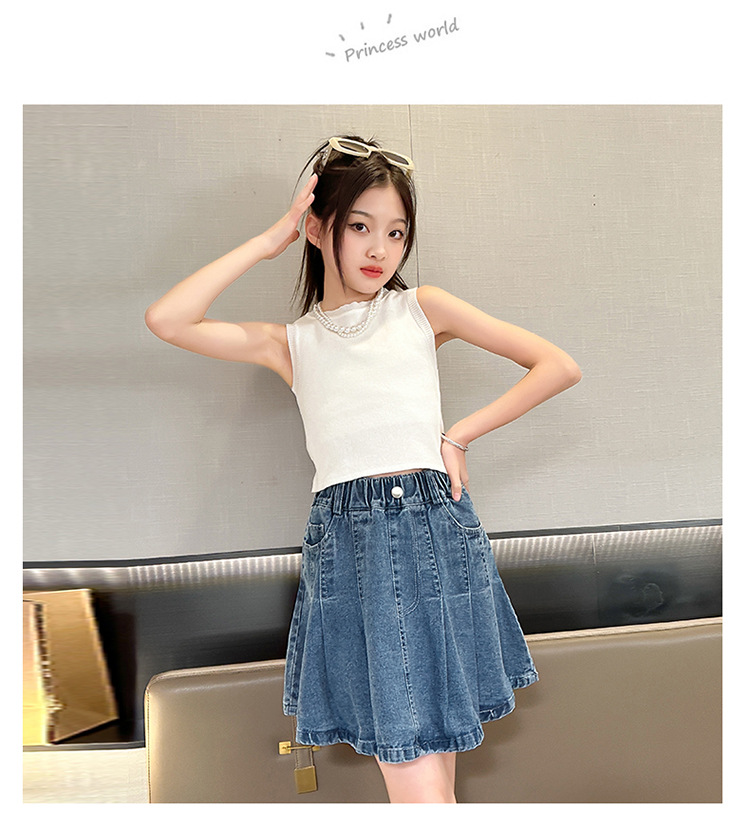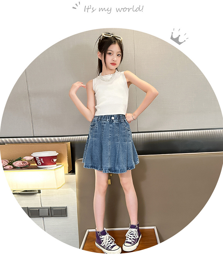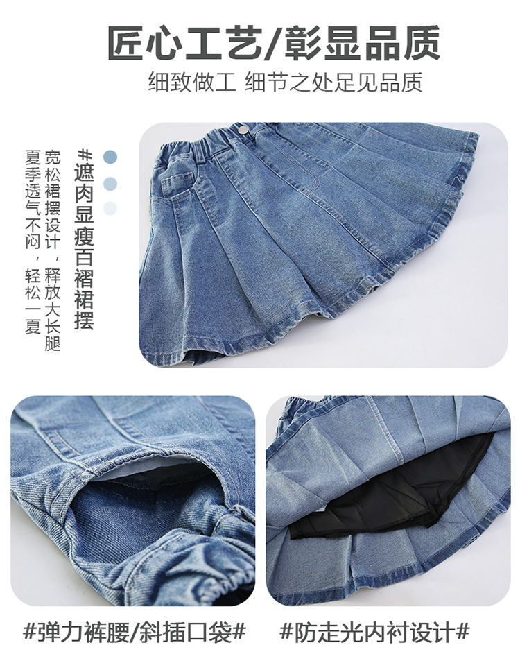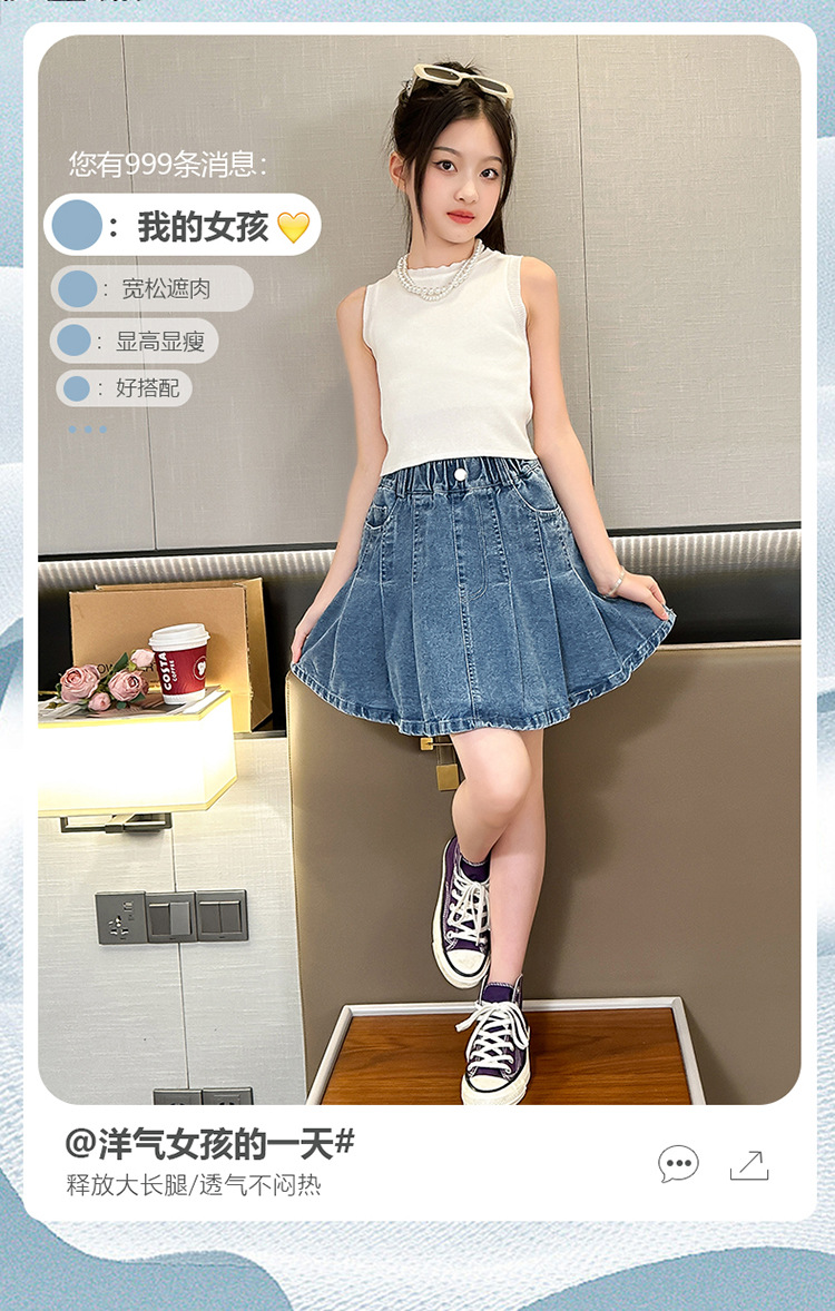 여자 여름 데님 주름 치마 2025 새로운 스타일 어린이 얇은 다용도 스커트 큰 어린이 짧은 치마 유행