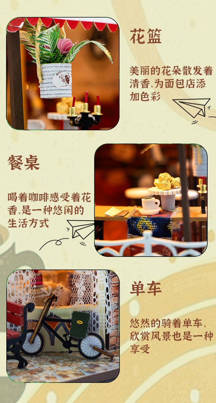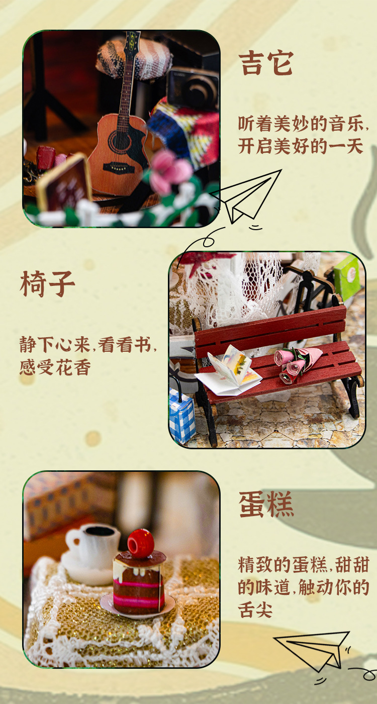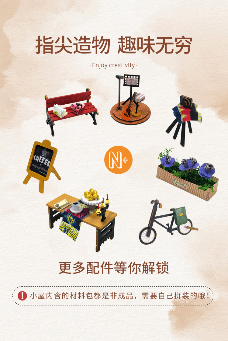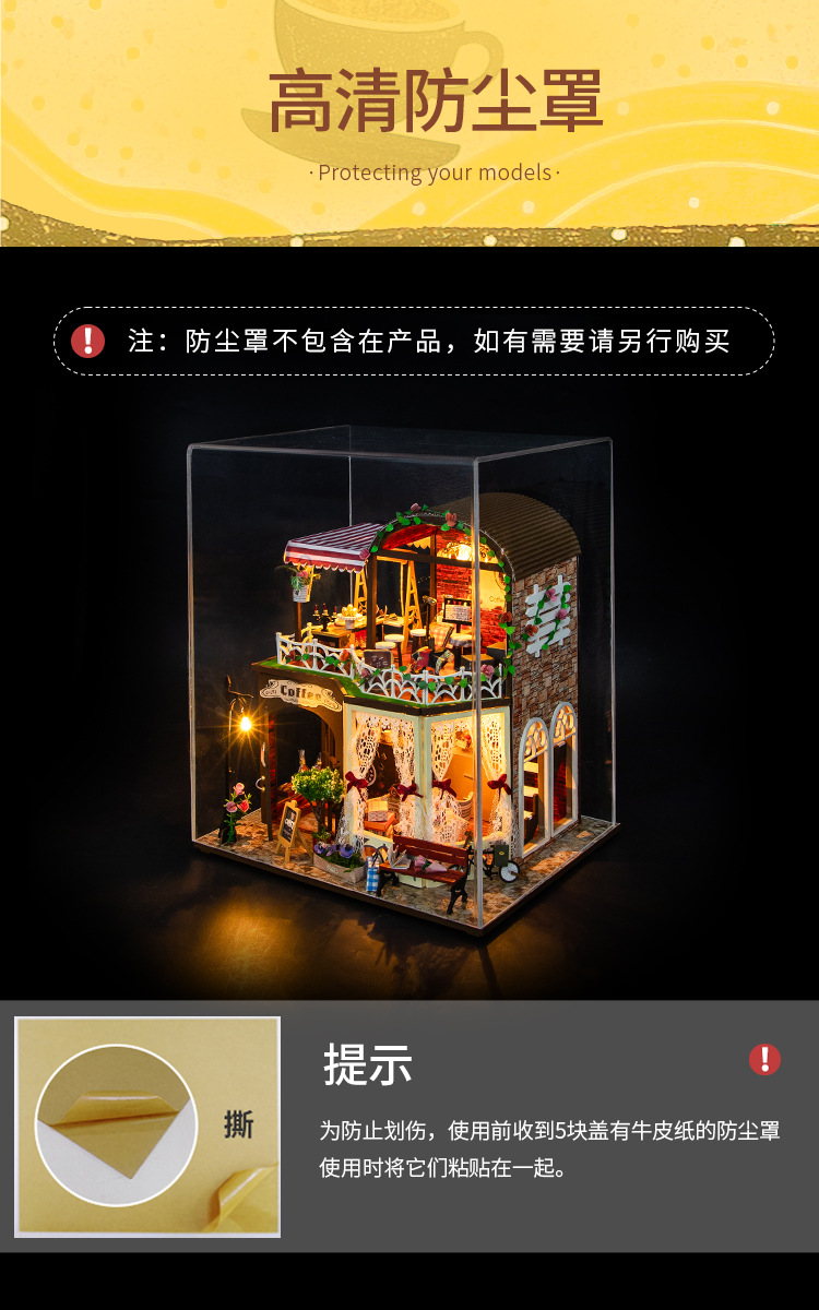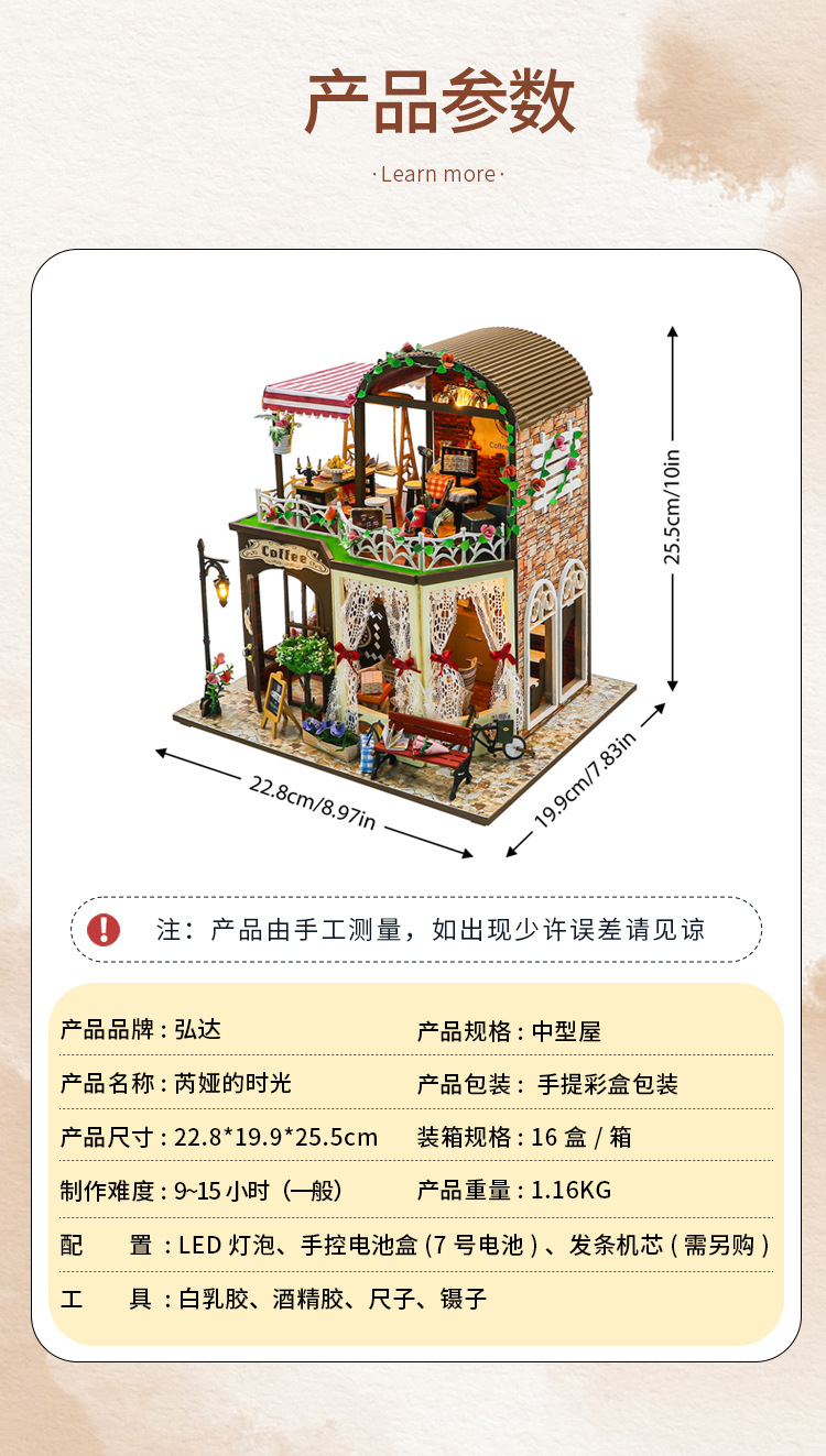 Hongda 선물 diy 수제 나무 인형 집 더블 레이어 커피 복고풍 하우스 미니 3D 건물 조립 모델스토어 가기