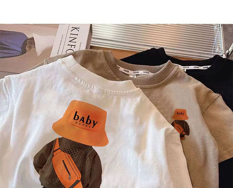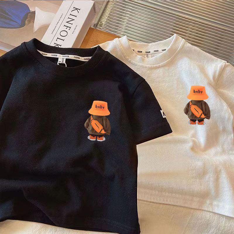 새로운 한국 스타일 어린이 면화 반팔 여름 소년과 소녀 티셔츠 탑 T 잘 생긴 서양식 여름 아기베이스 셔츠스토어 가기