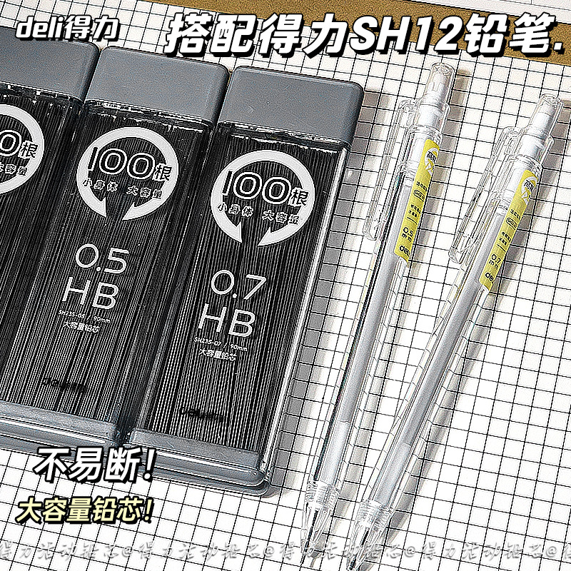 델리 SH235 자동 연필 리필 HB0.5/0.7mm 학생 자동 펜 특수 리필 샤프 연필 리필