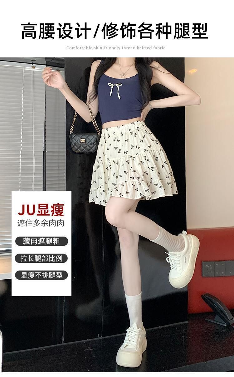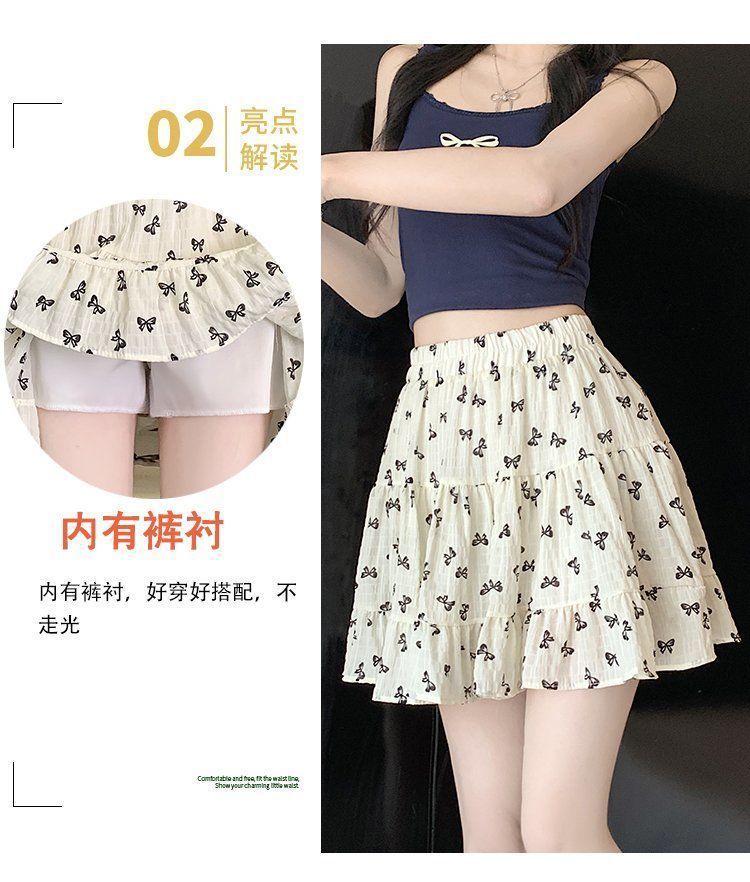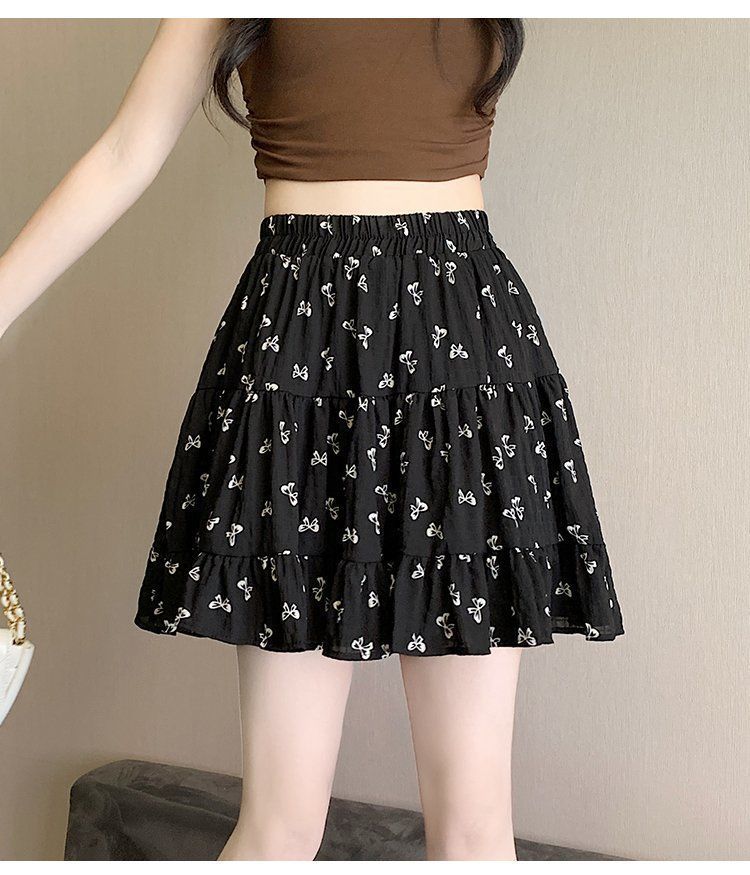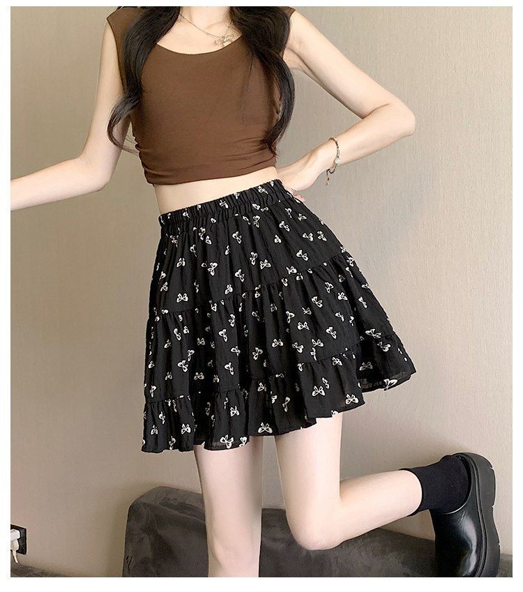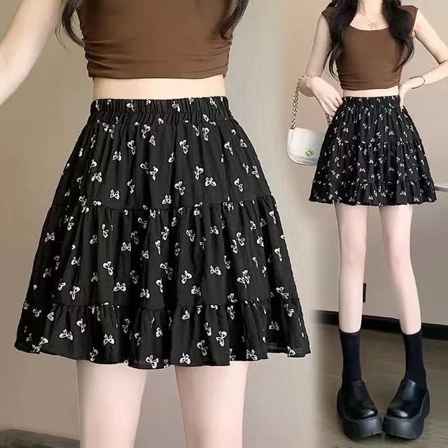 2025년 여름 여성을 위한 리본 프린트 슬리밍 스커트, 작은 A라인 스커트, 연령 감소 케이크 스커트, 검은색 짧은 스커트스토어 가기