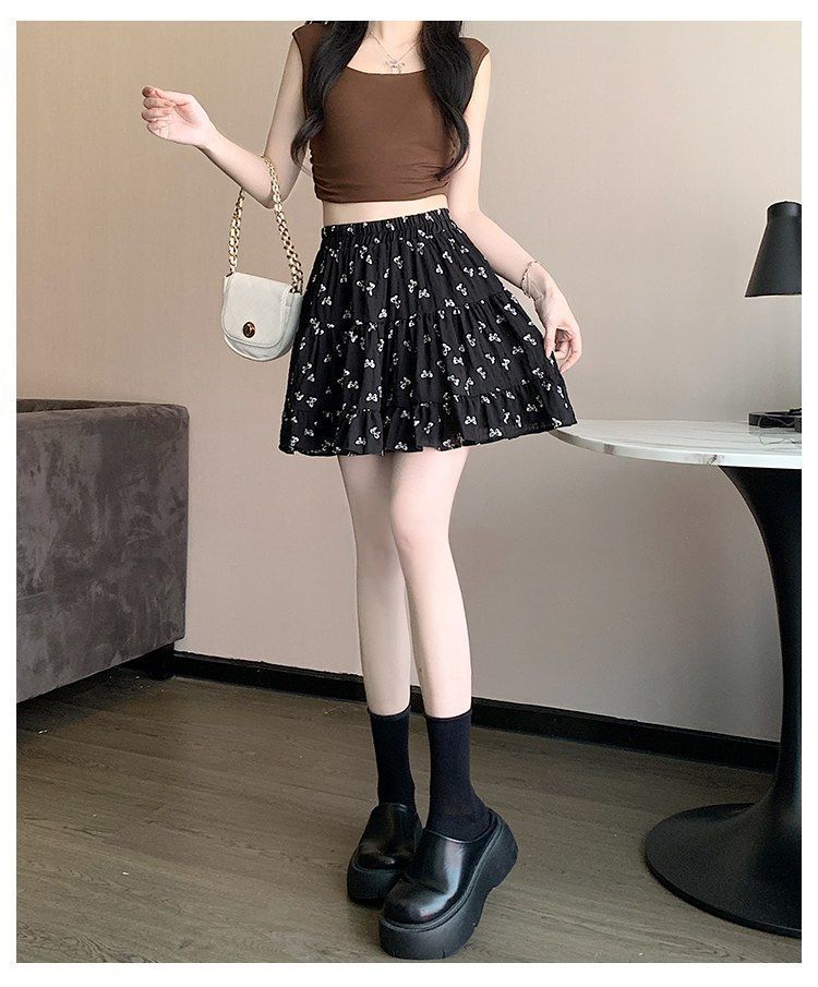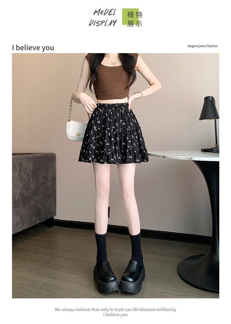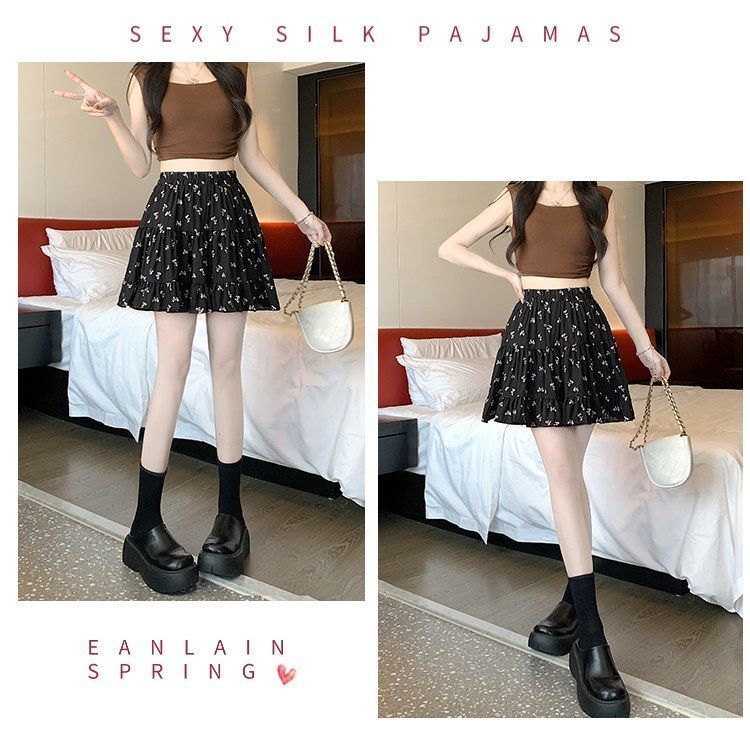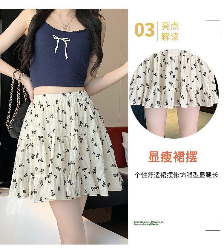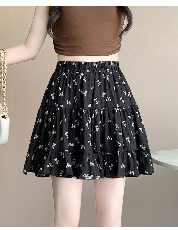 2025년 여름 여성을 위한 리본 프린트 슬리밍 스커트, 작은 A라인 스커트, 연령 감소 케이크 스커트, 검은색 짧은 스커트스토어 가기