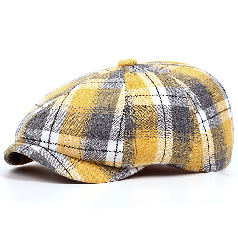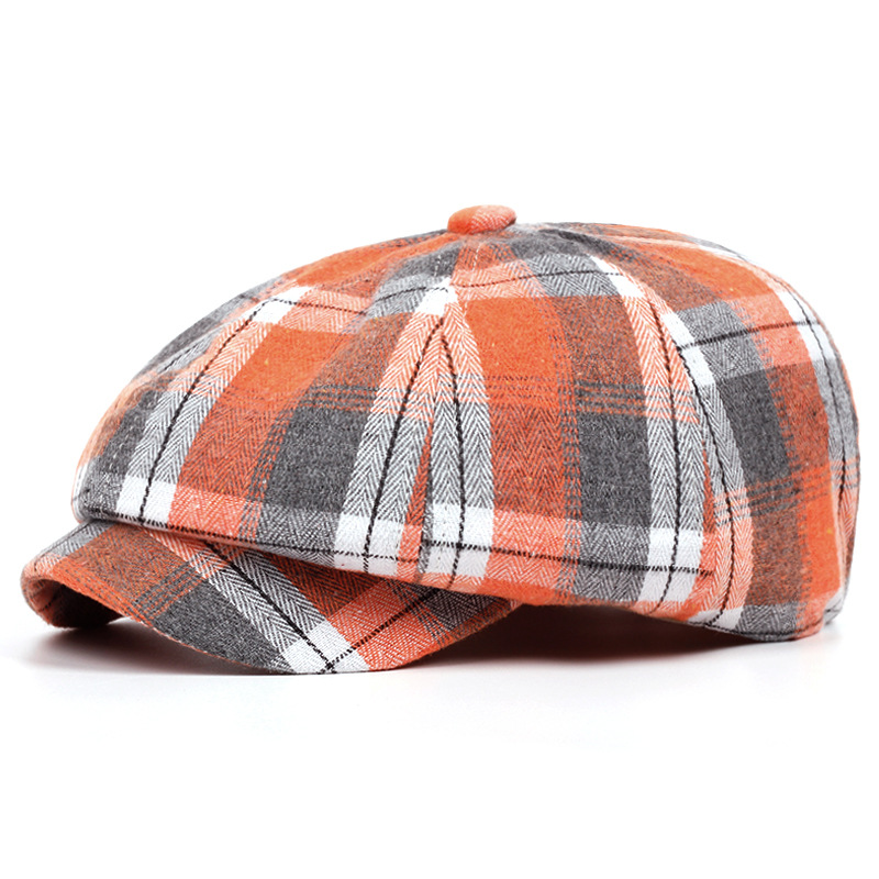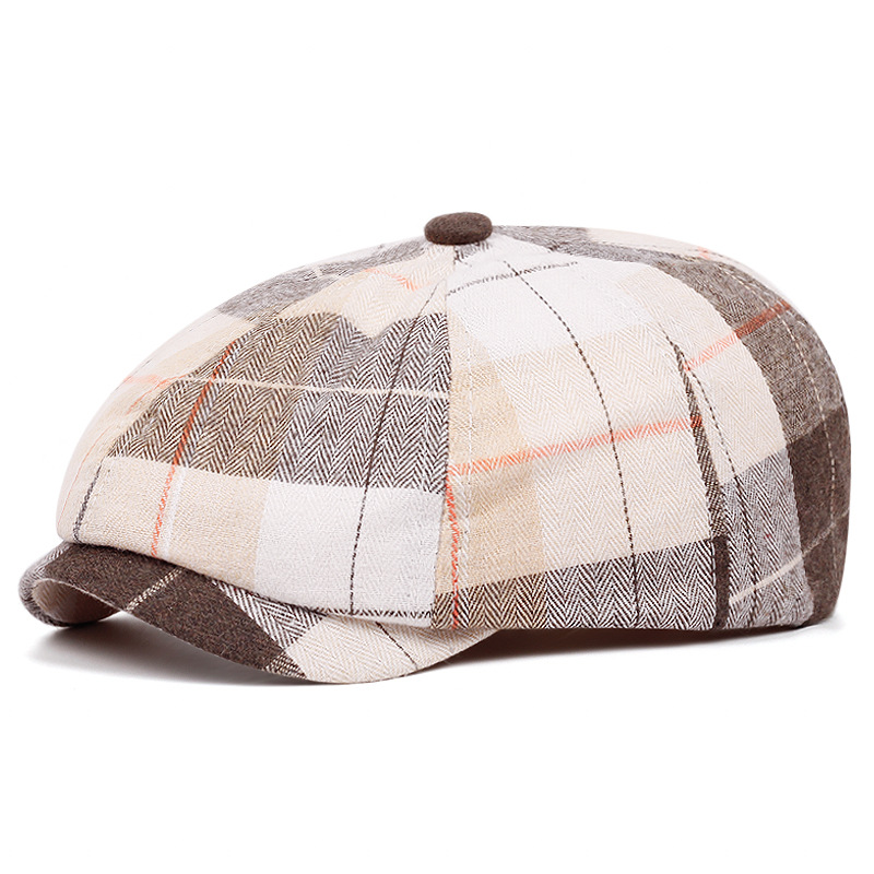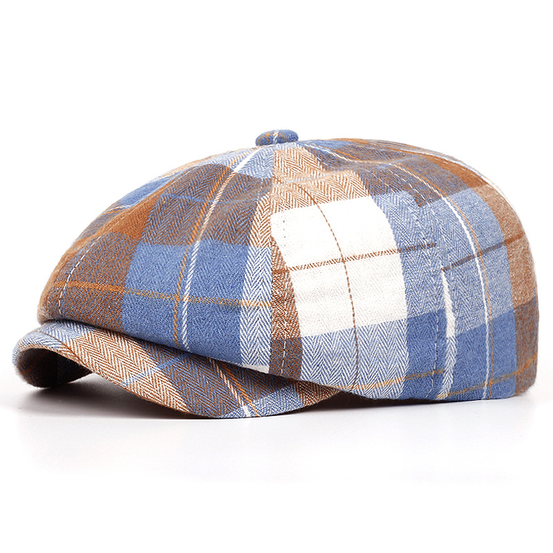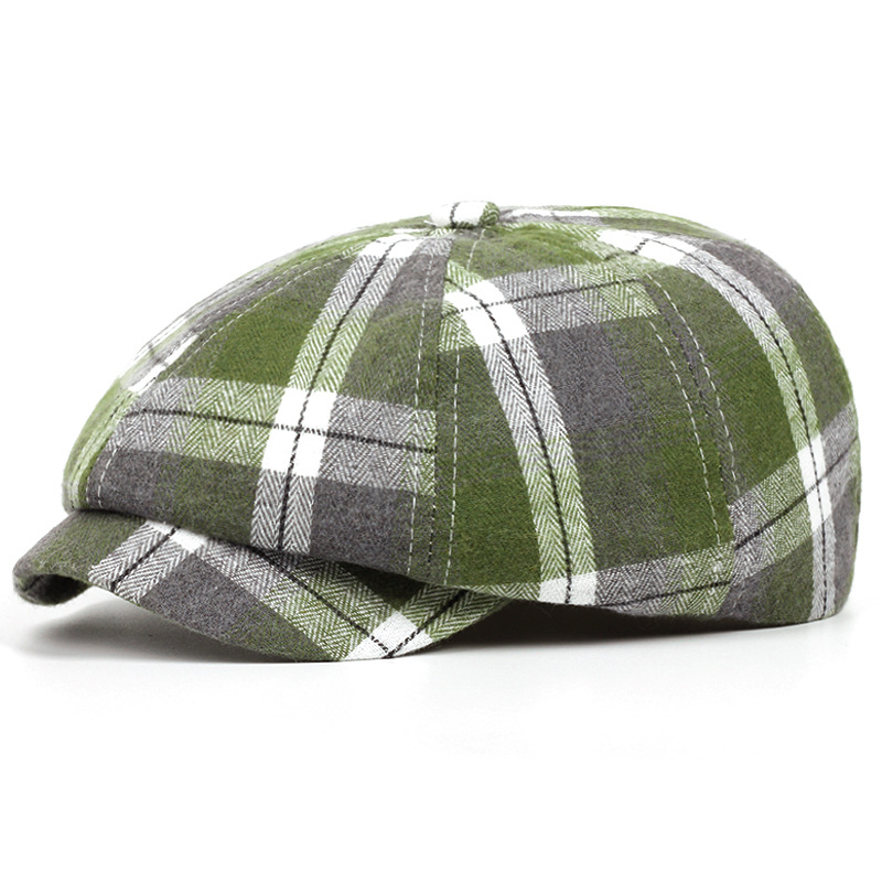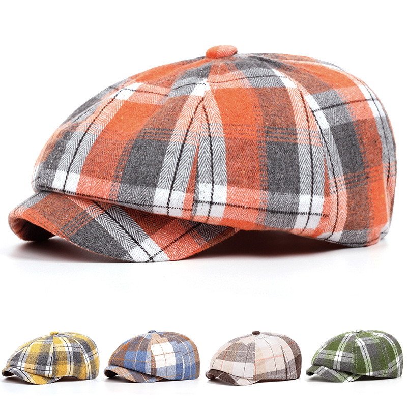 남성과 여성을위한 제조 업체 도매 모자 격자 무늬 베레모 봄과 여름 얇은 통기성 남성 문학 복고풍 격자 무늬 팔각형 모자스토어 가기