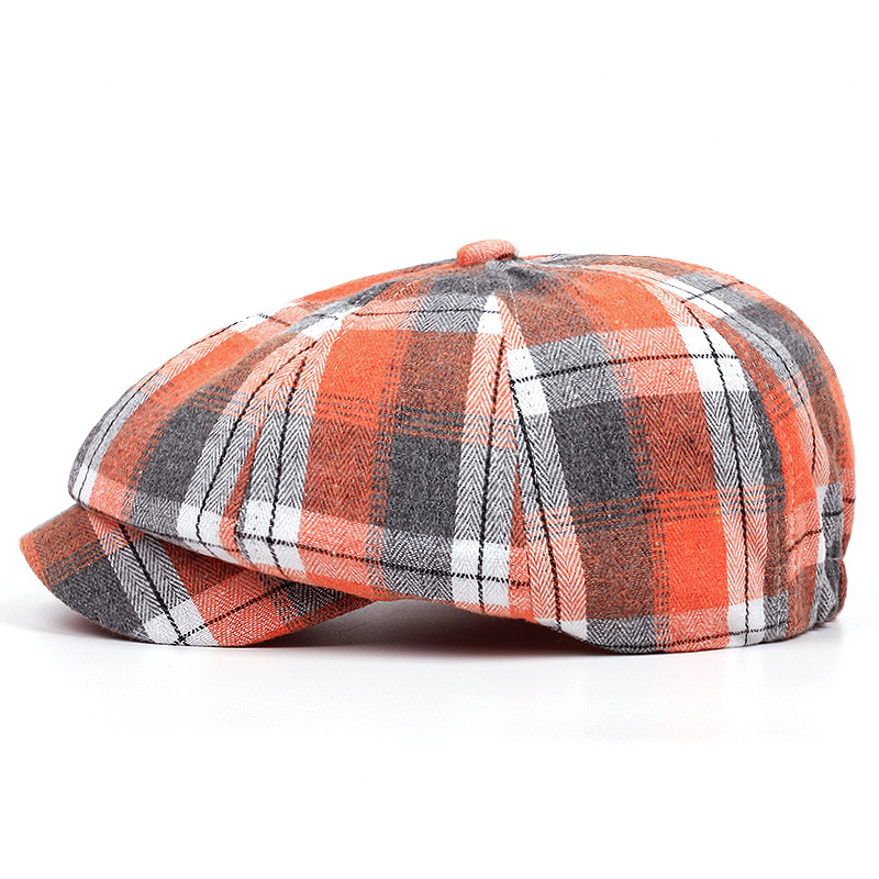 남성과 여성을위한 제조 업체 도매 모자 격자 무늬 베레모 봄과 여름 얇은 통기성 남성 문학 복고풍 격자 무늬 팔각형 모자