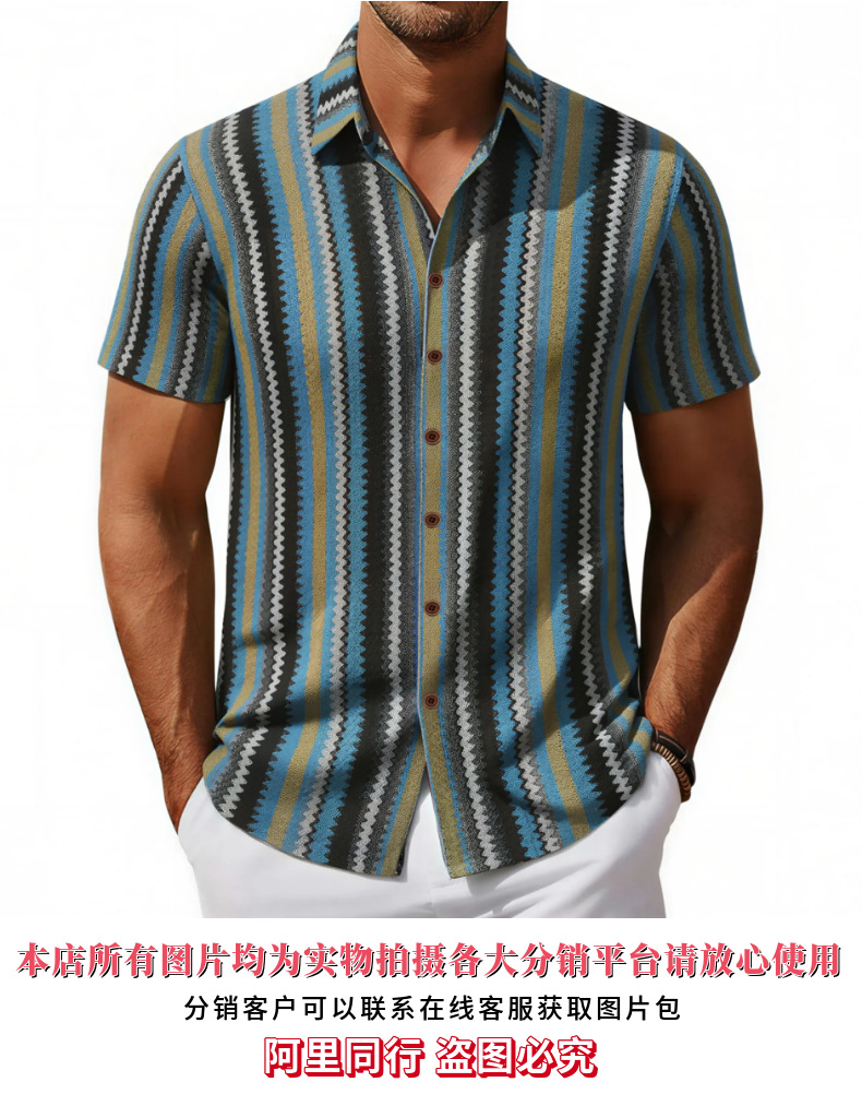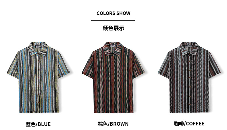 대외 무역 국경 남성 여름 새로운 남성 국가 스타일 스트라이프 셔츠 캐주얼 중공 레이스 셔츠 A0403스토어 가기