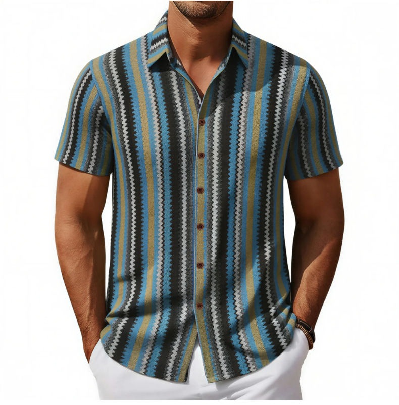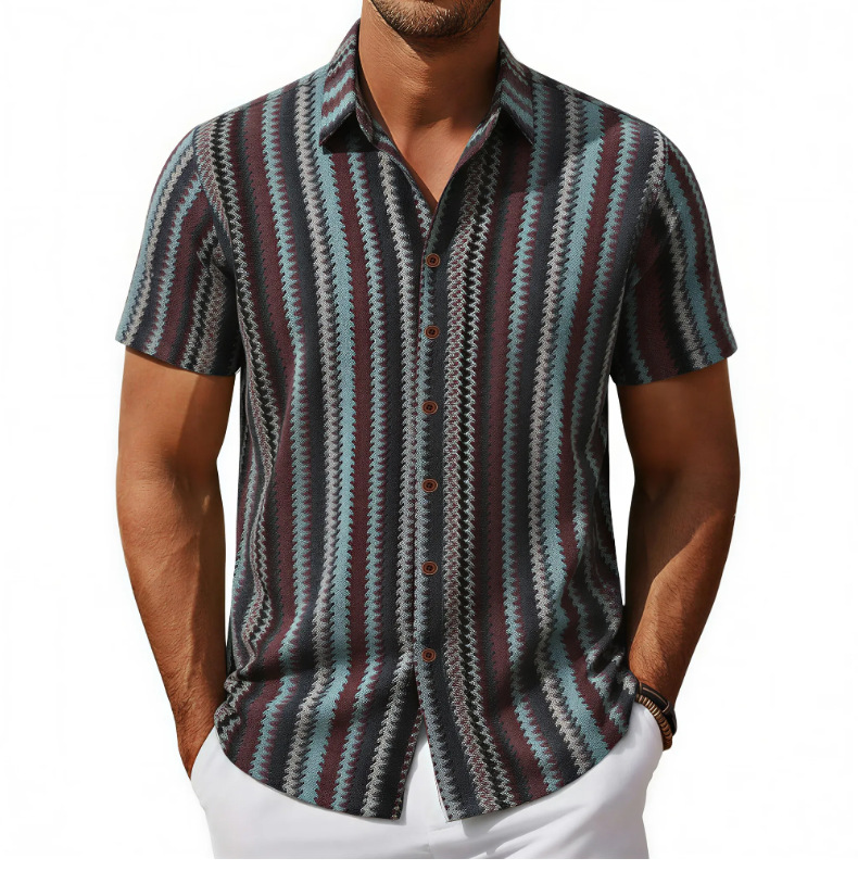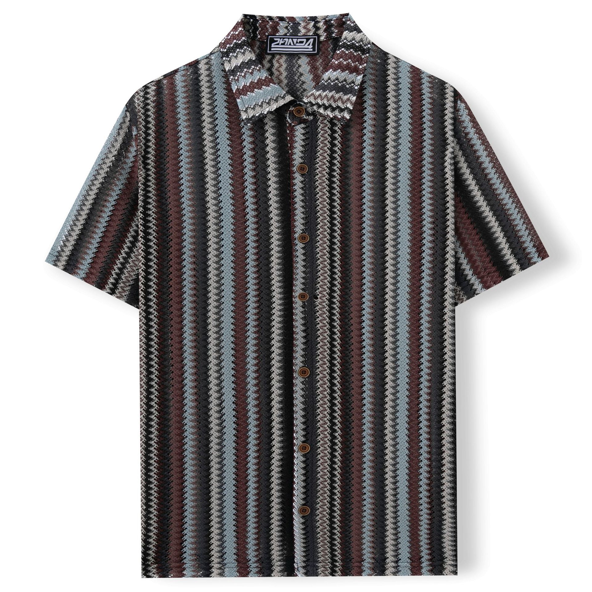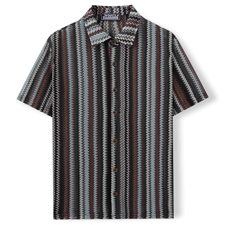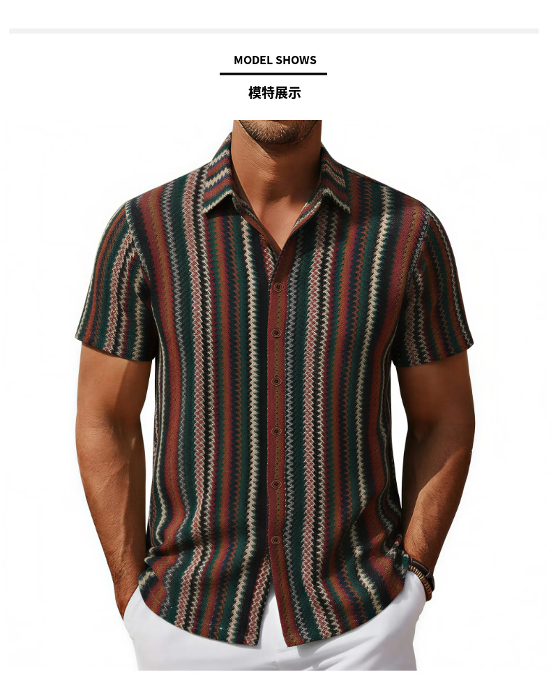 대외 무역 국경 남성 여름 새로운 남성 국가 스타일 스트라이프 셔츠 캐주얼 중공 레이스 셔츠 A0403