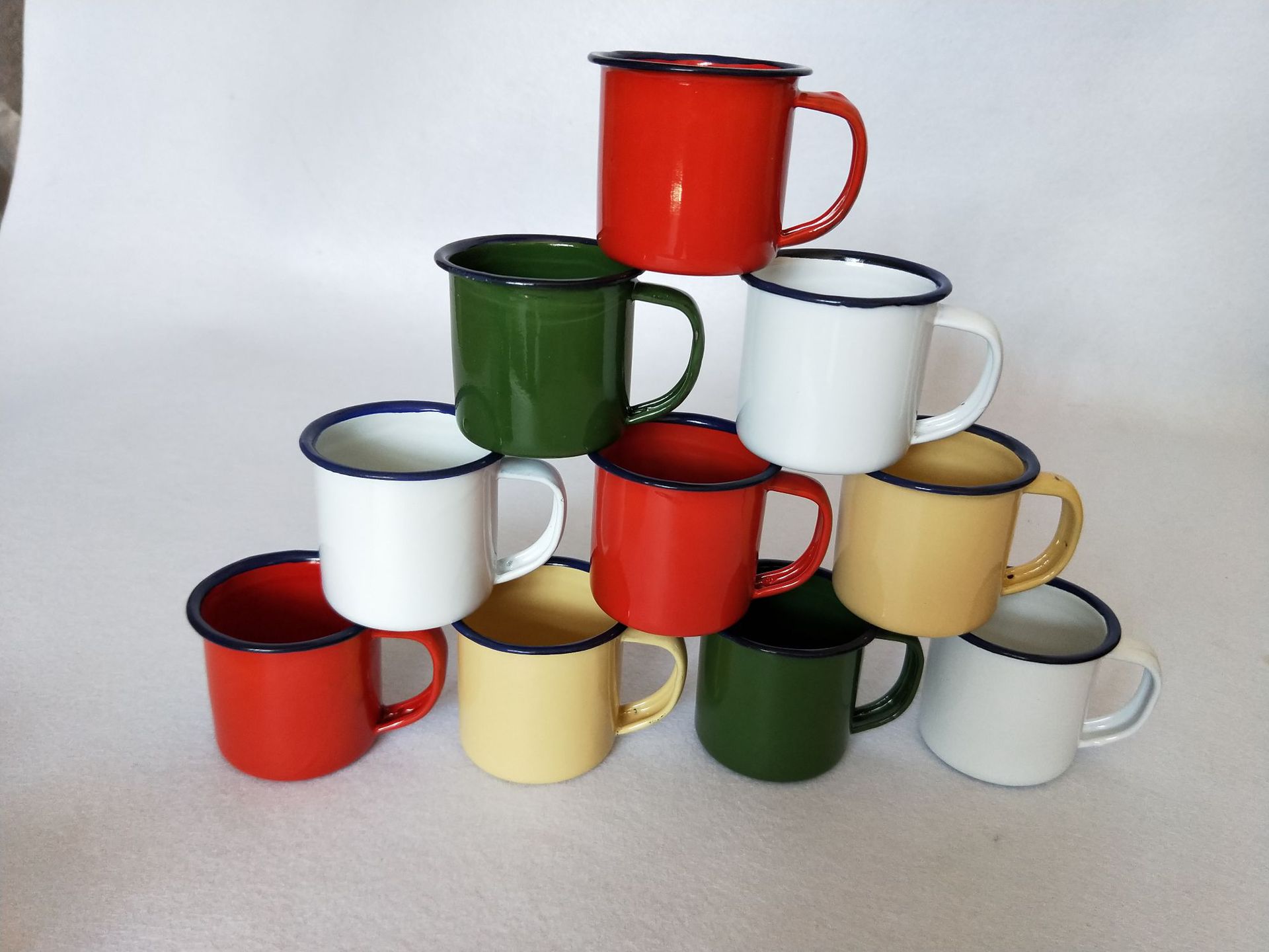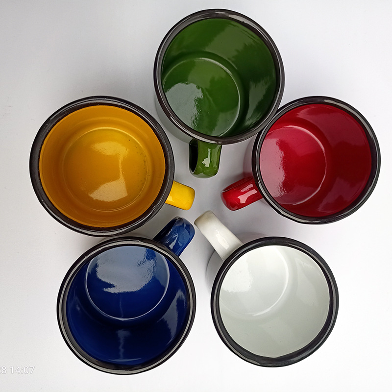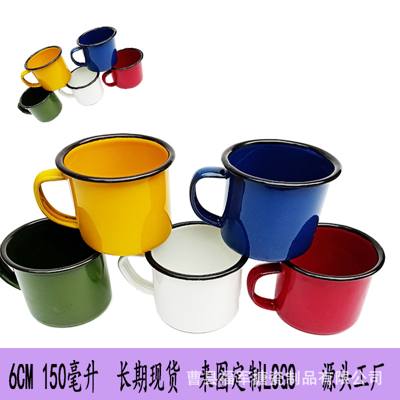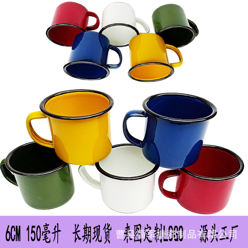 무료 배송 대외 무역 에나멜 컵 생산 공장 컬러 향수 물 컵 컬링 작은 와인 컵 철 도자기 항아리 인쇄 로고