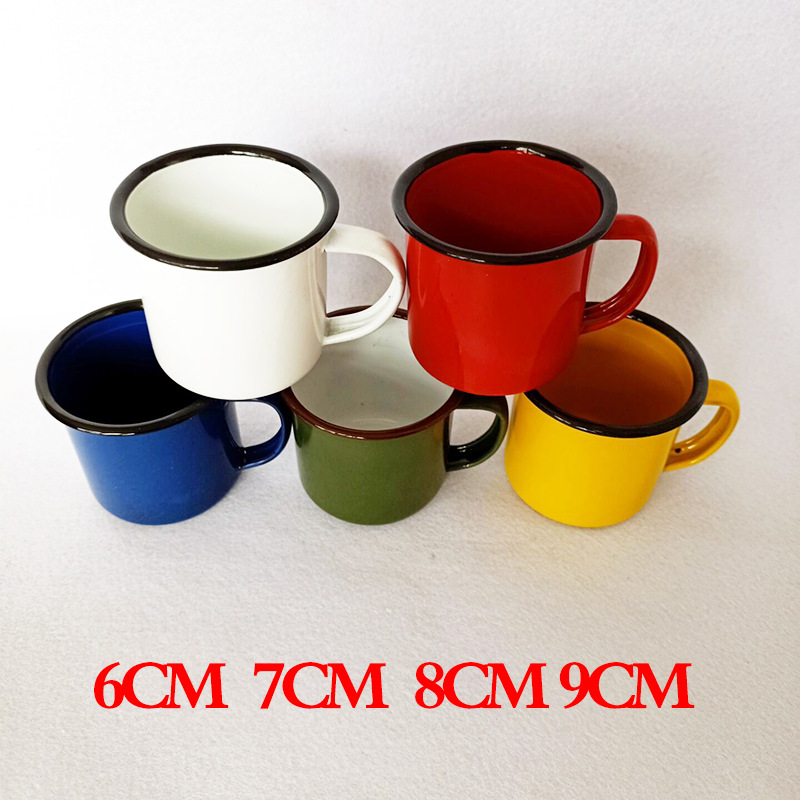 무료 배송 대외 무역 에나멜 컵 생산 공장 컬러 향수 물 컵 컬링 작은 와인 컵 철 도자기 항아리 인쇄 로고스토어 가기