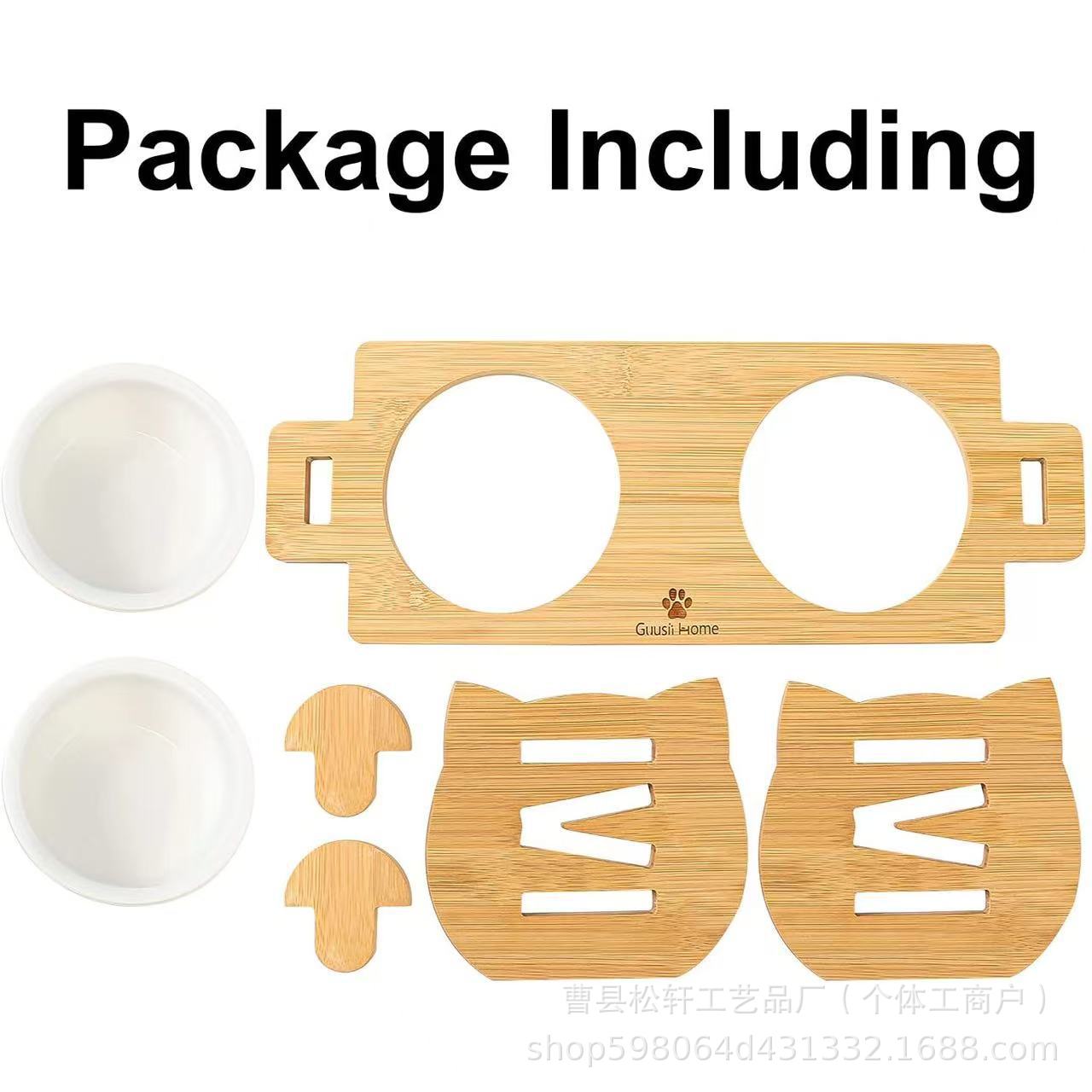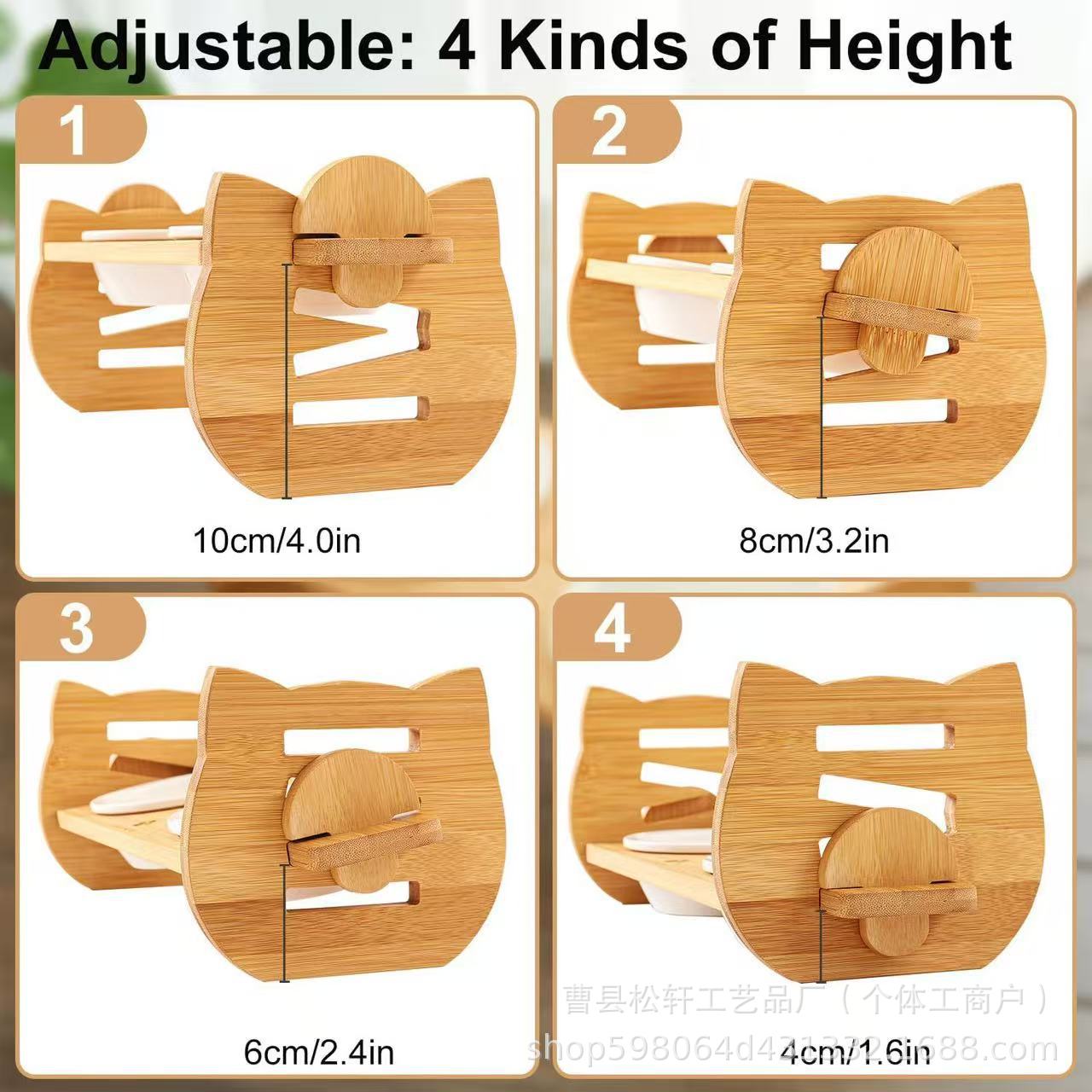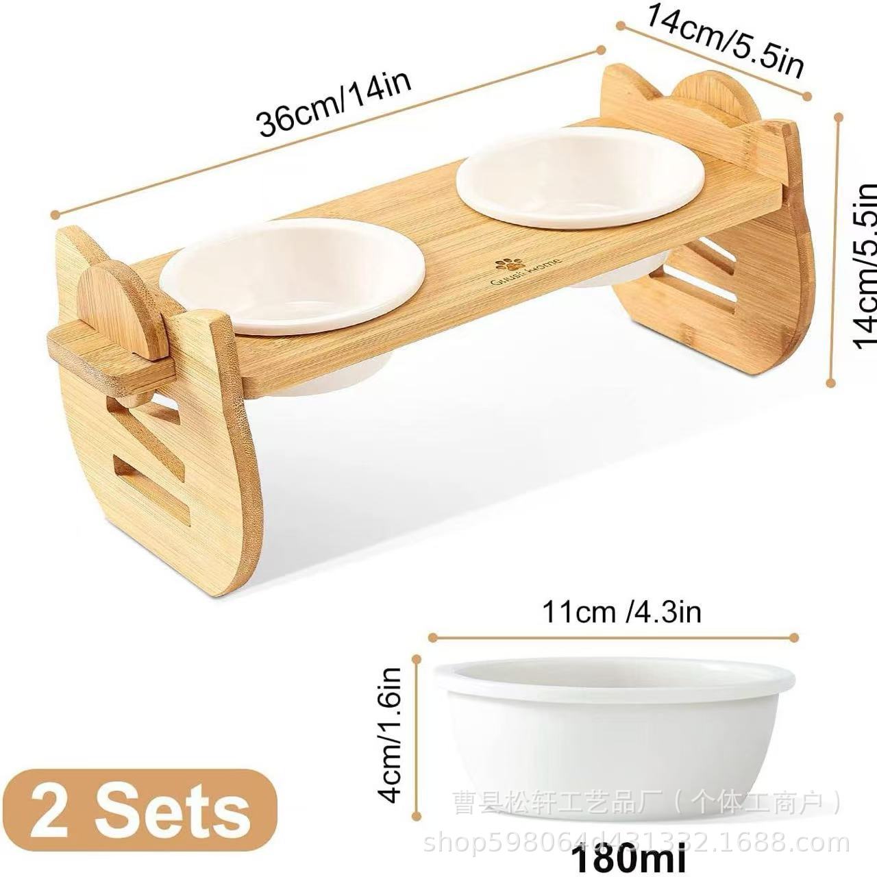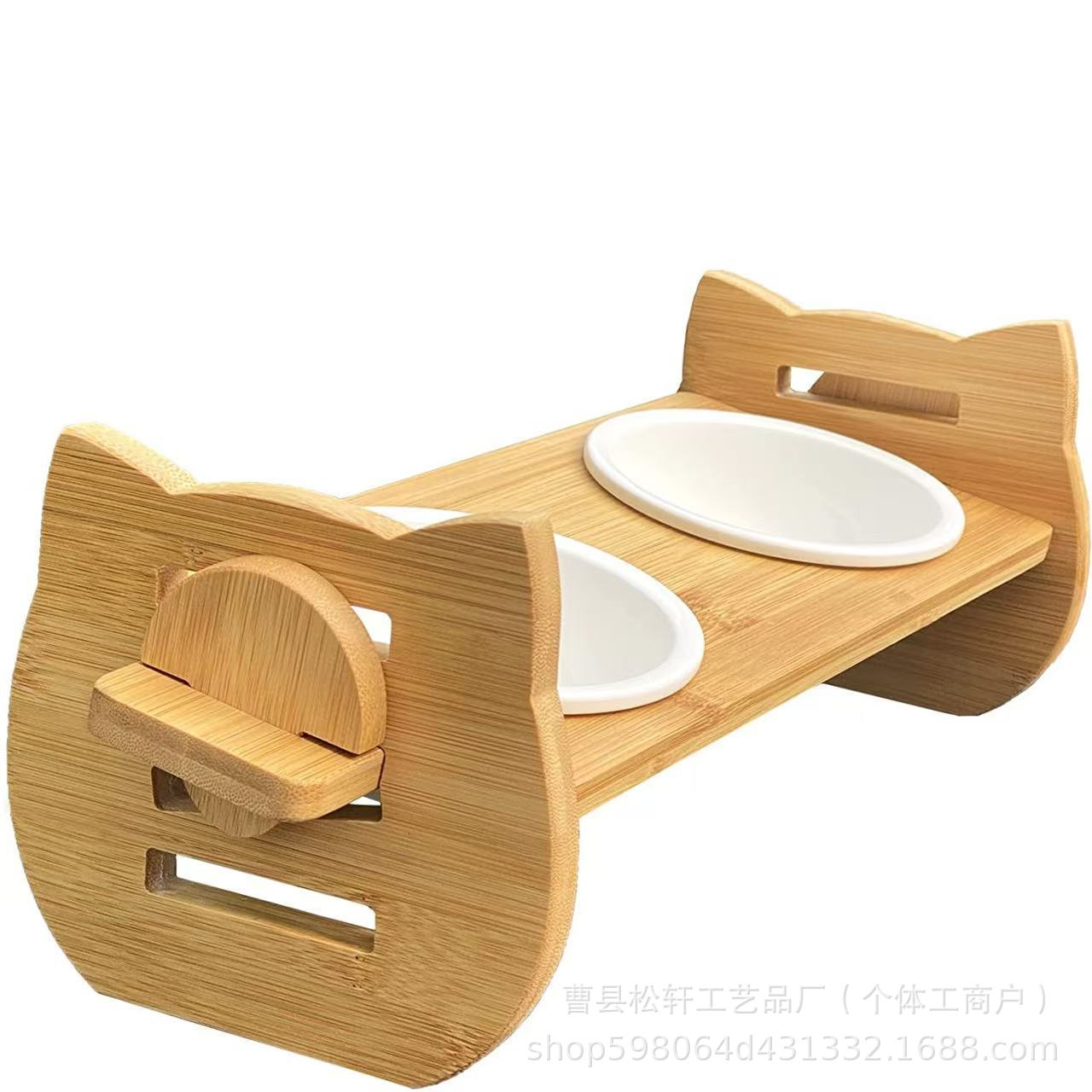 가정용 대나무 애완 동물 고양이 피더 보호 경추 애완 동물 먹이 그릇 홀더를위한 나무 더블 그릇 고양이 그릇 랙스토어 가기