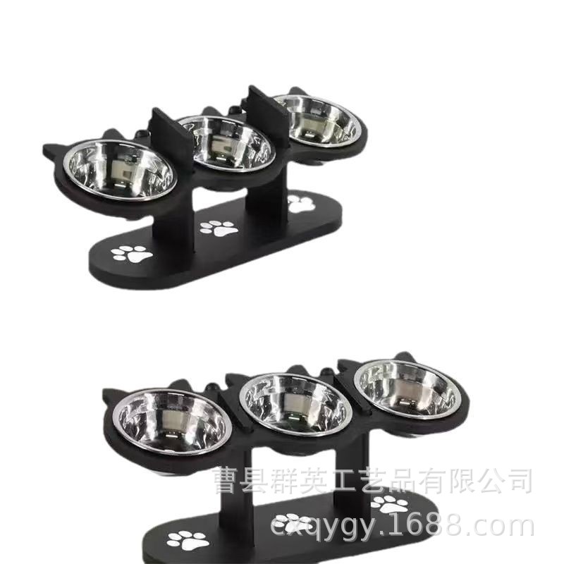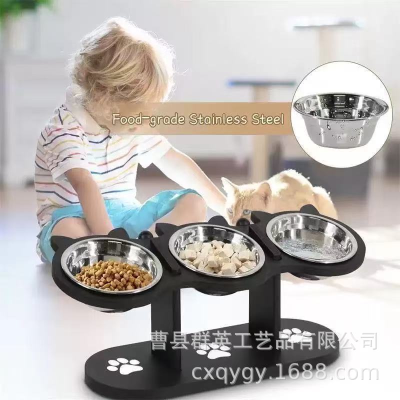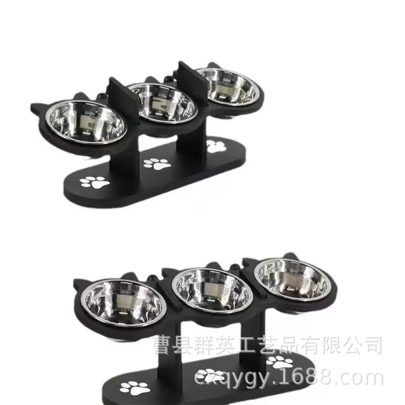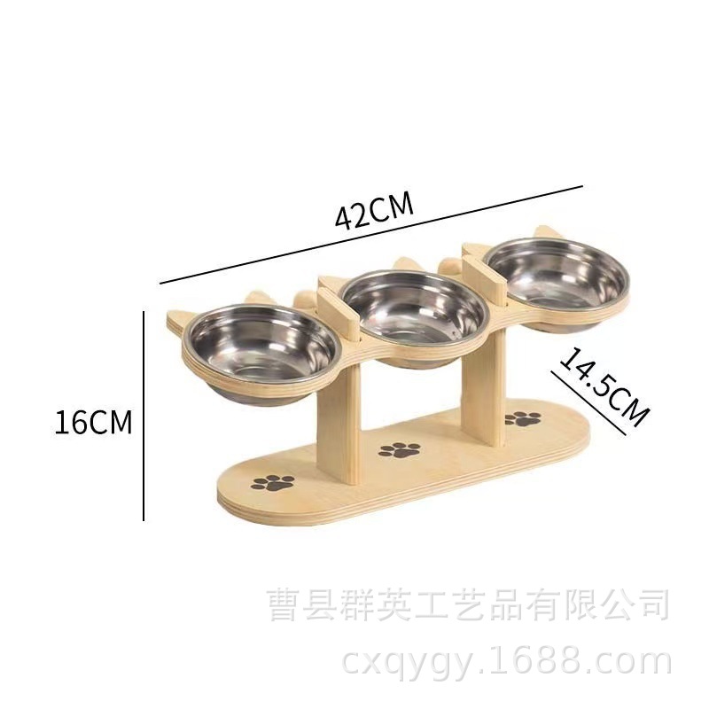 국경 간 단단한 나무 개 그릇 랙 경사 수직 스테인레스 스틸 3 그릇 애완 동물 고양이와 개 먹이통 식수 랙 식기
