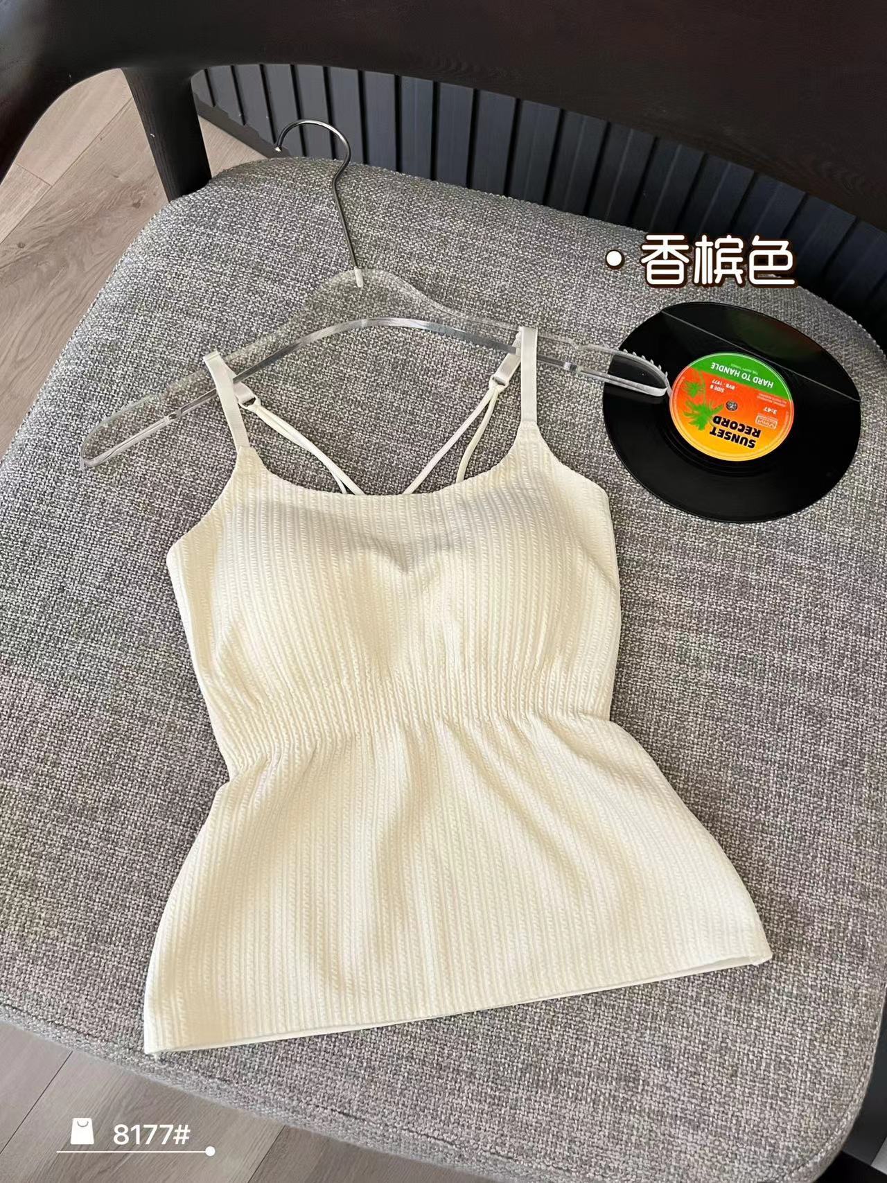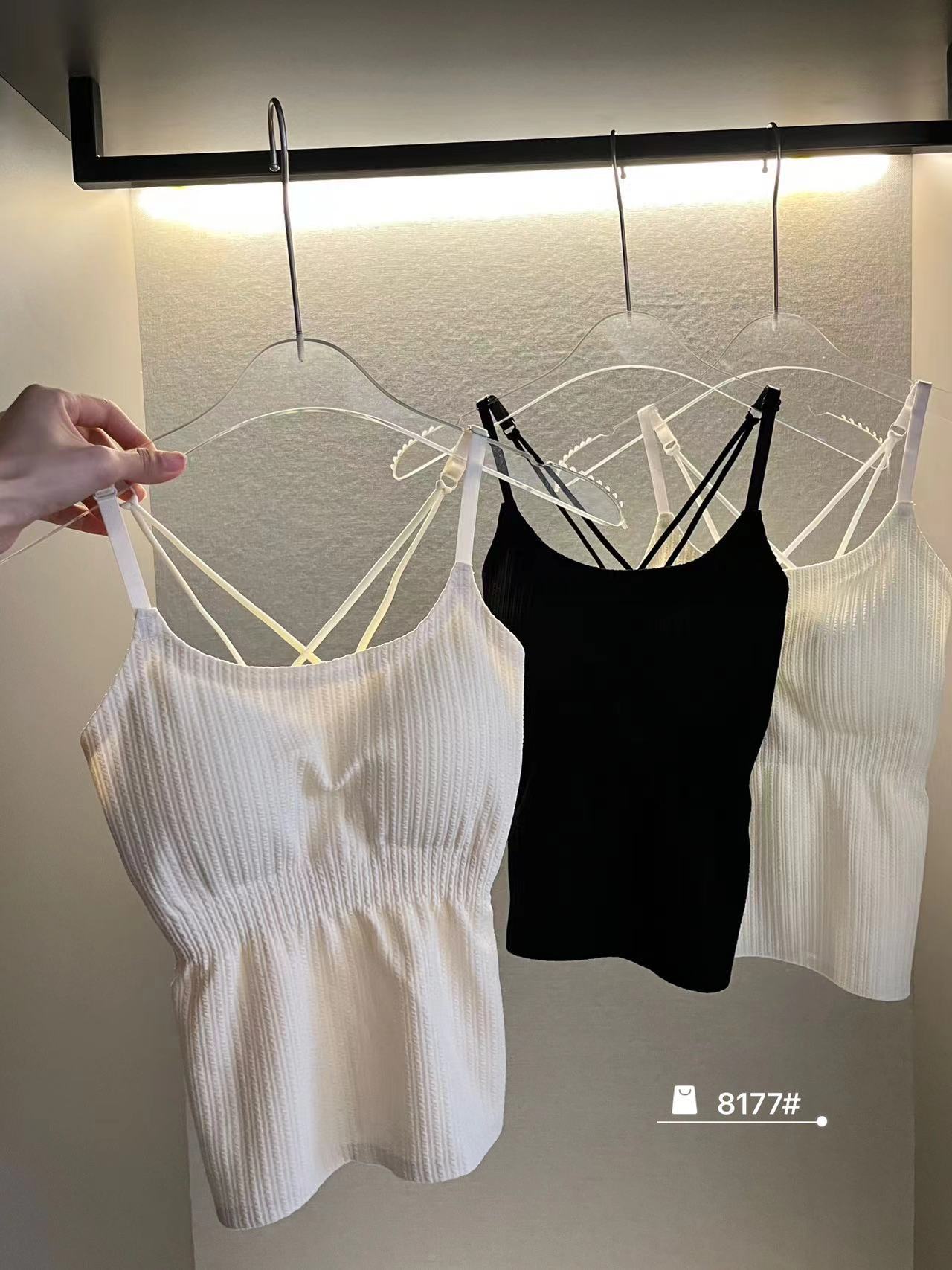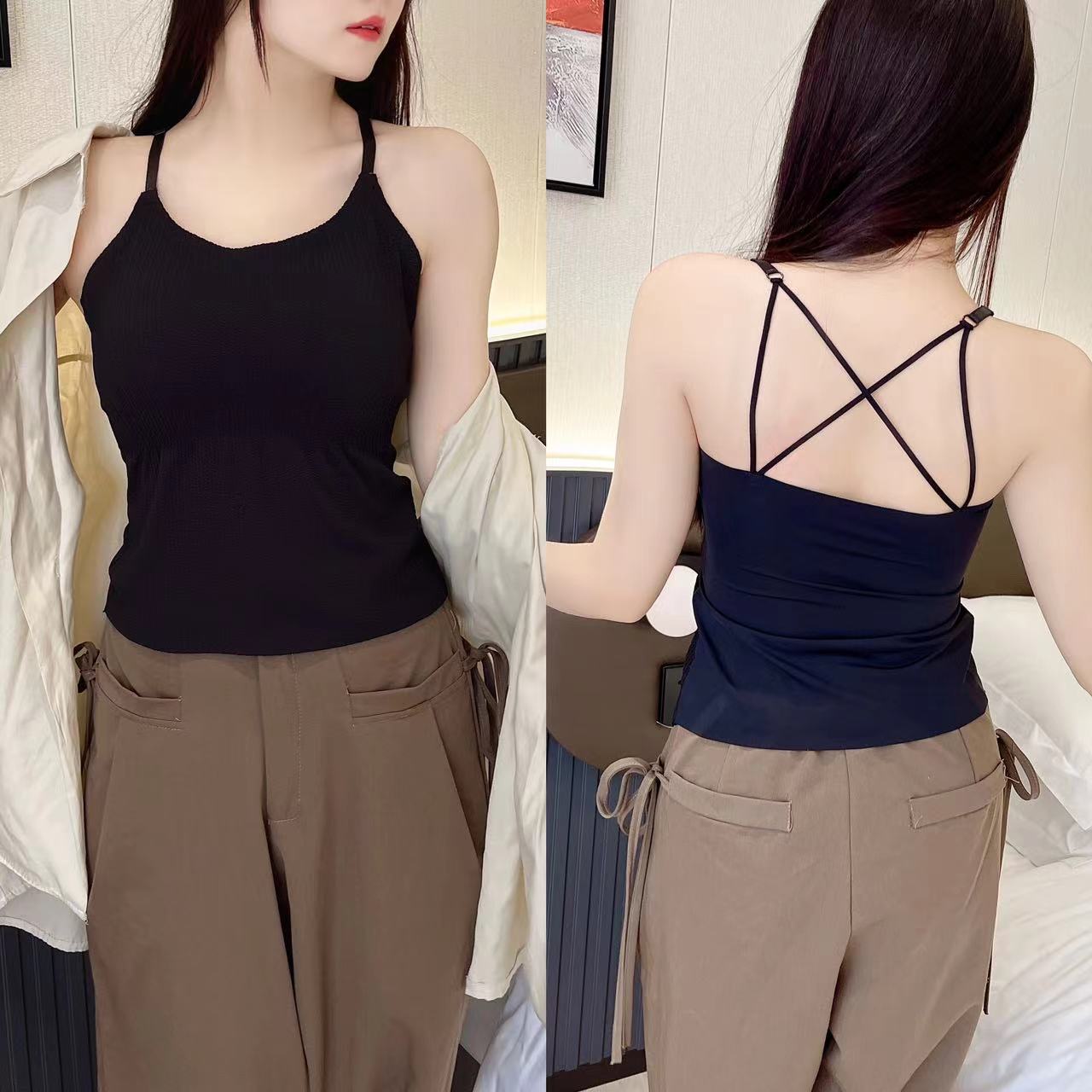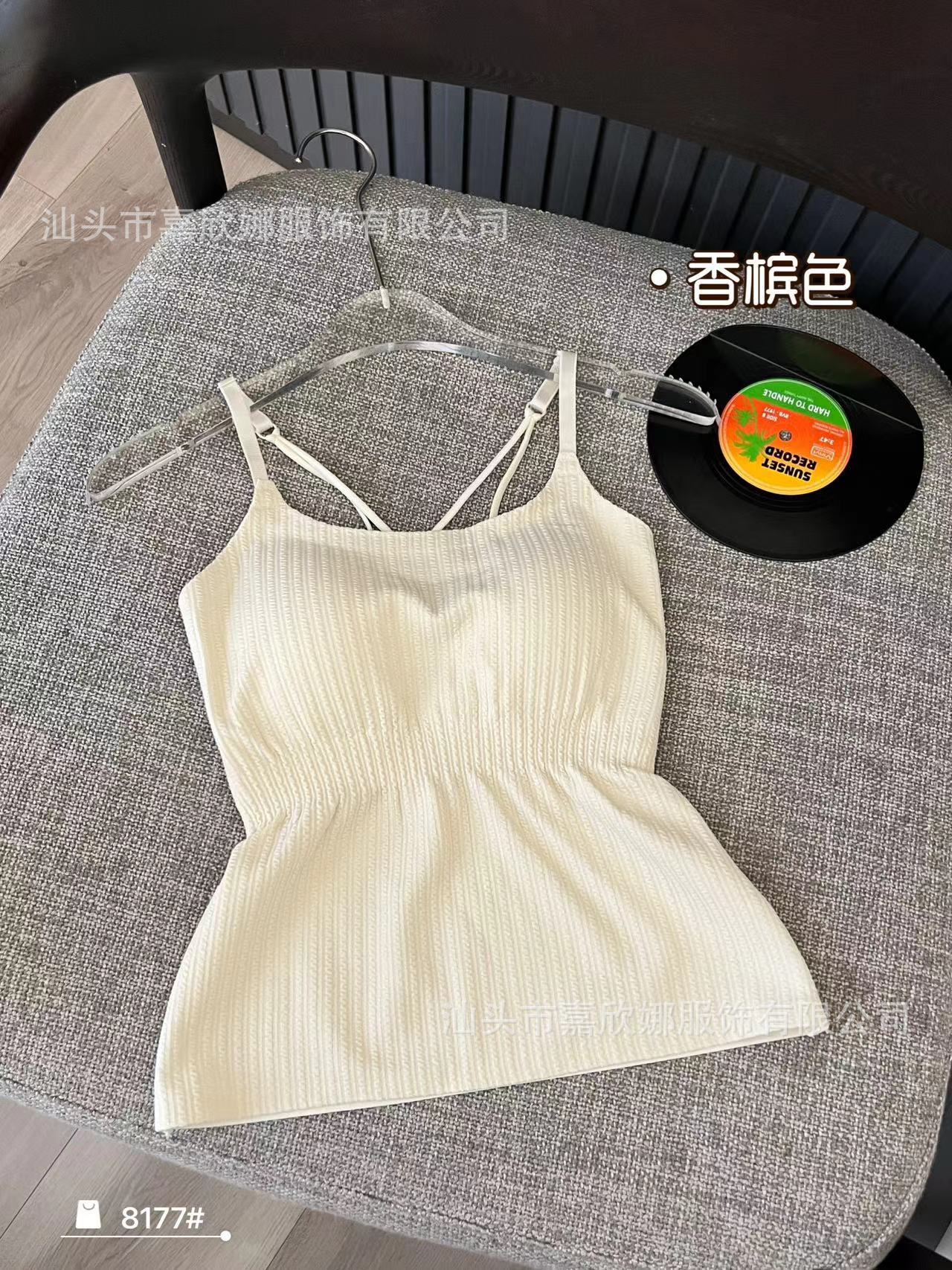 스트라이프 슬리밍 밑단 캐미솔, 틱톡 핫 스타일 주름 벨트 가슴 패드, 여성용 아우터 밑단 아름다운 백 캐미솔스토어 가기