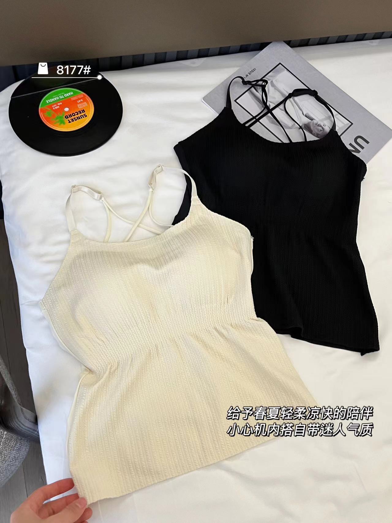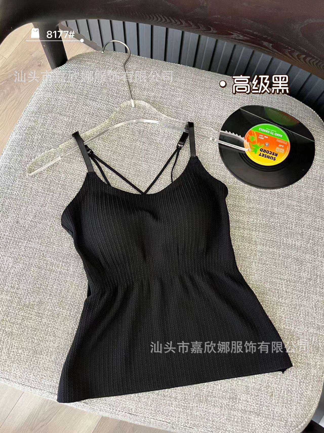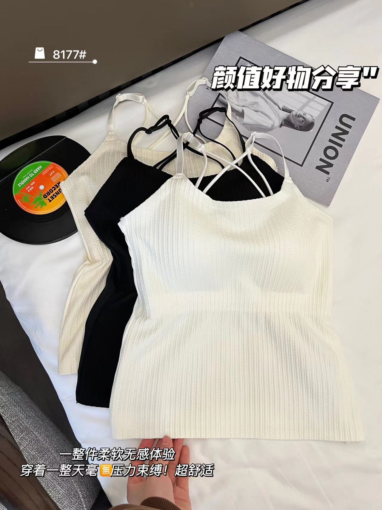 스트라이프 슬리밍 밑단 캐미솔, 틱톡 핫 스타일 주름 벨트 가슴 패드, 여성용 아우터 밑단 아름다운 백 캐미솔스토어 가기