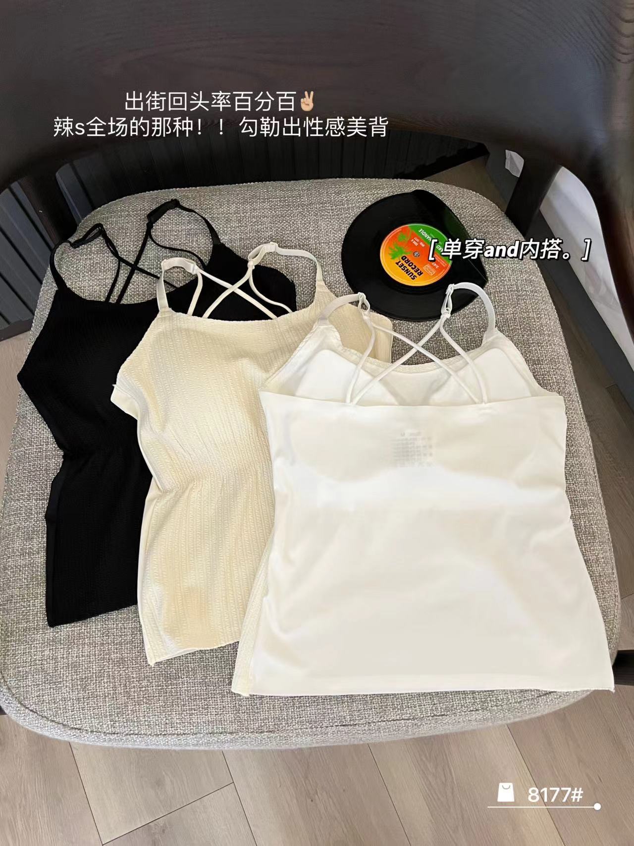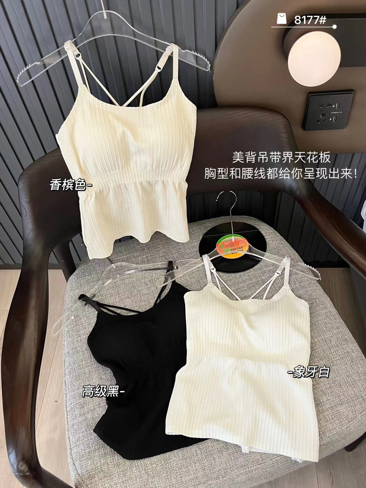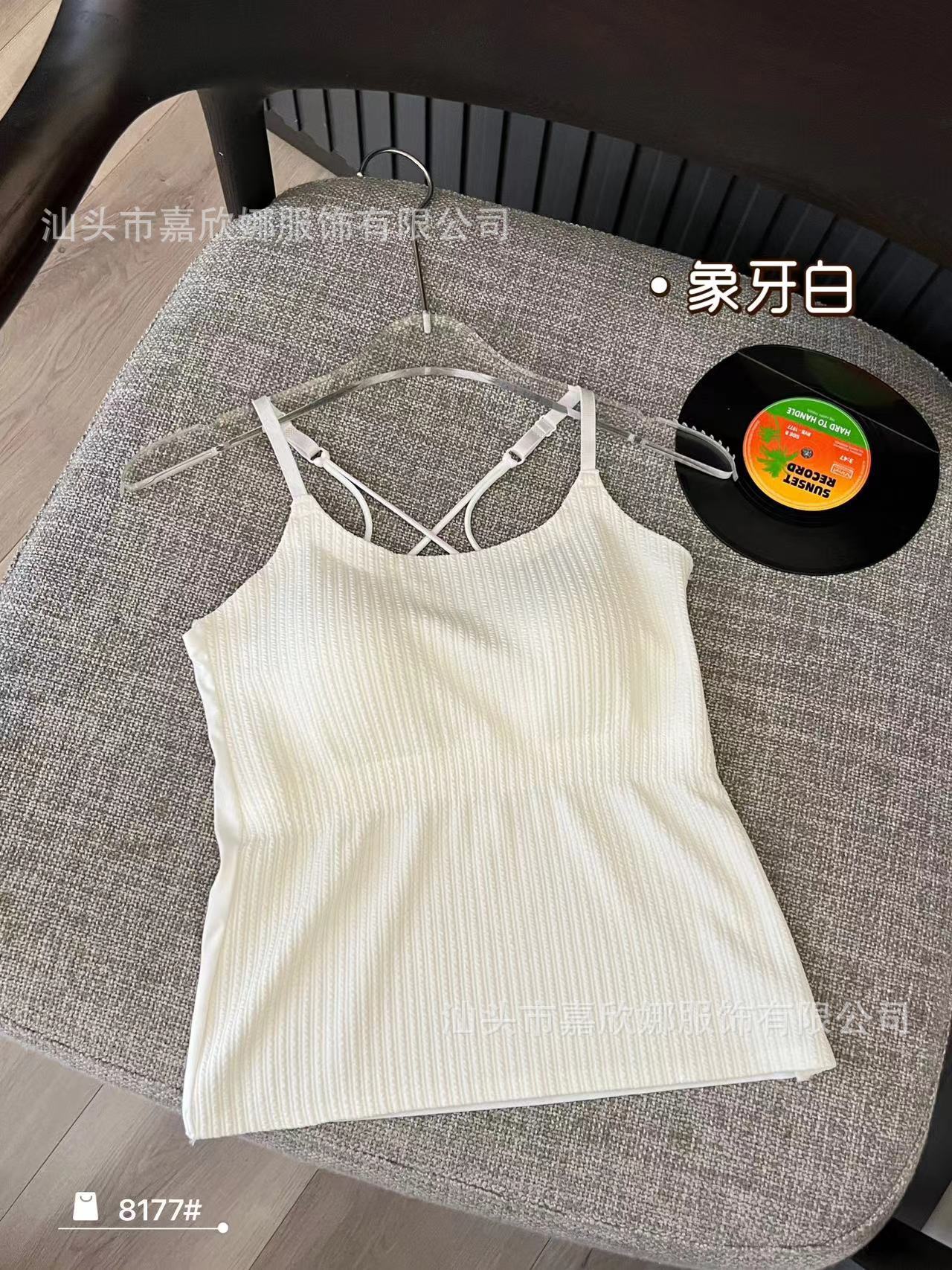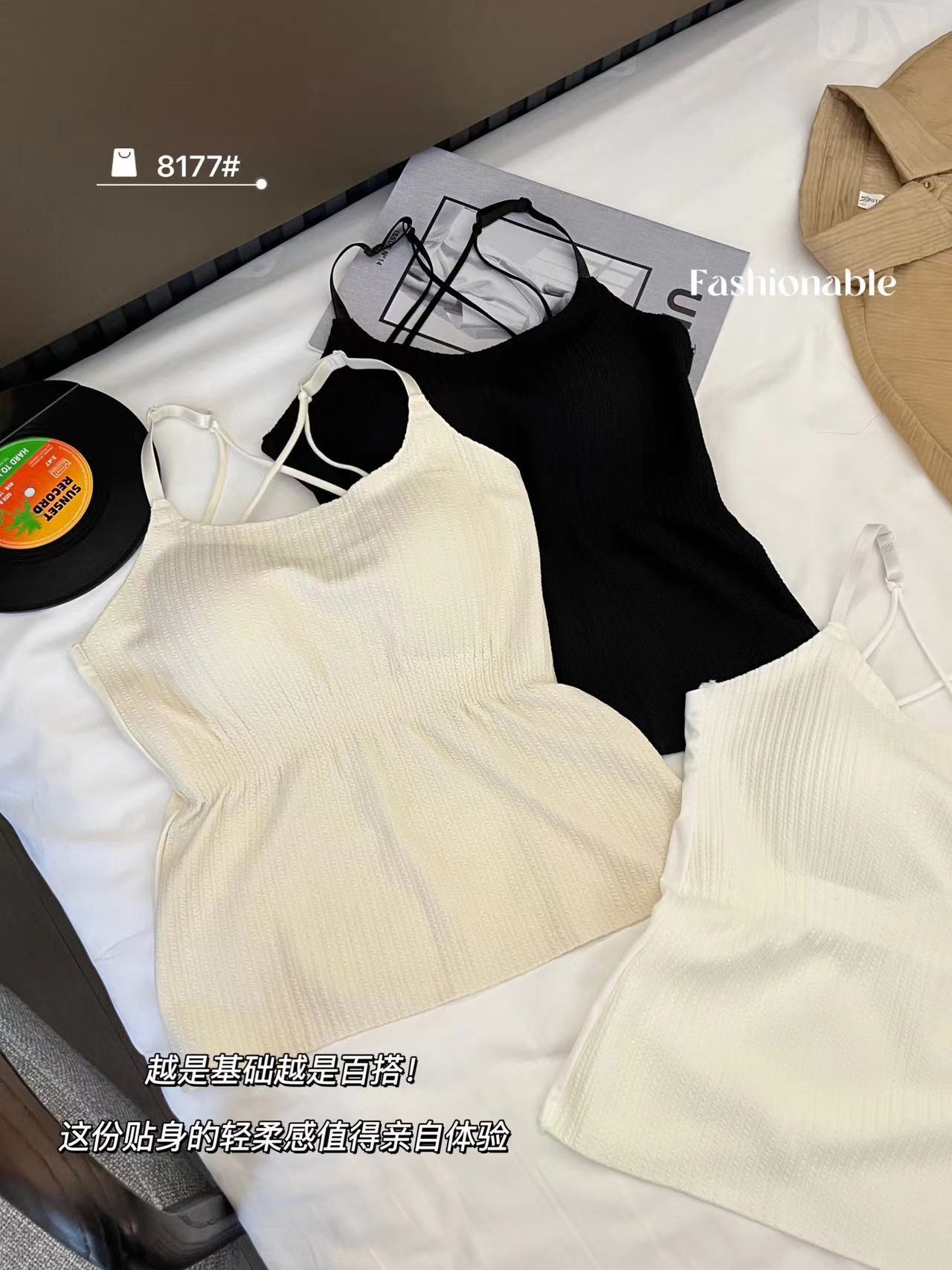 스트라이프 슬리밍 밑단 캐미솔, 틱톡 핫 스타일 주름 벨트 가슴 패드, 여성용 아우터 밑단 아름다운 백 캐미솔스토어 가기