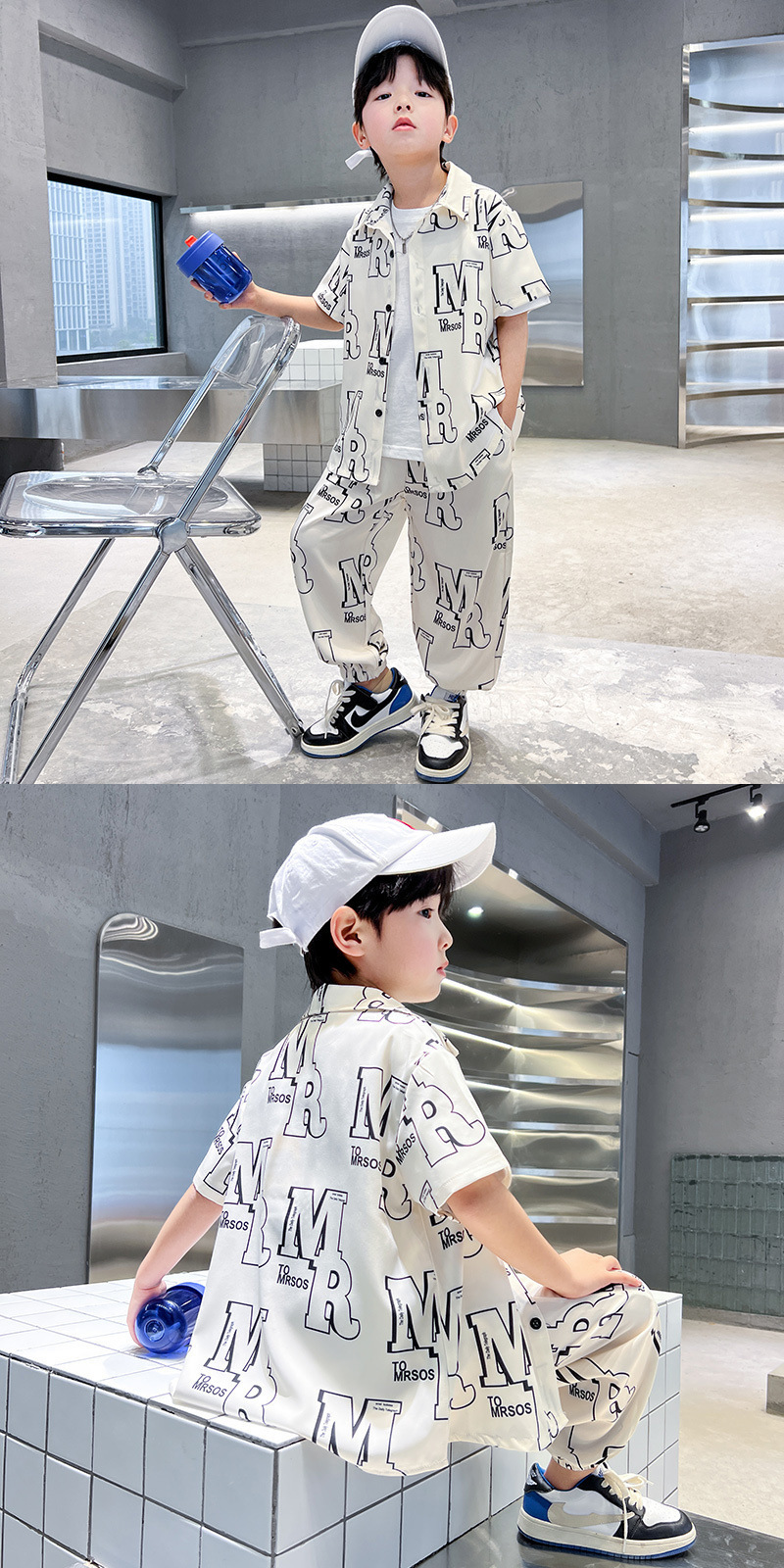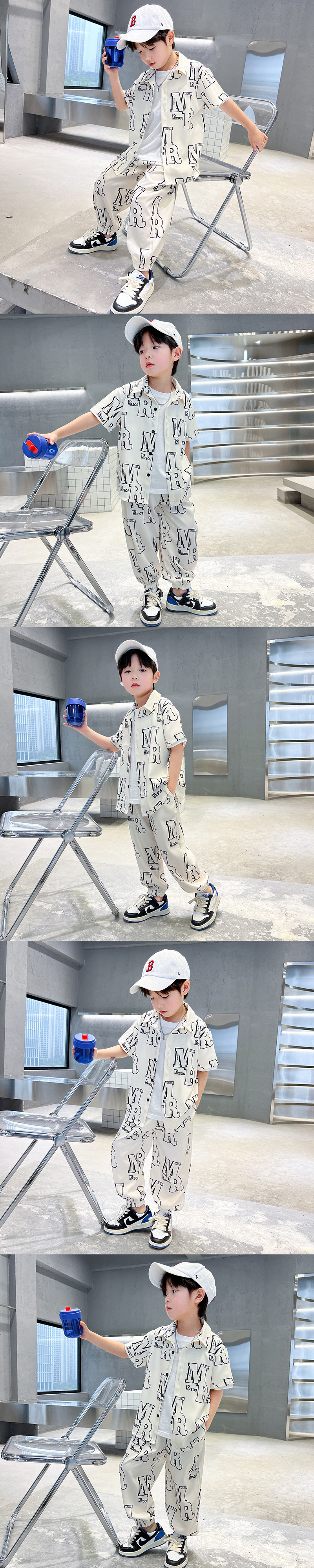 소년 여름 정장 2023 새로운 아기 여름 반팔 바지 얇은 투피스 세트 아동 셔츠 캐주얼웨어스토어 가기