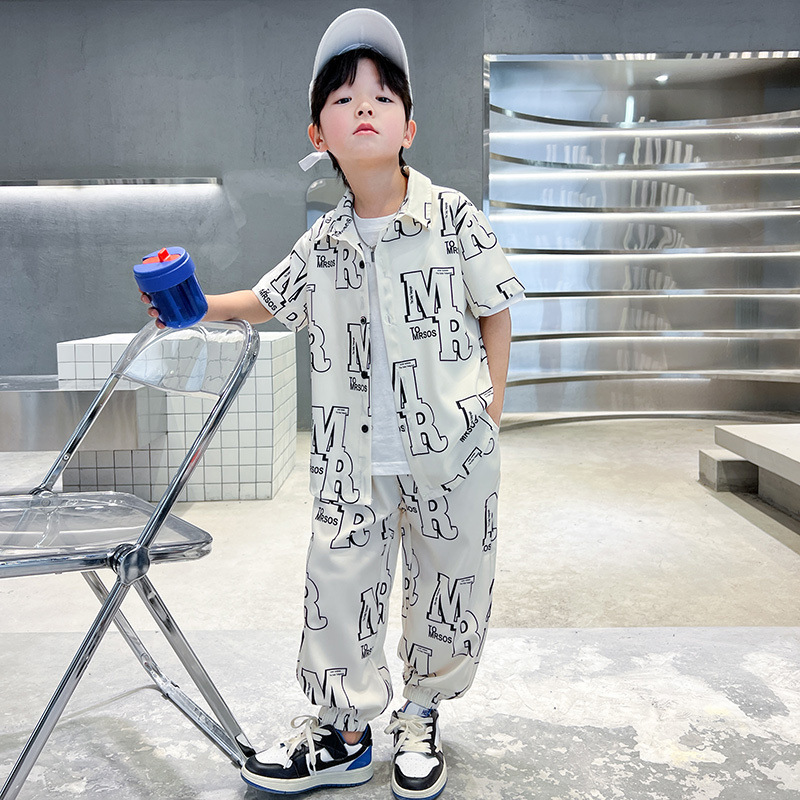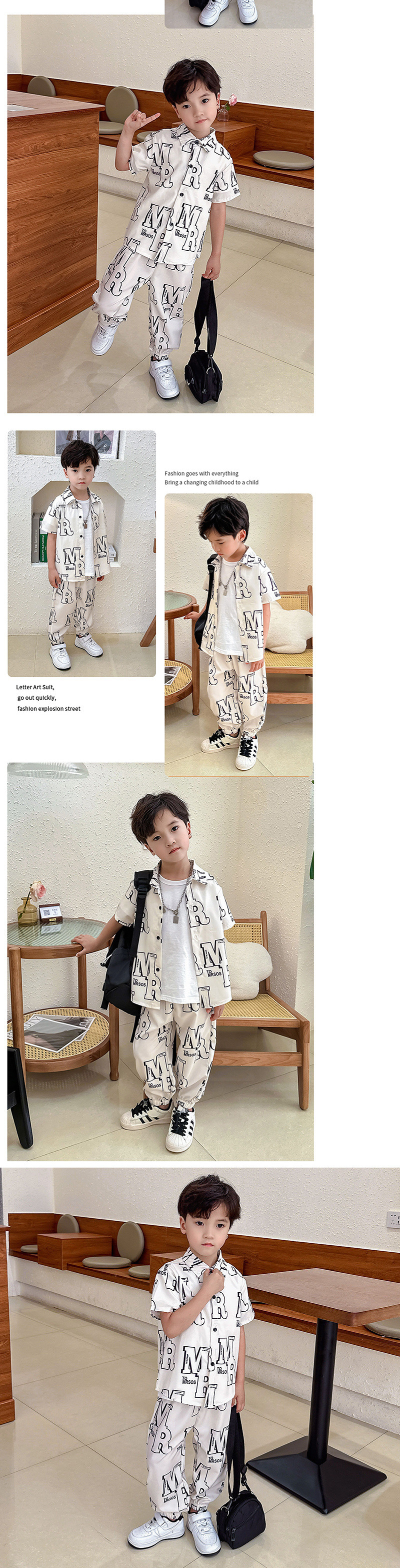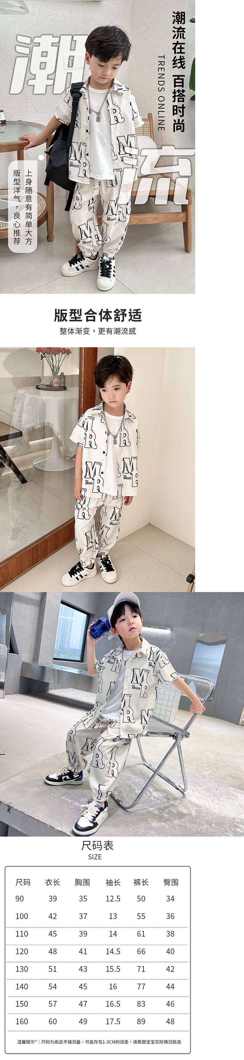 소년 여름 정장 2023 새로운 아기 여름 반팔 바지 얇은 투피스 세트 아동 셔츠 캐주얼웨어