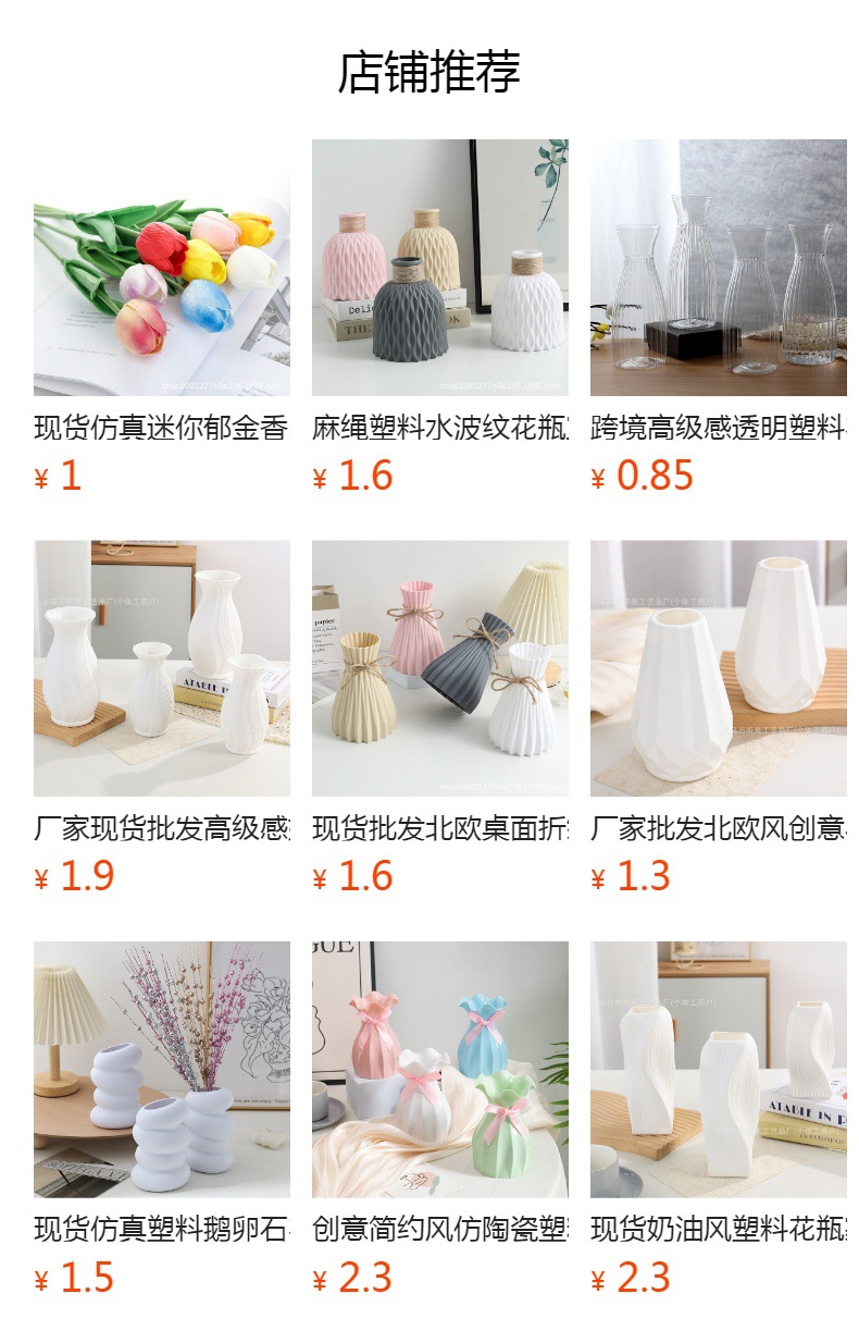 심플한 북유럽 스타일 원형 꽃병, 해외 직구 플라스틱 꽃꽂이 장식품, 도자기풍 홈데코 도매스토어 가기