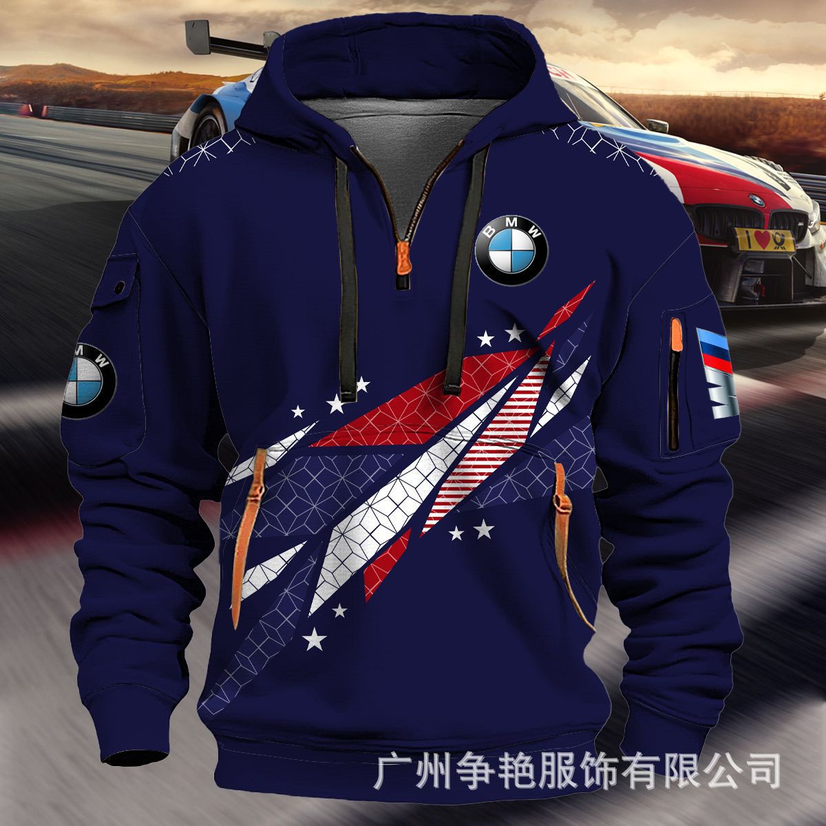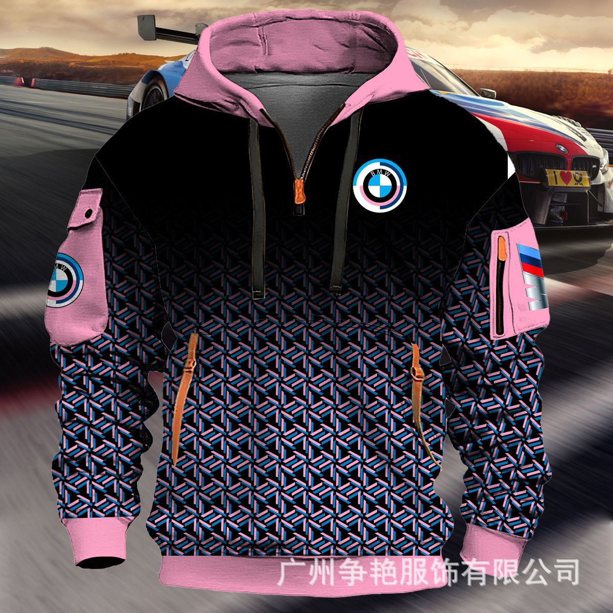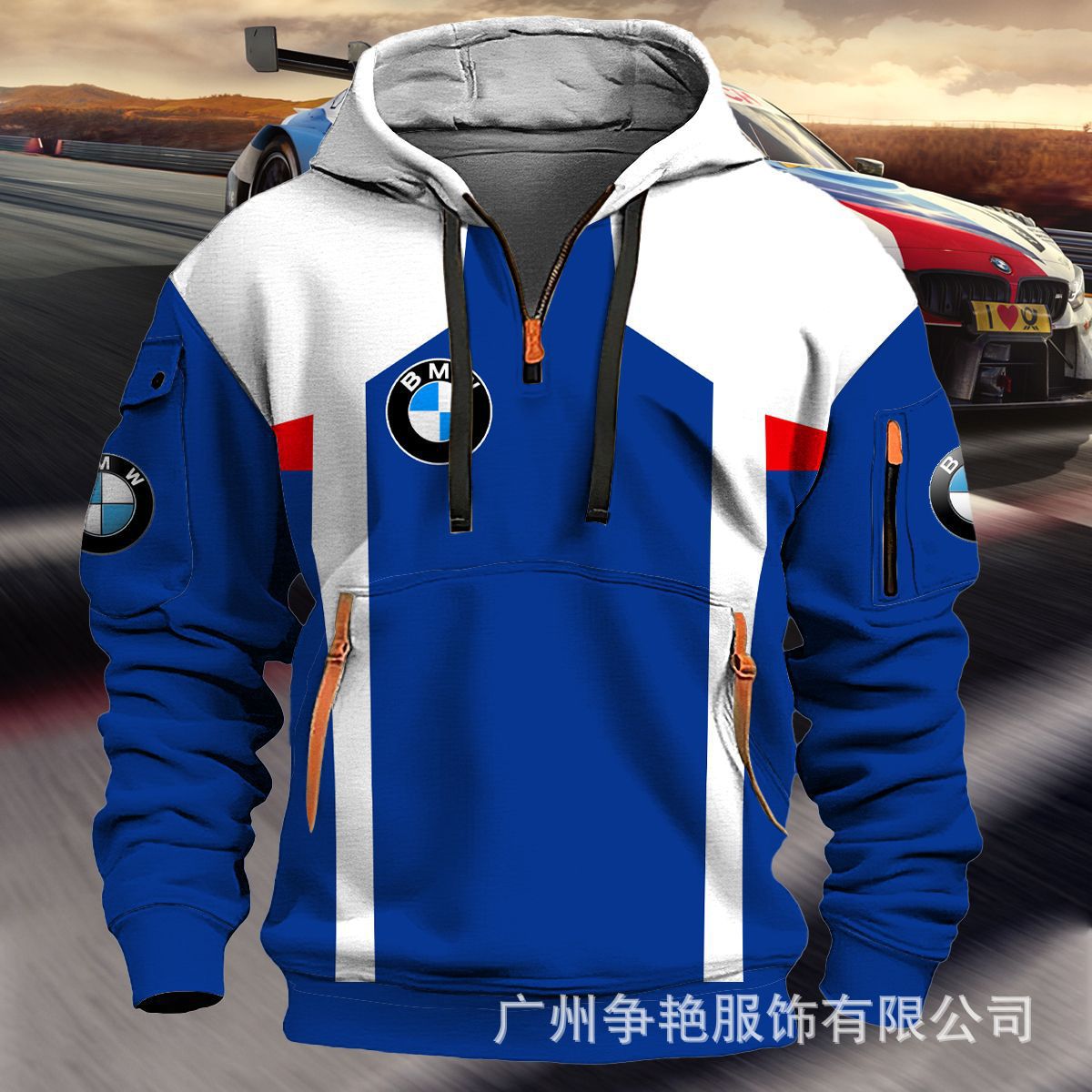 2025 크로스보더 250g 건강한 벨벳 BMW 자동차 로고 남성용 멀티 포켓 지퍼 후드 티셔츠 243