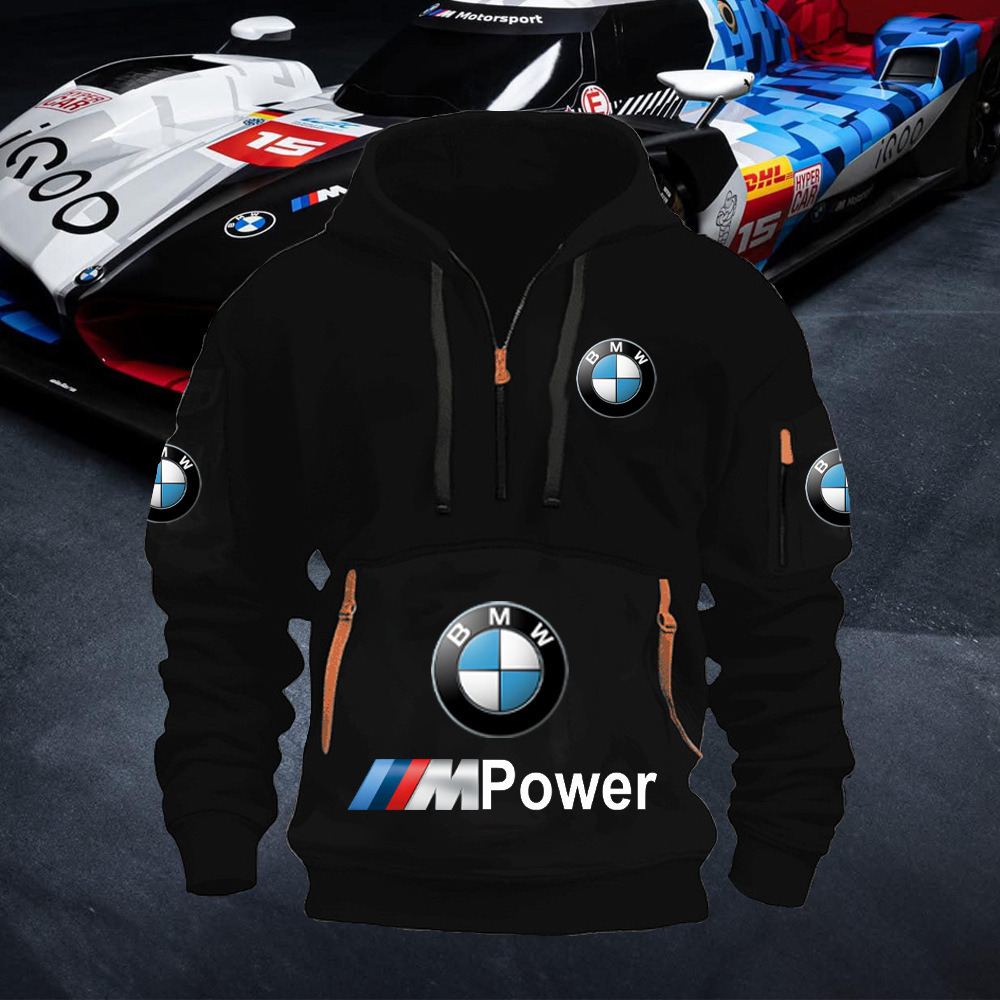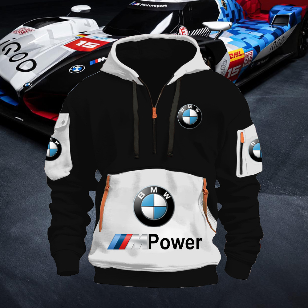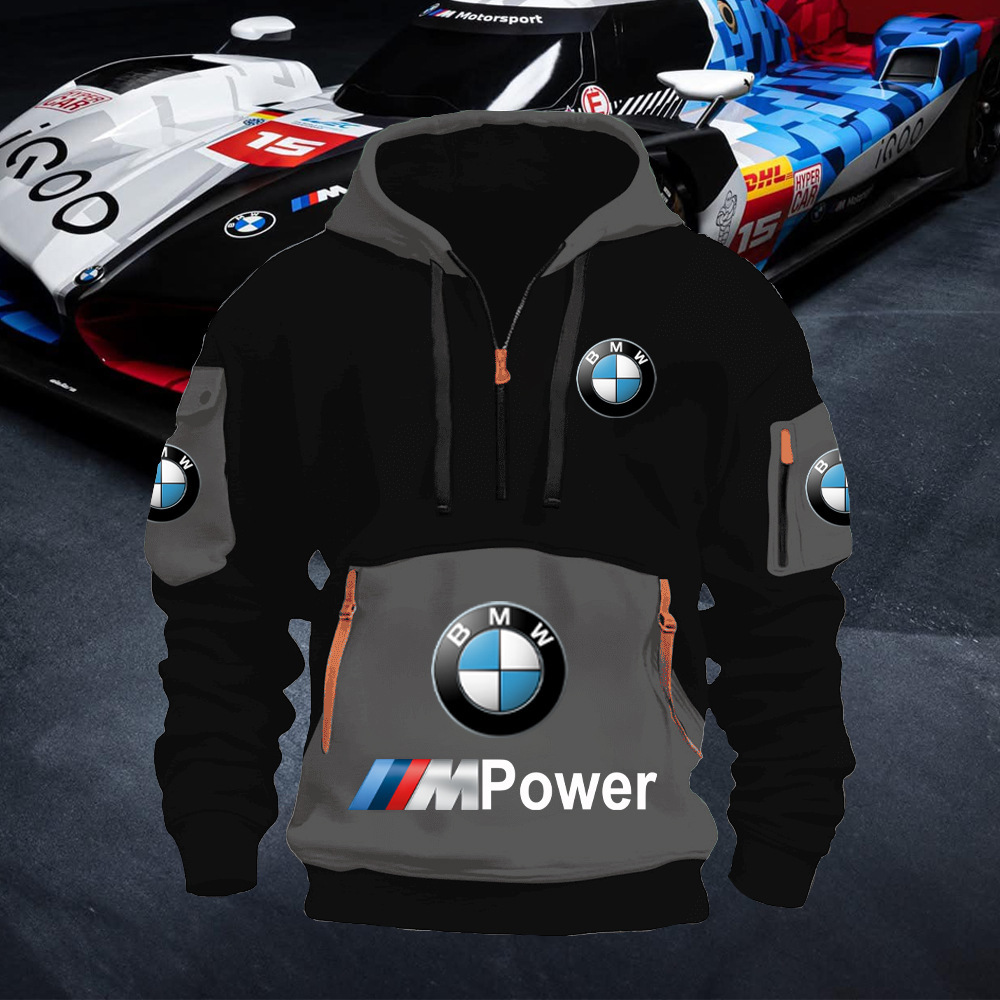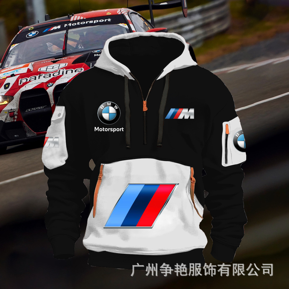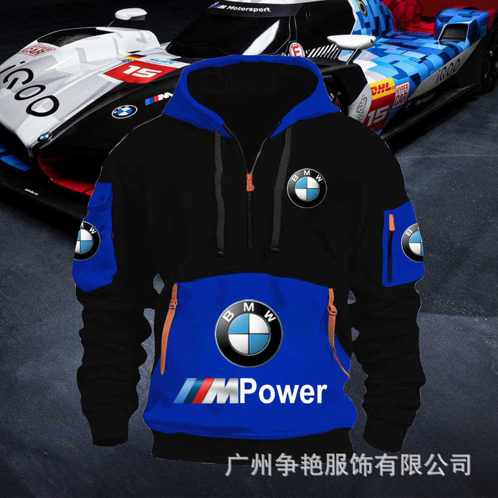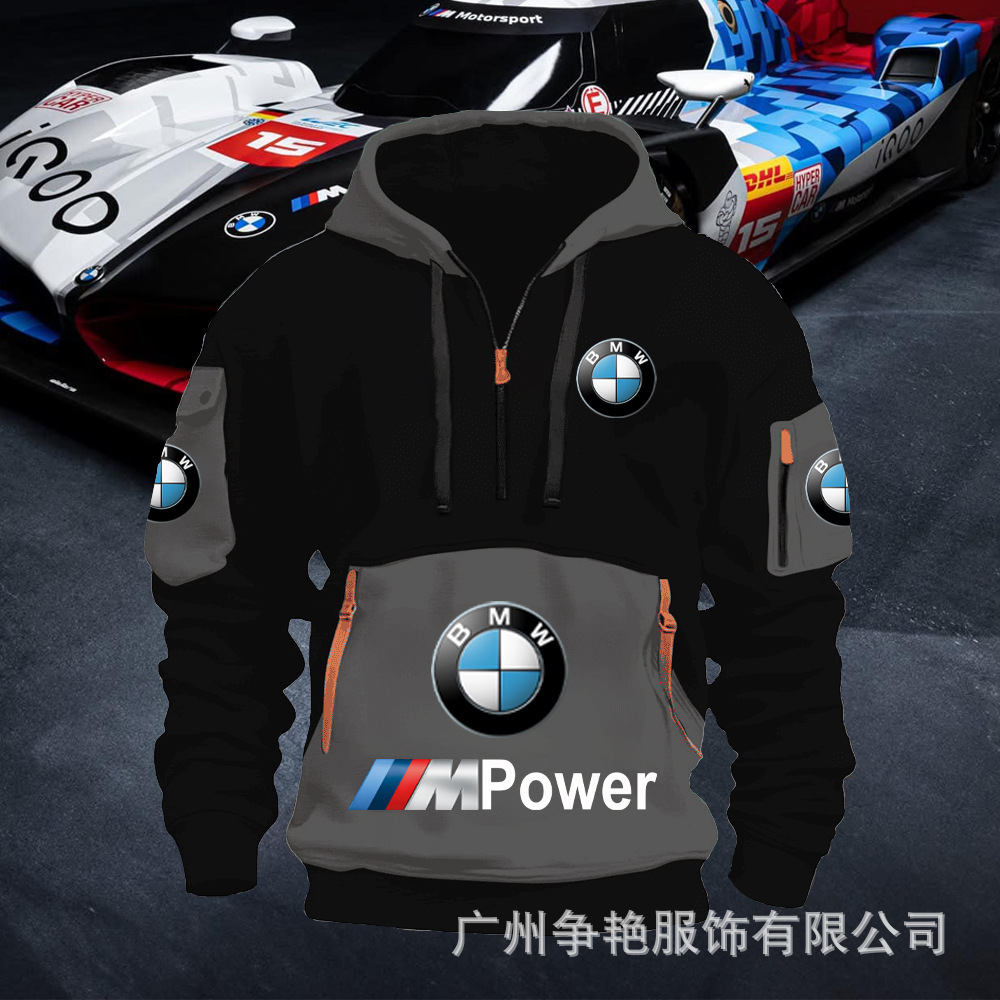 2025 크로스보더 250g 건강한 벨벳 BMW 자동차 로고 남성용 멀티 포켓 지퍼 후드 티셔츠 243스토어 가기