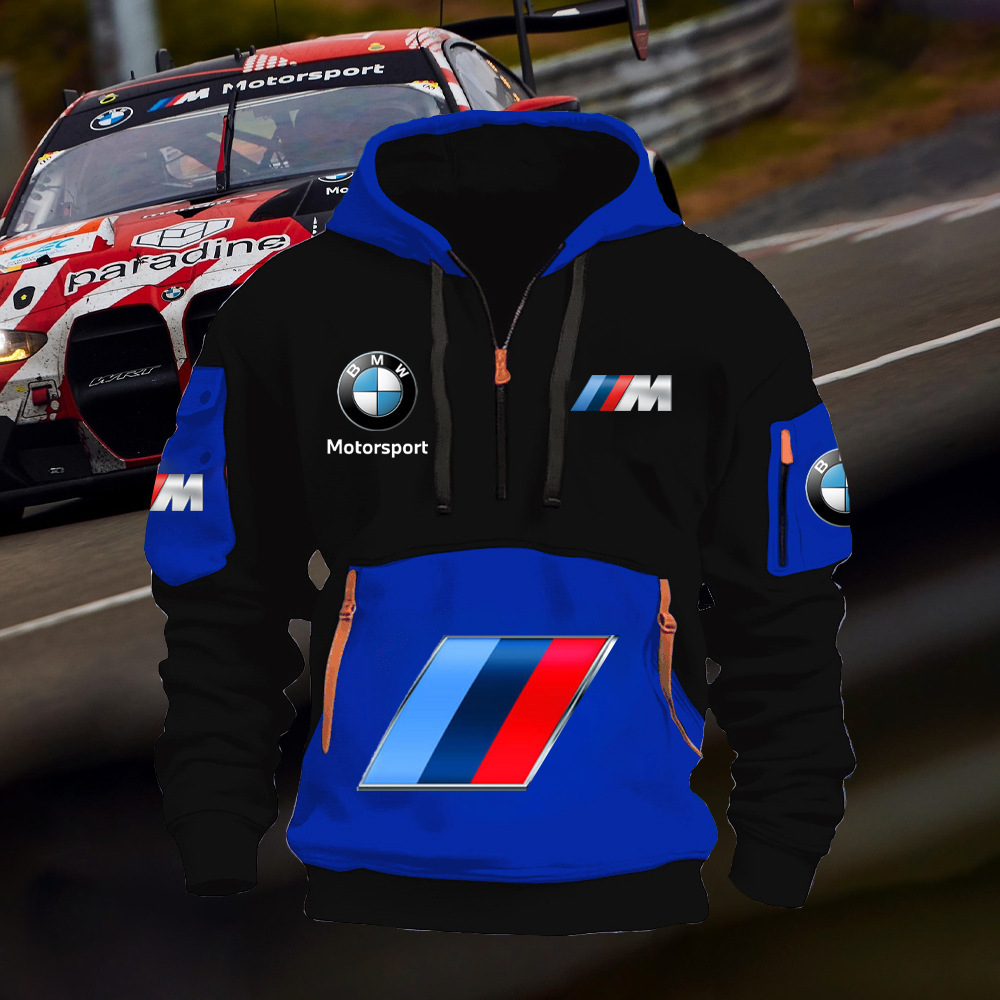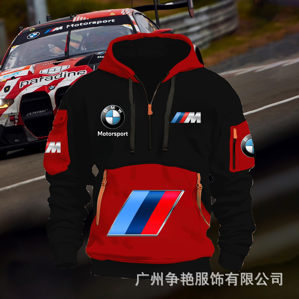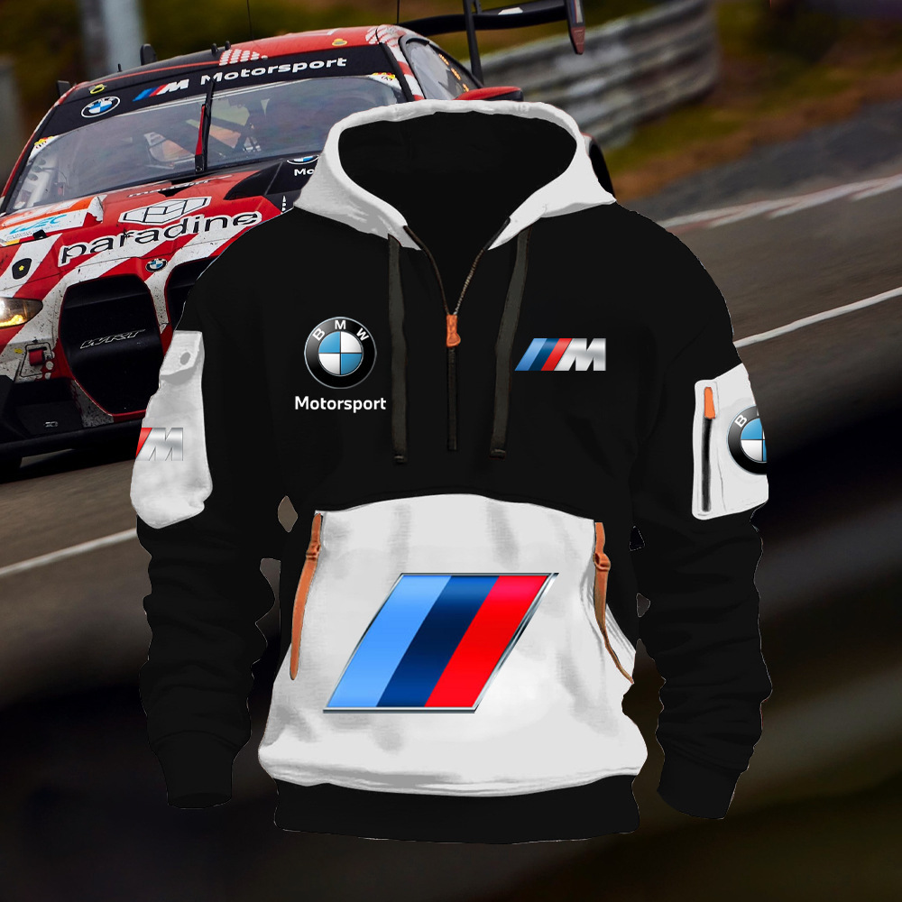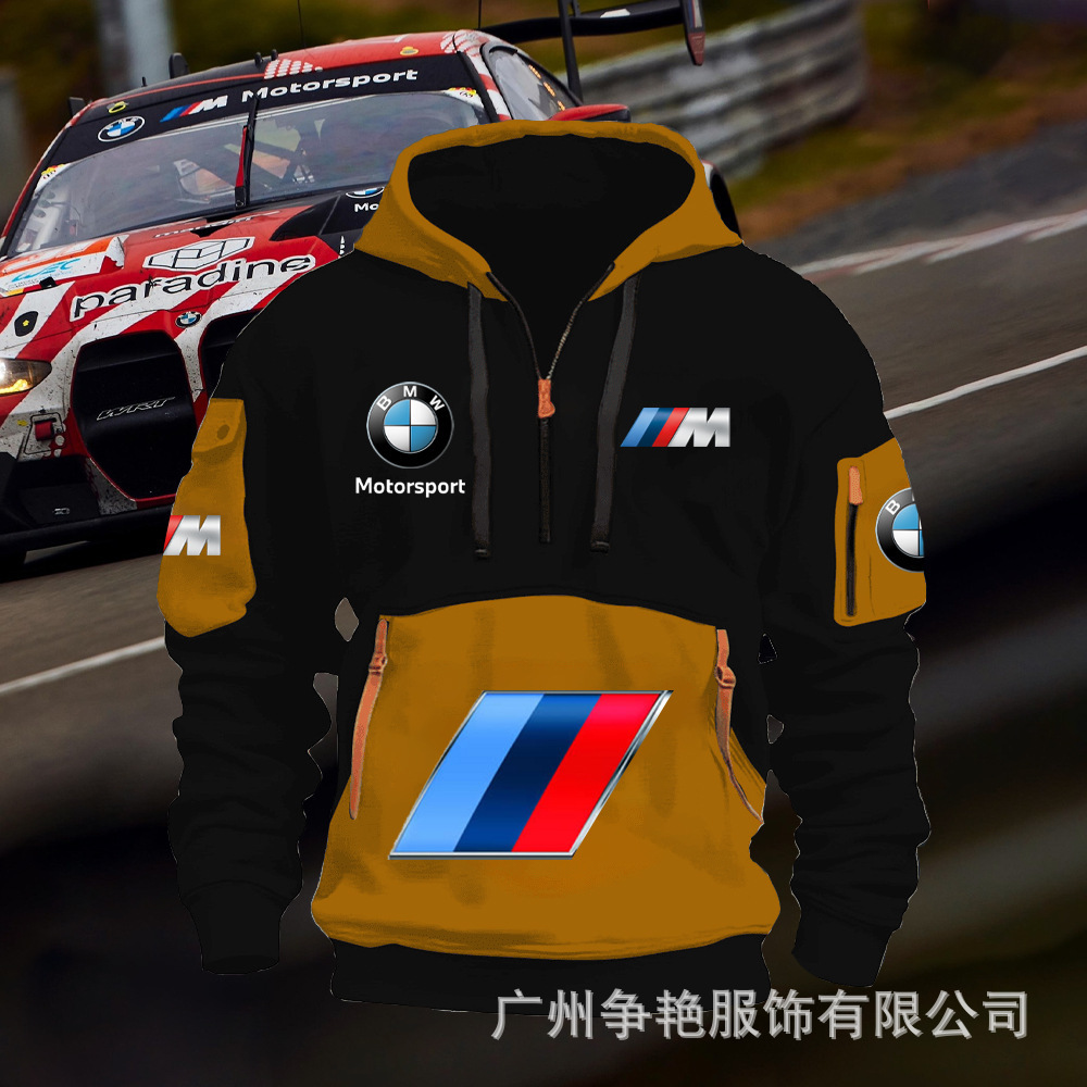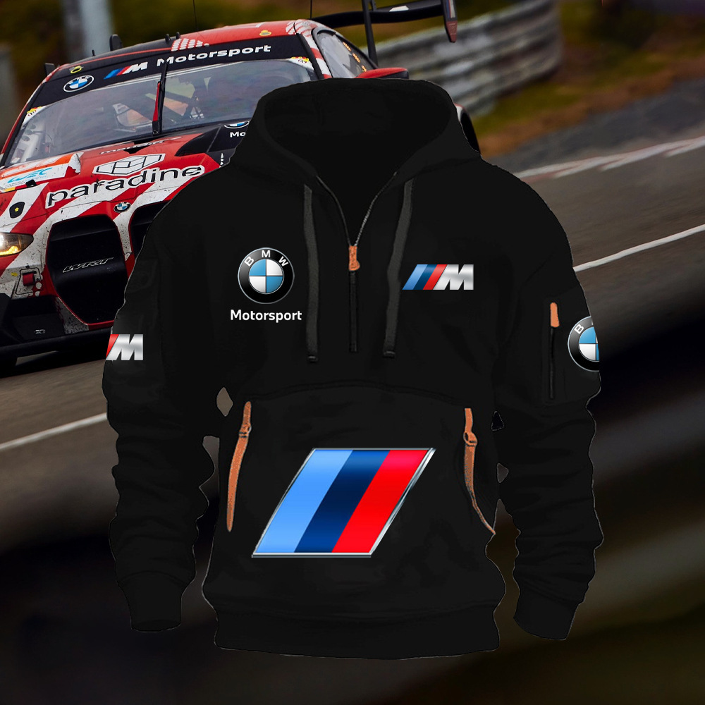 2025 크로스보더 250g 건강한 벨벳 BMW 자동차 로고 남성용 멀티 포켓 지퍼 후드 티셔츠 243스토어 가기