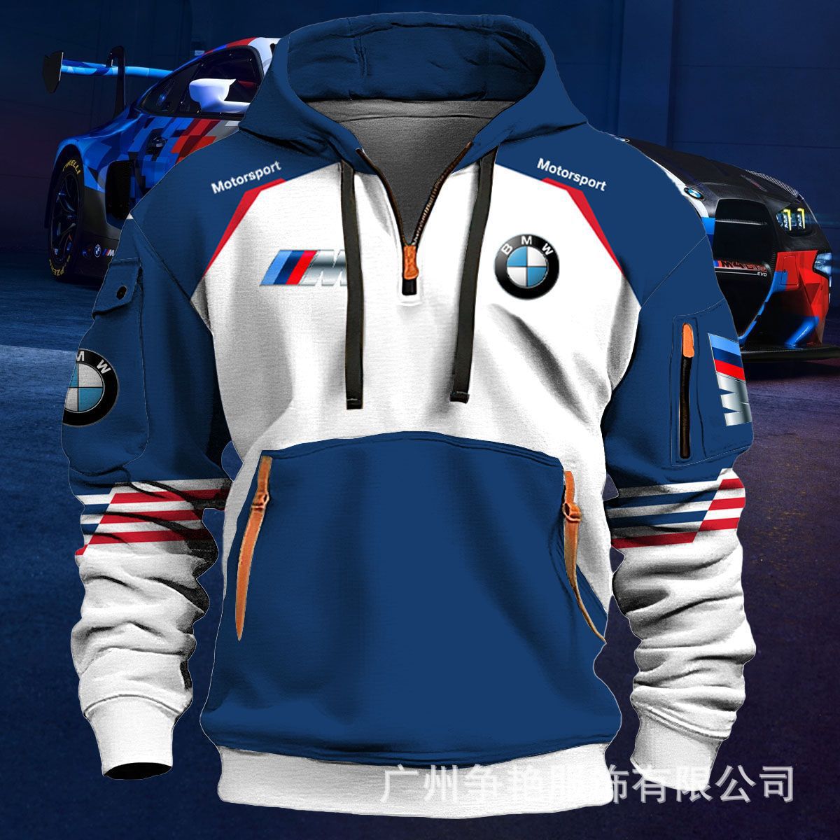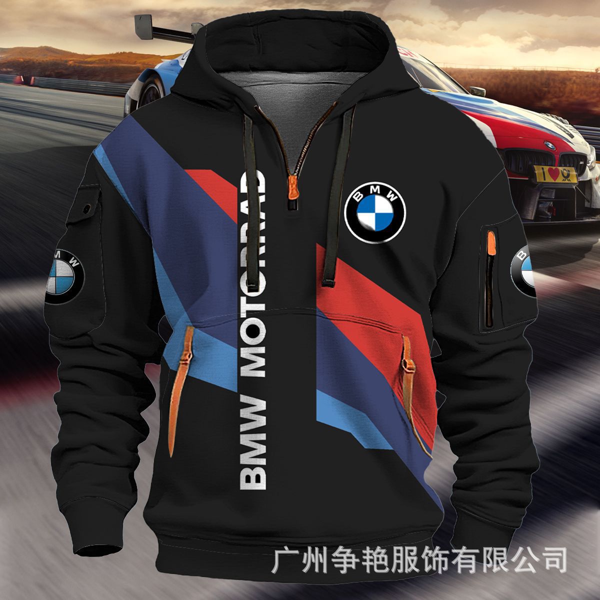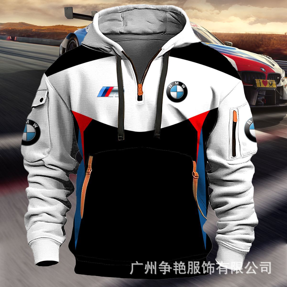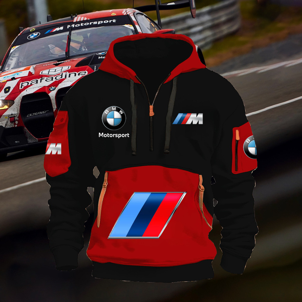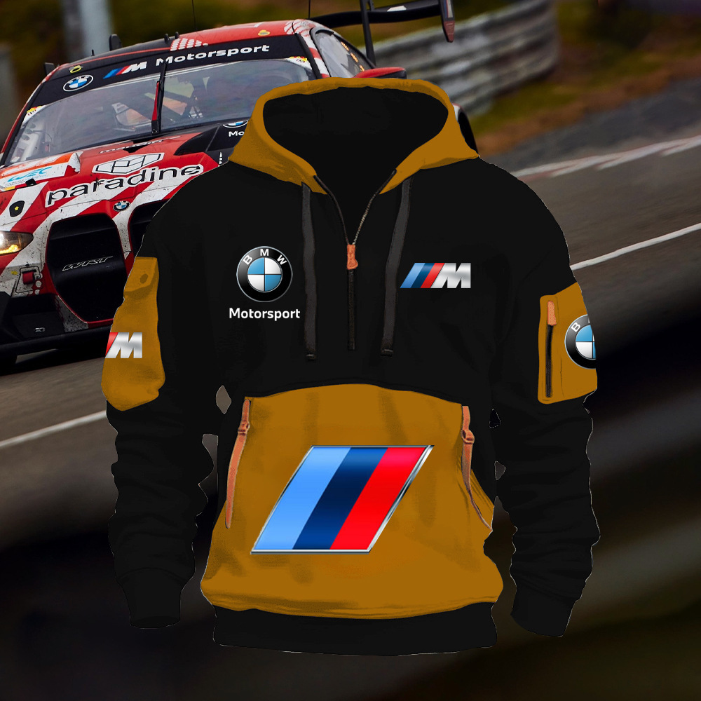 2025 크로스보더 250g 건강한 벨벳 BMW 자동차 로고 남성용 멀티 포켓 지퍼 후드 티셔츠 243스토어 가기