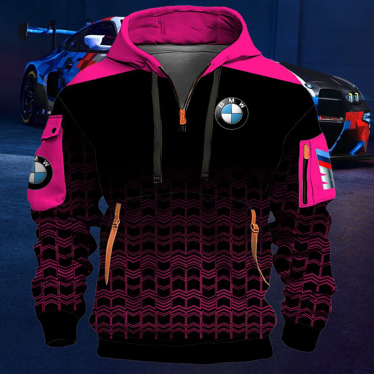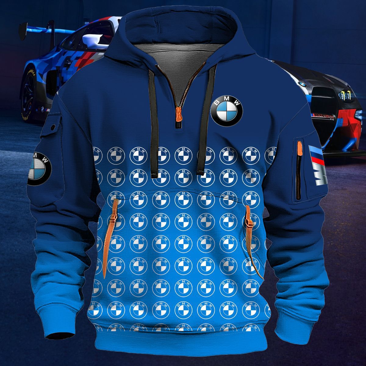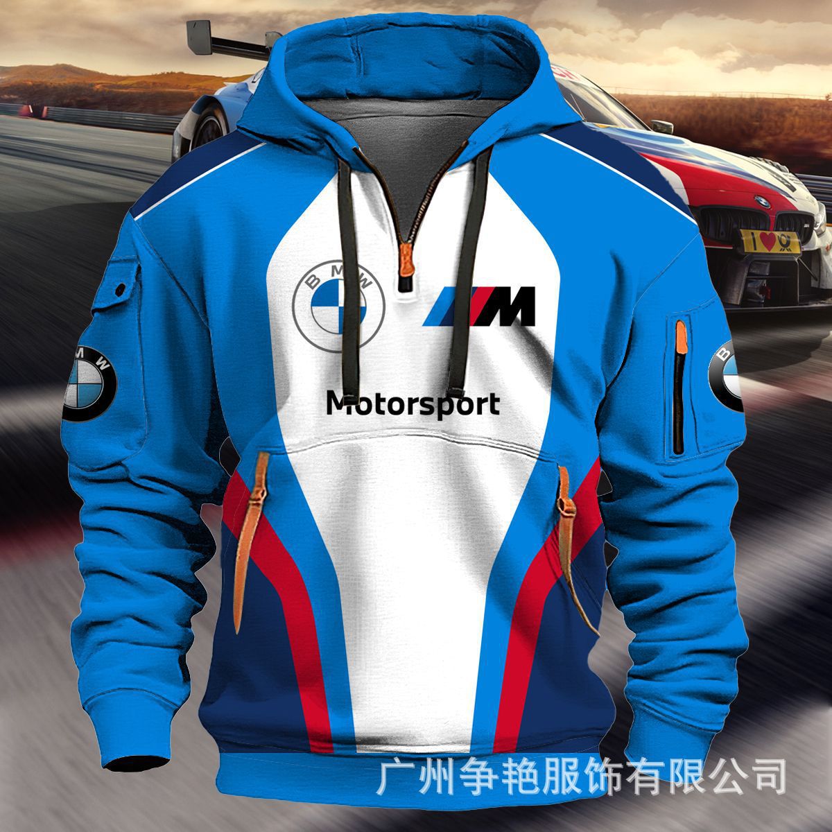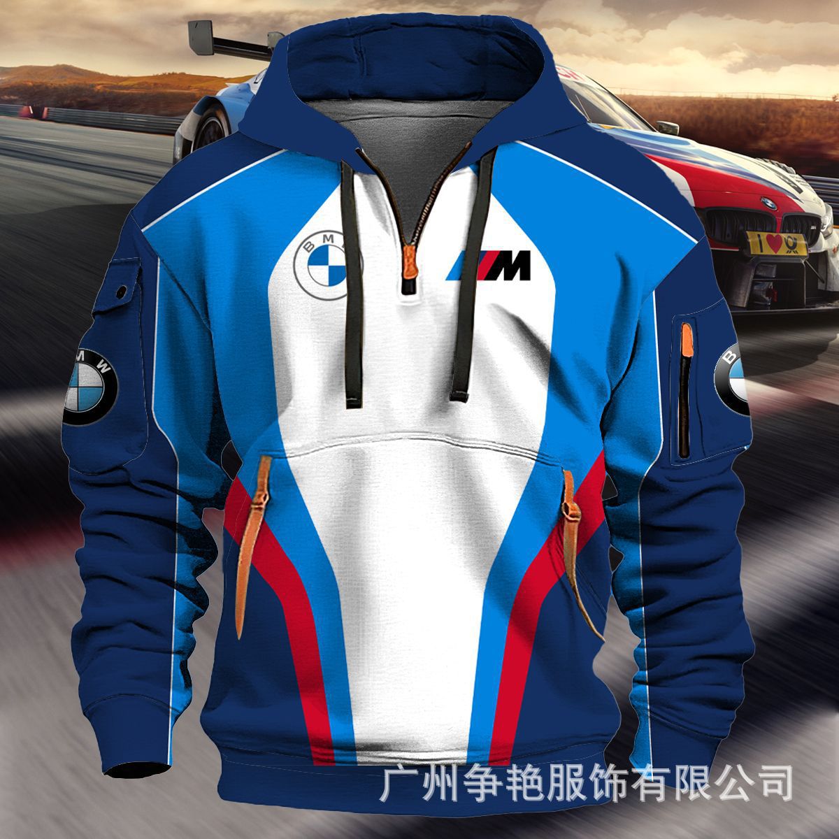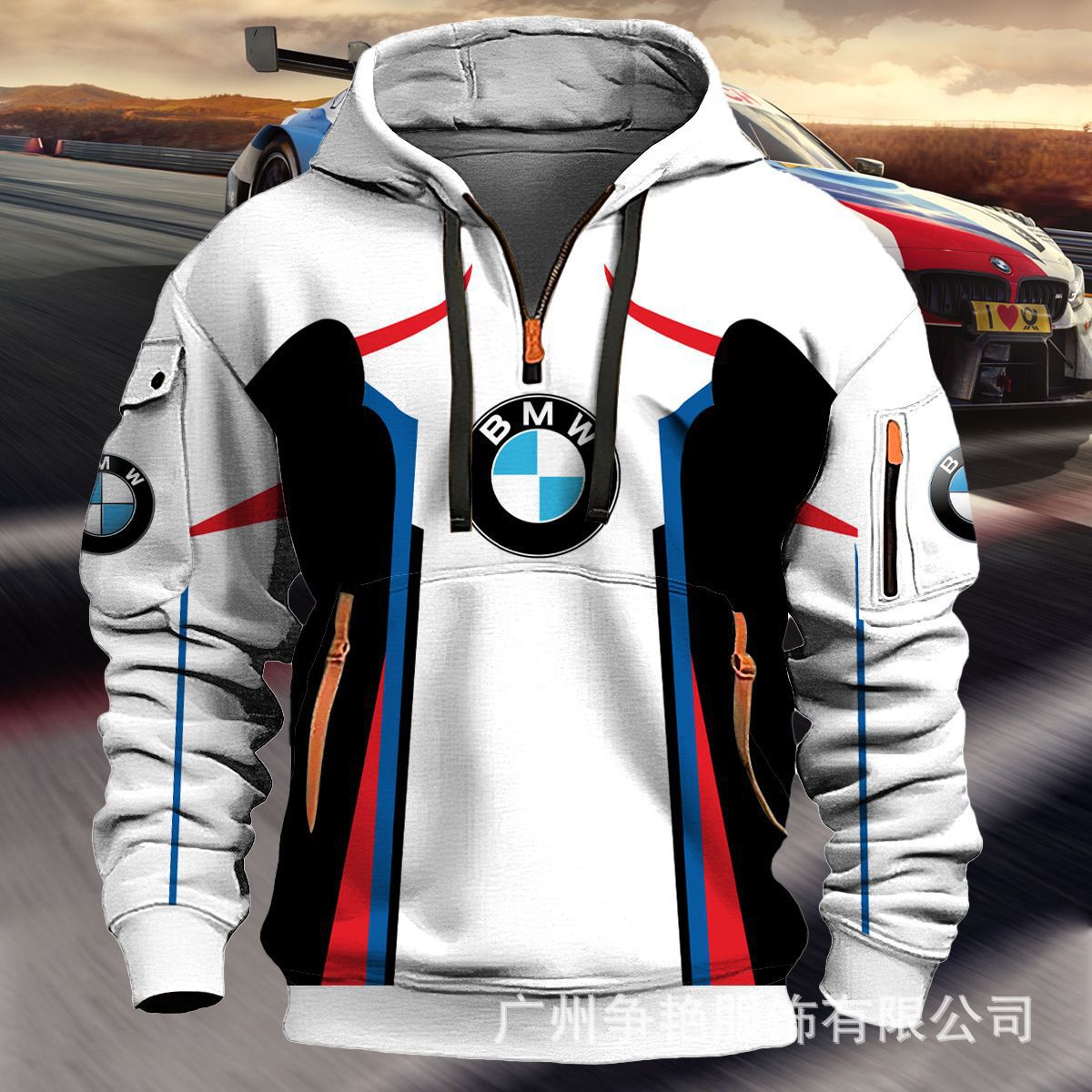 2025 크로스보더 250g 건강한 벨벳 BMW 자동차 로고 남성용 멀티 포켓 지퍼 후드 티셔츠 243스토어 가기