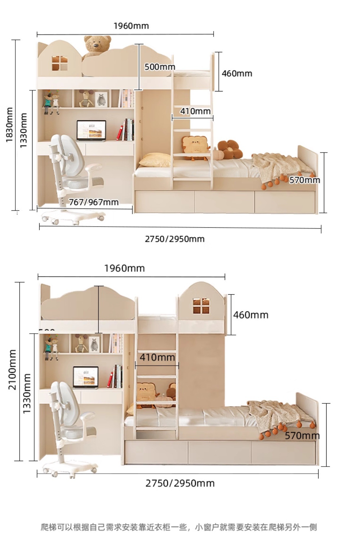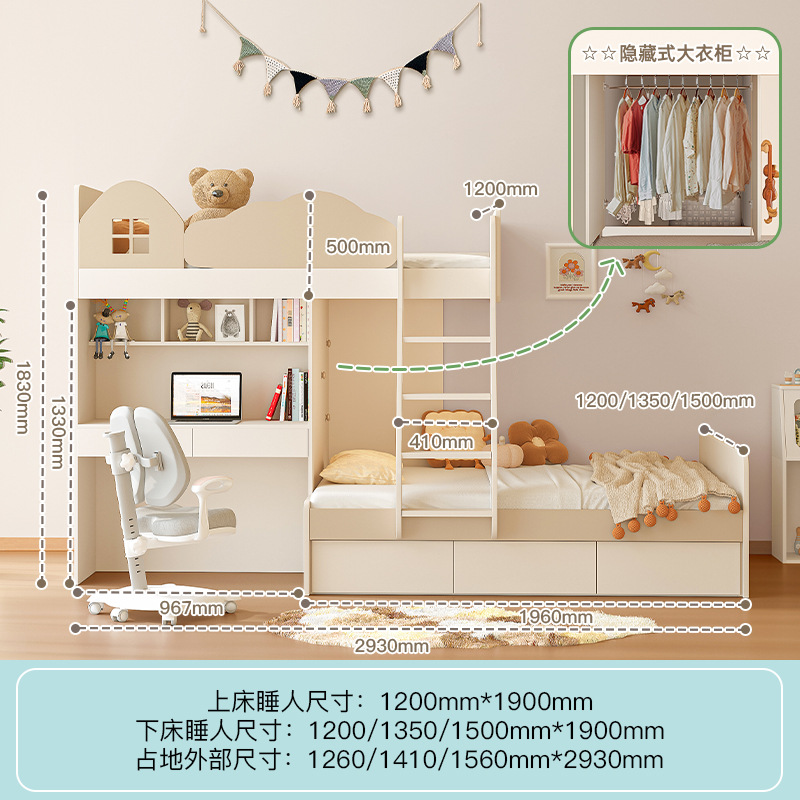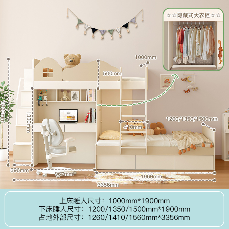 • 1350mm*1900mm+상하 침대