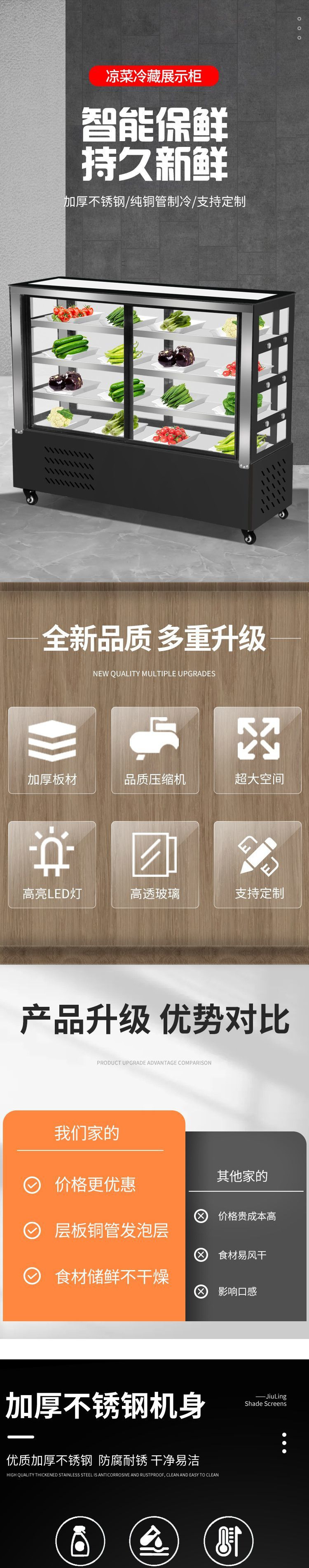 직각 냉장 보존 캐비닛, 상업용 주문 캐비닛, 오리목불고기, 매화야채, 조리식품 매점, 야채 및 차가운 요리 진열장