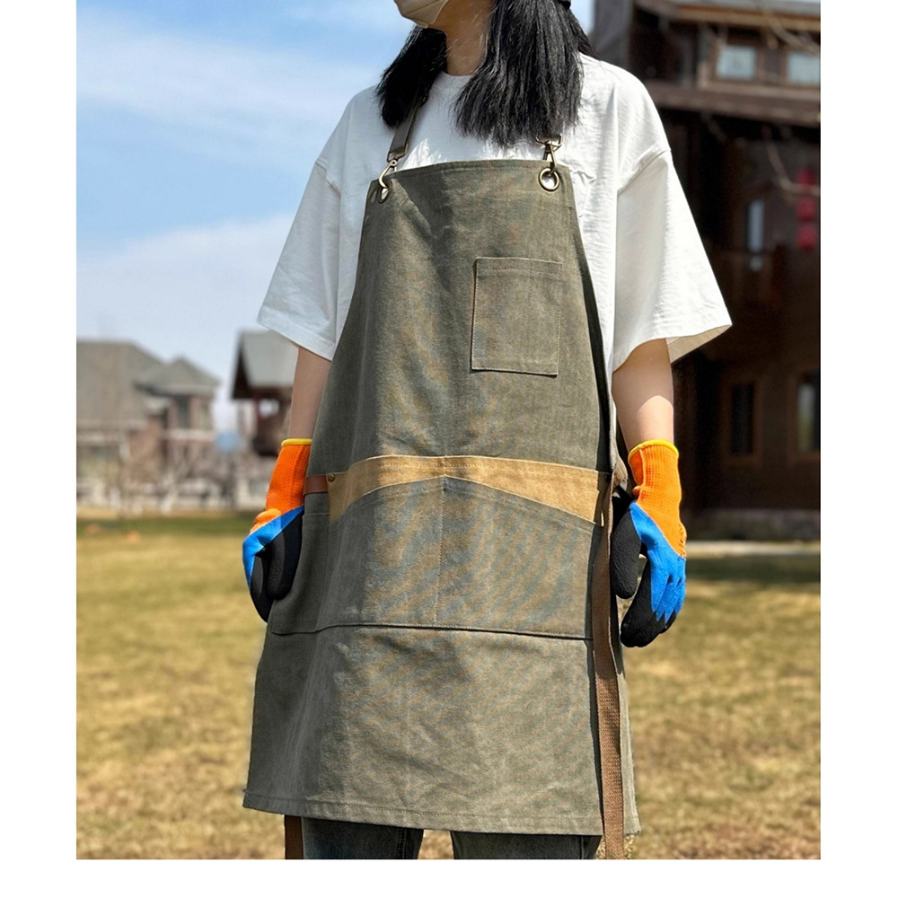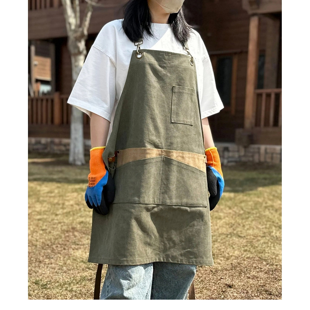 맞춤형 로고 미국식 작업복 캔버스 앞치마 바베큐 의류 바 커피 숍 내마모성 짧은 방오 작업복스토어 가기