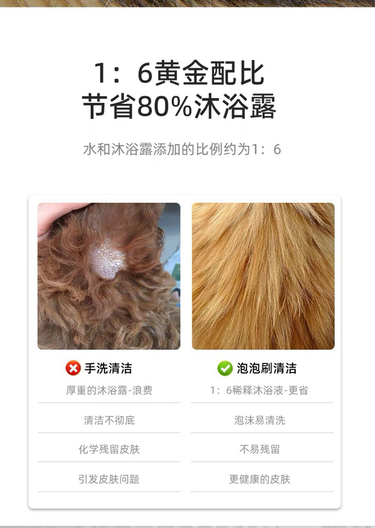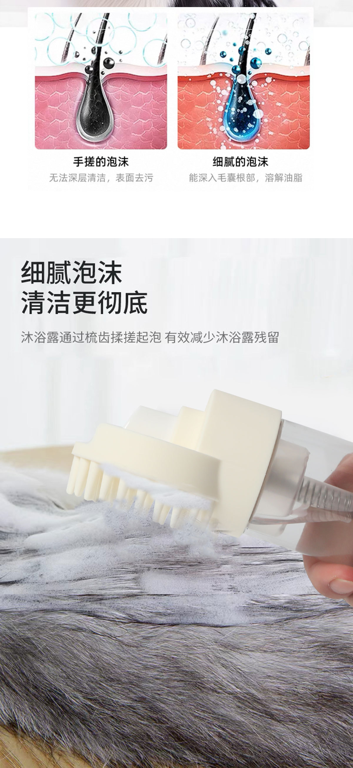 애완 동물 목욕 빗 마사지 고양이 개 특별한 목욕 샤워 젤 희석 거품 기계 거품