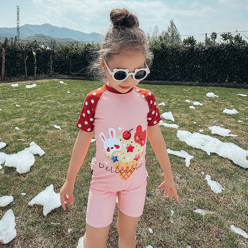 2025 새로운 어린이 수영복 소녀 원피스 태양 보호 속건성 귀여운 아기 중간 어린이 소녀 수영 도매스토어 가기