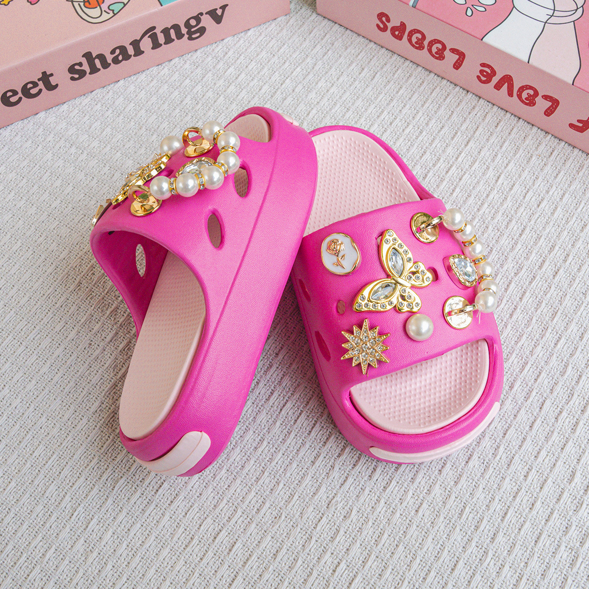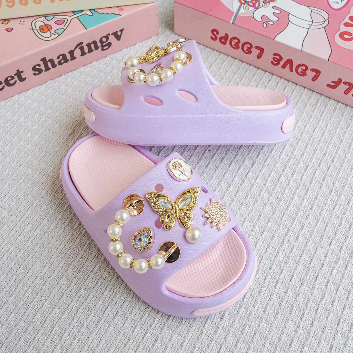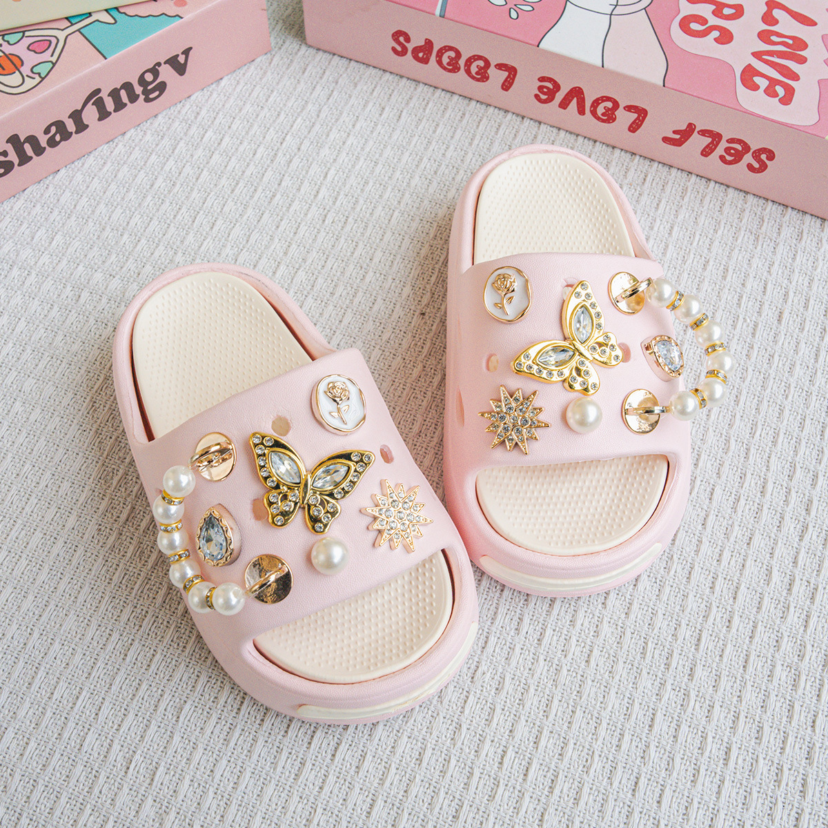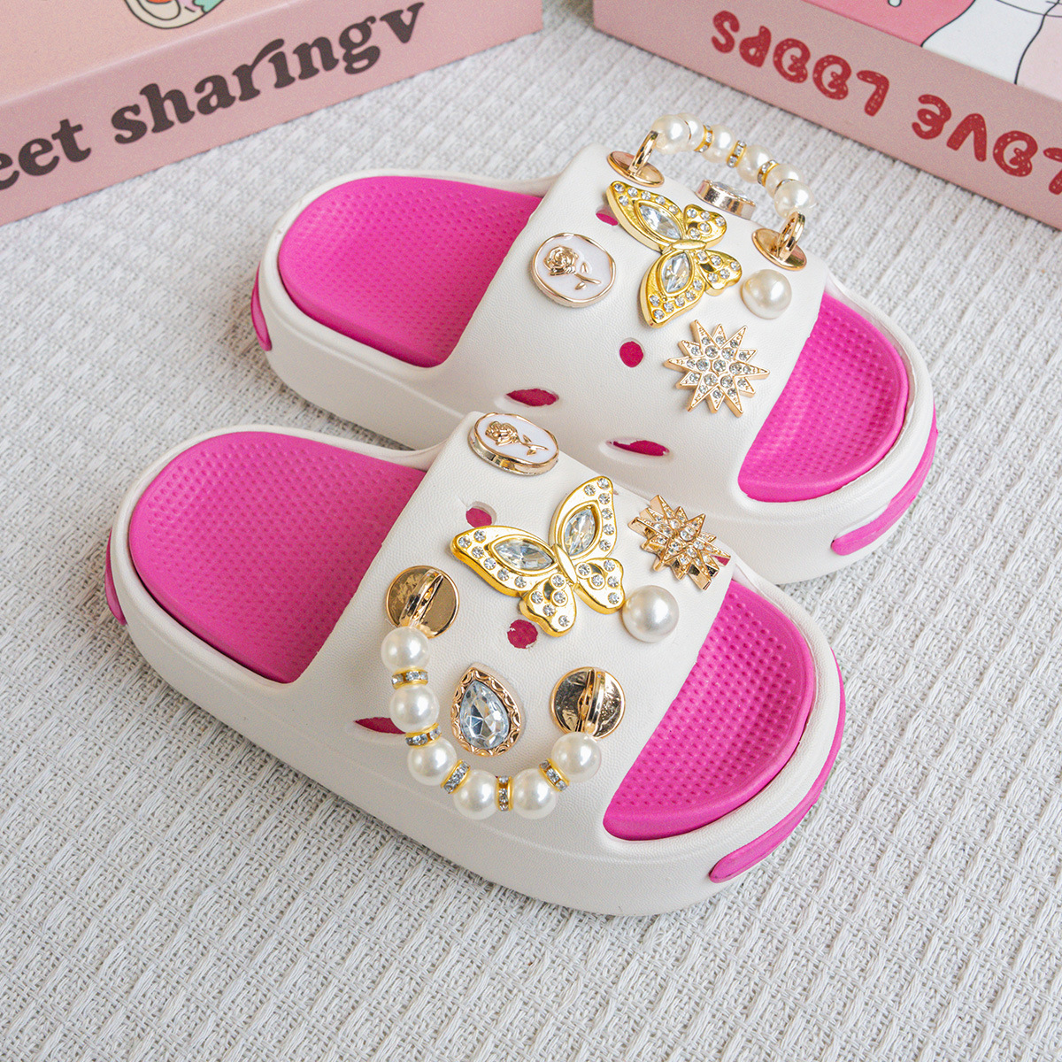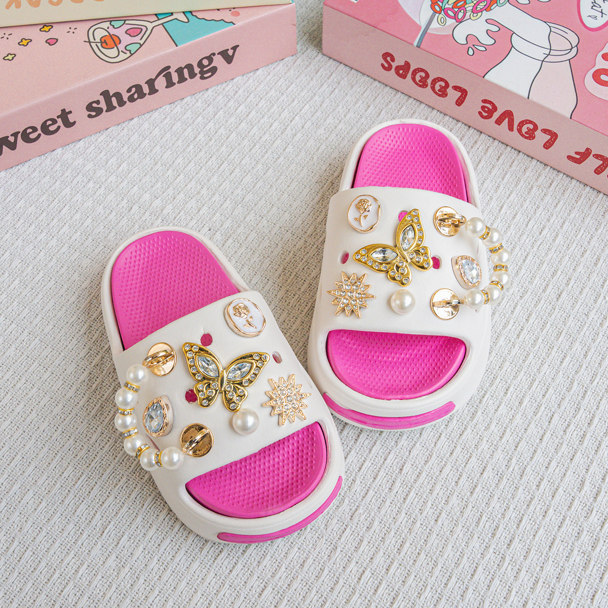 EVA 어린이 슬리퍼 여름 겉옷 진주 골드 나비 샌들 소녀 아기 해변 슬리퍼