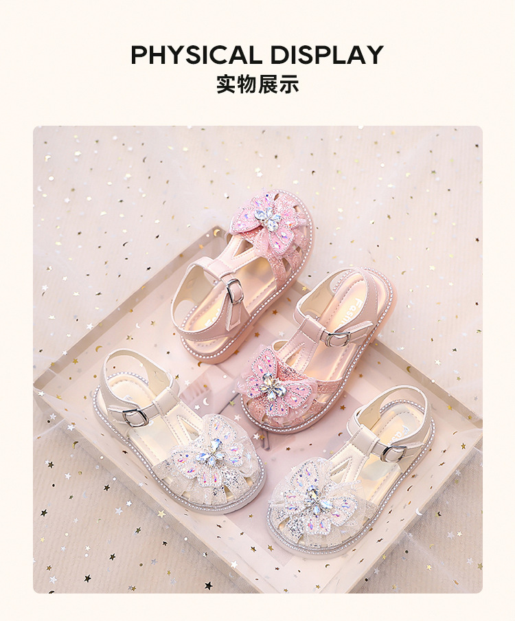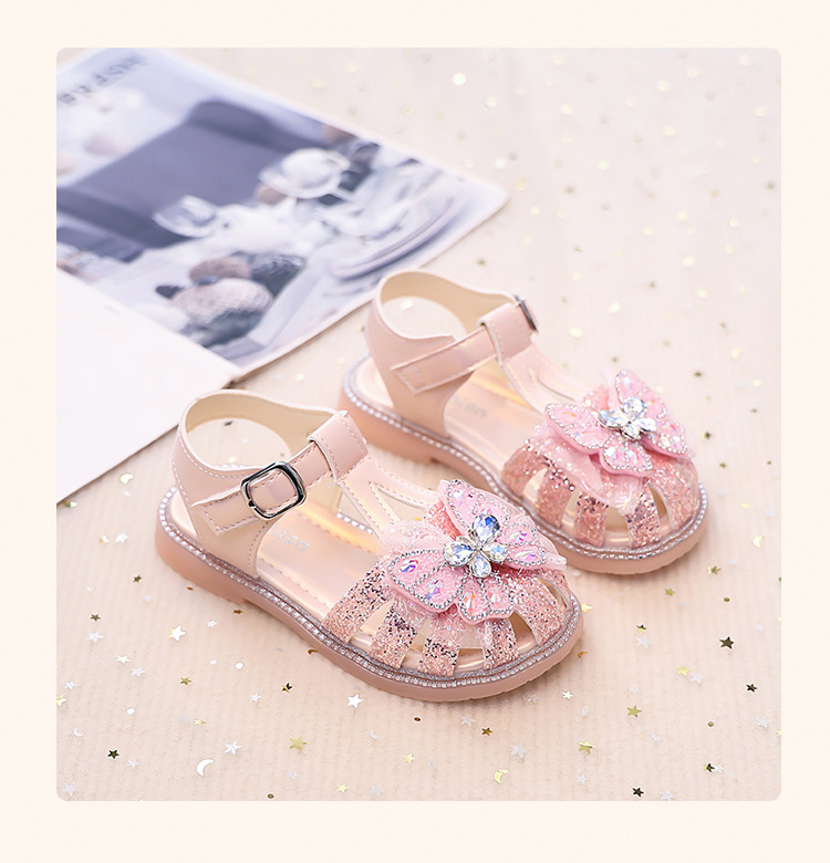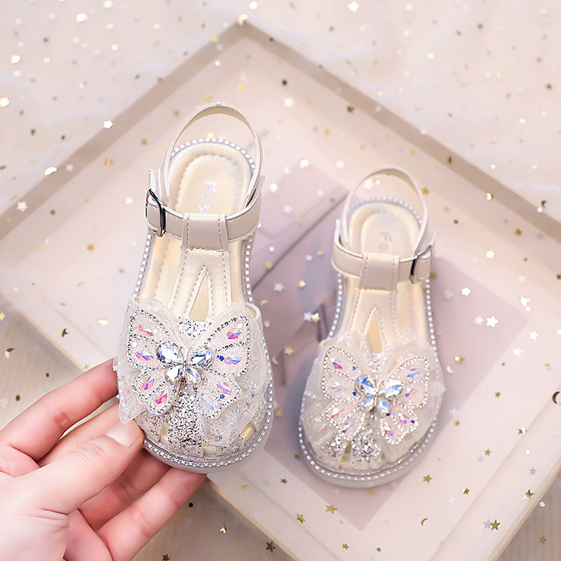 여자 발가락 샌들, 여자 공주 신발, 여름 새 크리스탈 비치 신발, 부드러운 밑창 여자 나비 어린이 신발스토어 가기