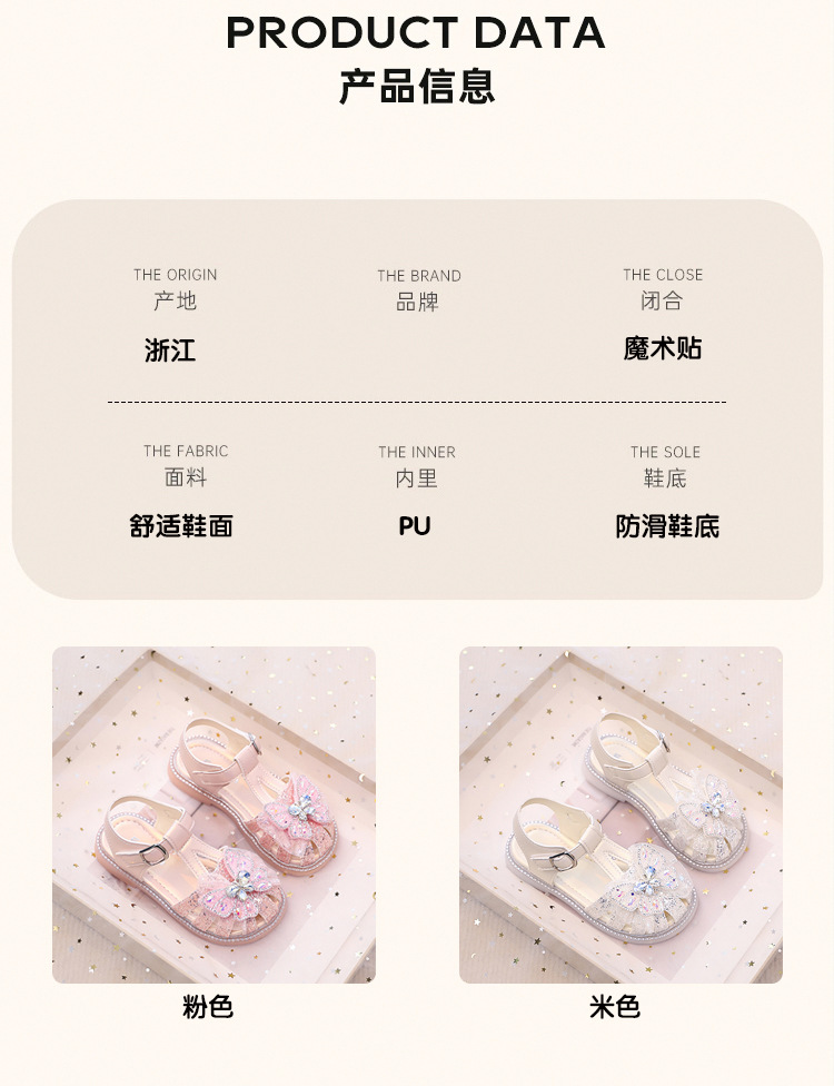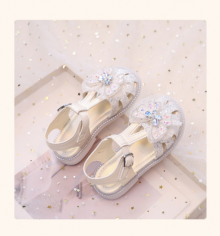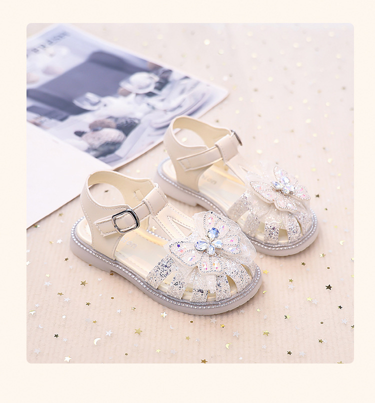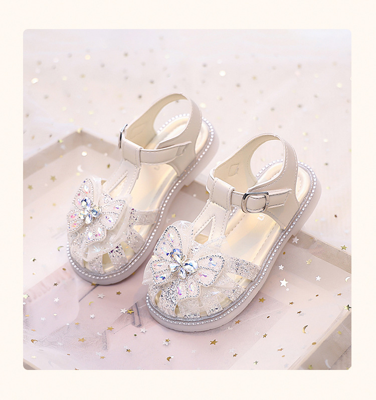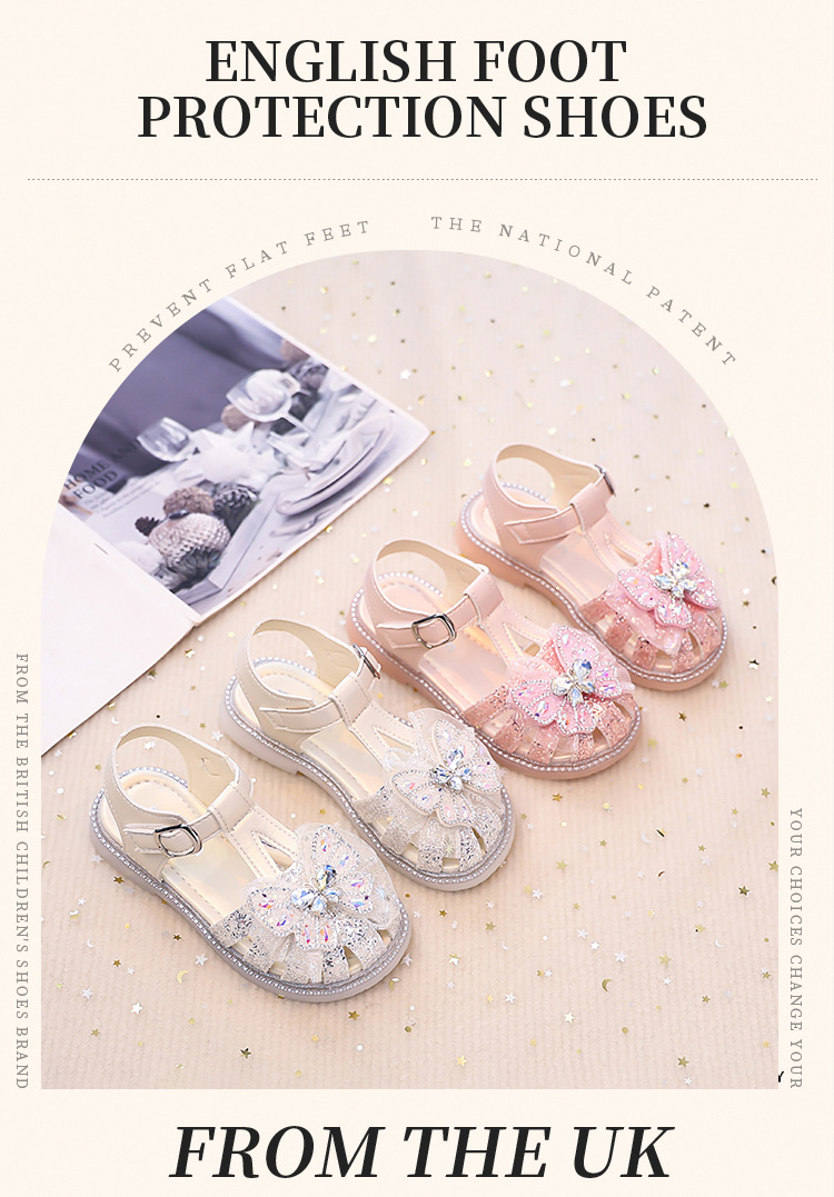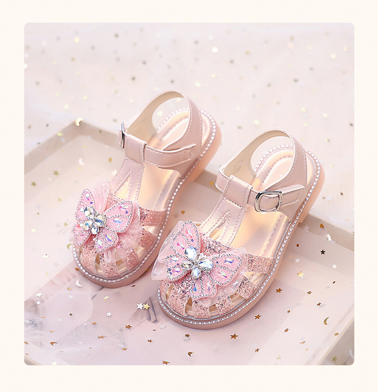 여자 발가락 샌들, 여자 공주 신발, 여름 새 크리스탈 비치 신발, 부드러운 밑창 여자 나비 어린이 신발