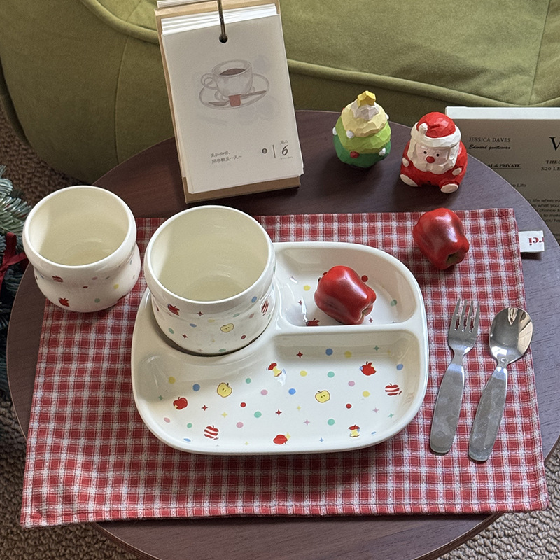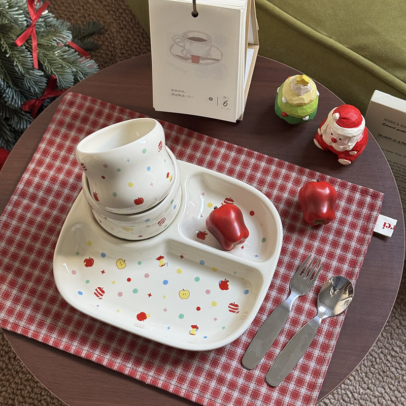 저작권 애플 도트무늬 3칸 식사 접시 세라믹 1인용 아침 식사 접시 가정용 211 지방 감소 어린이 식기스토어 가기