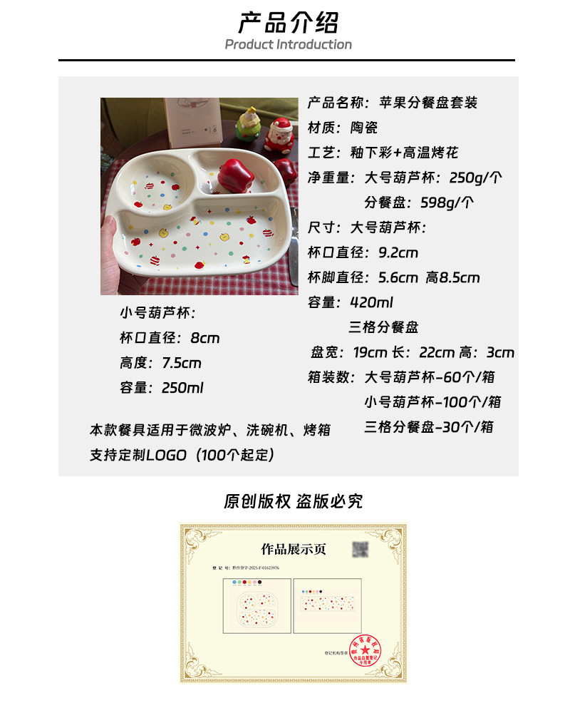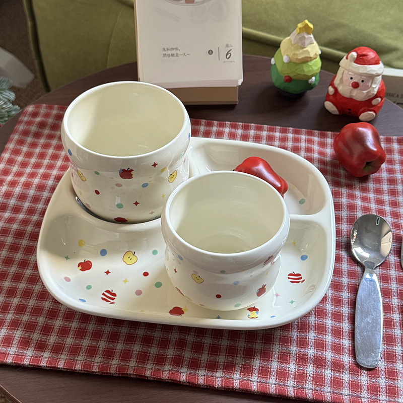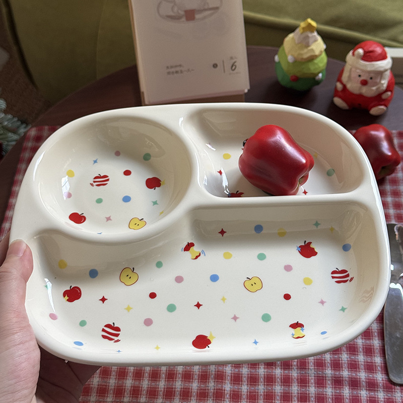 저작권 애플 도트무늬 3칸 식사 접시 세라믹 1인용 아침 식사 접시 가정용 211 지방 감소 어린이 식기