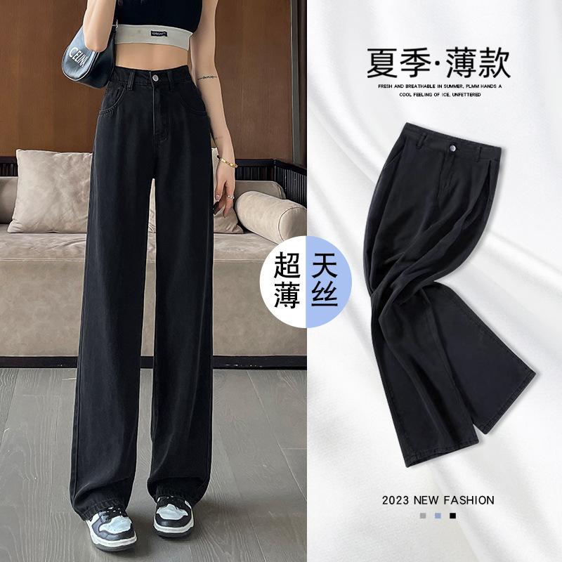 광저우 소스 Tencel 좁은 넓은 다리 청바지 여성의 2025 여름 얇은 얼음 실크 높은 허리 느슨한 스트레이트 바지스토어 가기