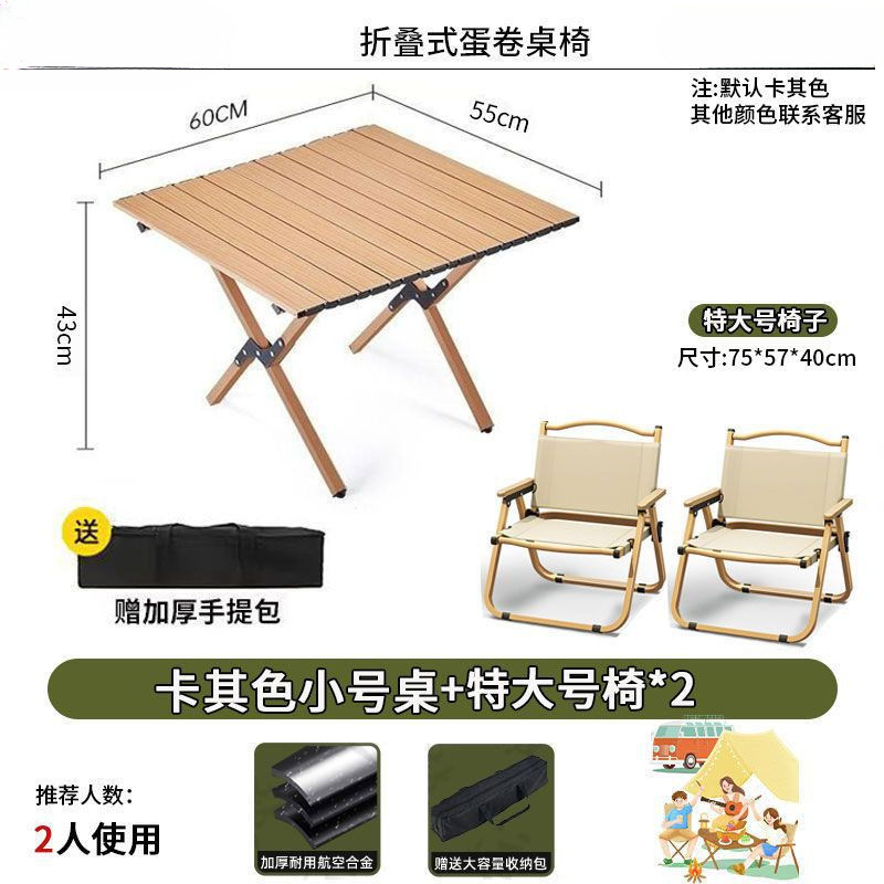 • 60cm 에그롤 테이블 + 특대형 의자 2개 [기본 카키색상/