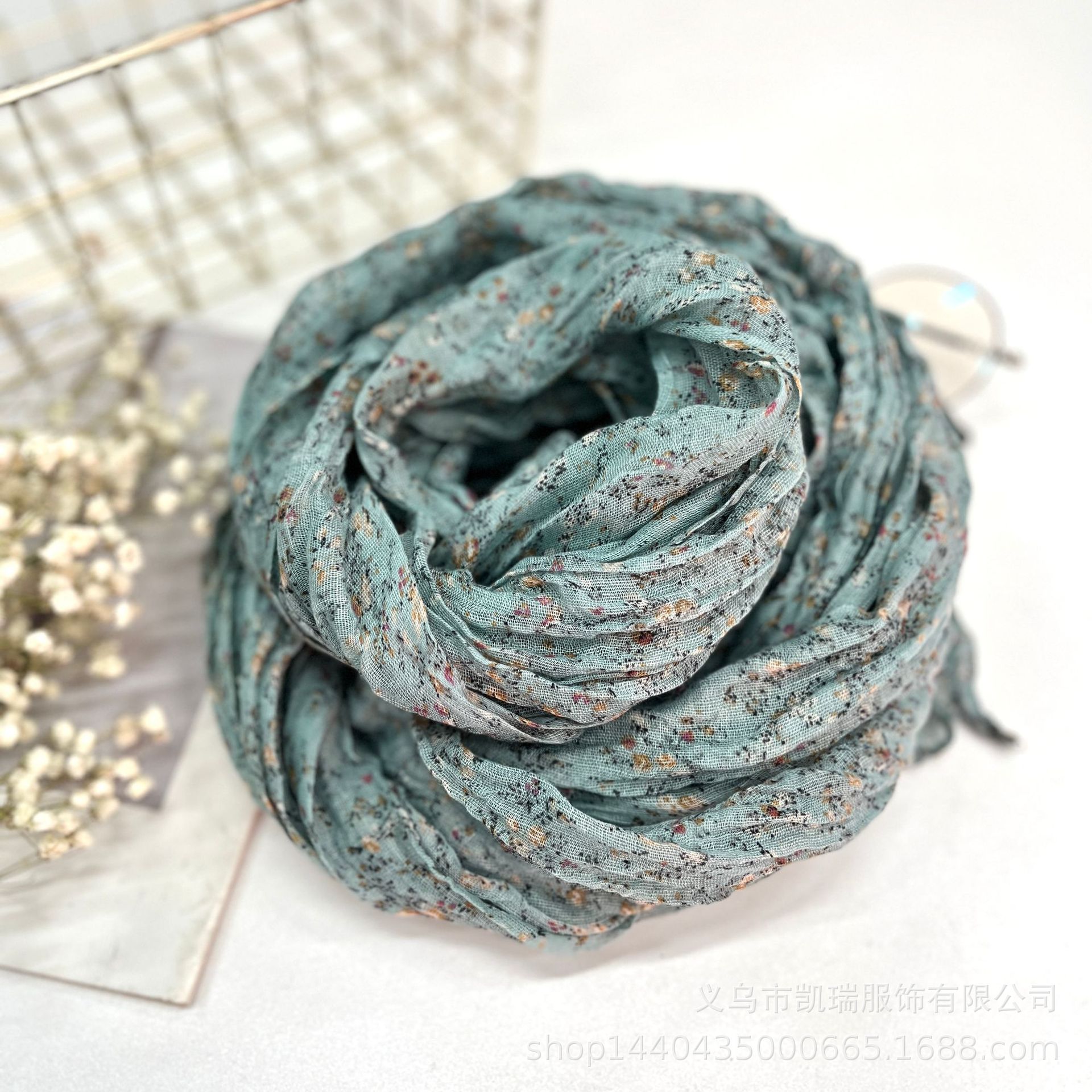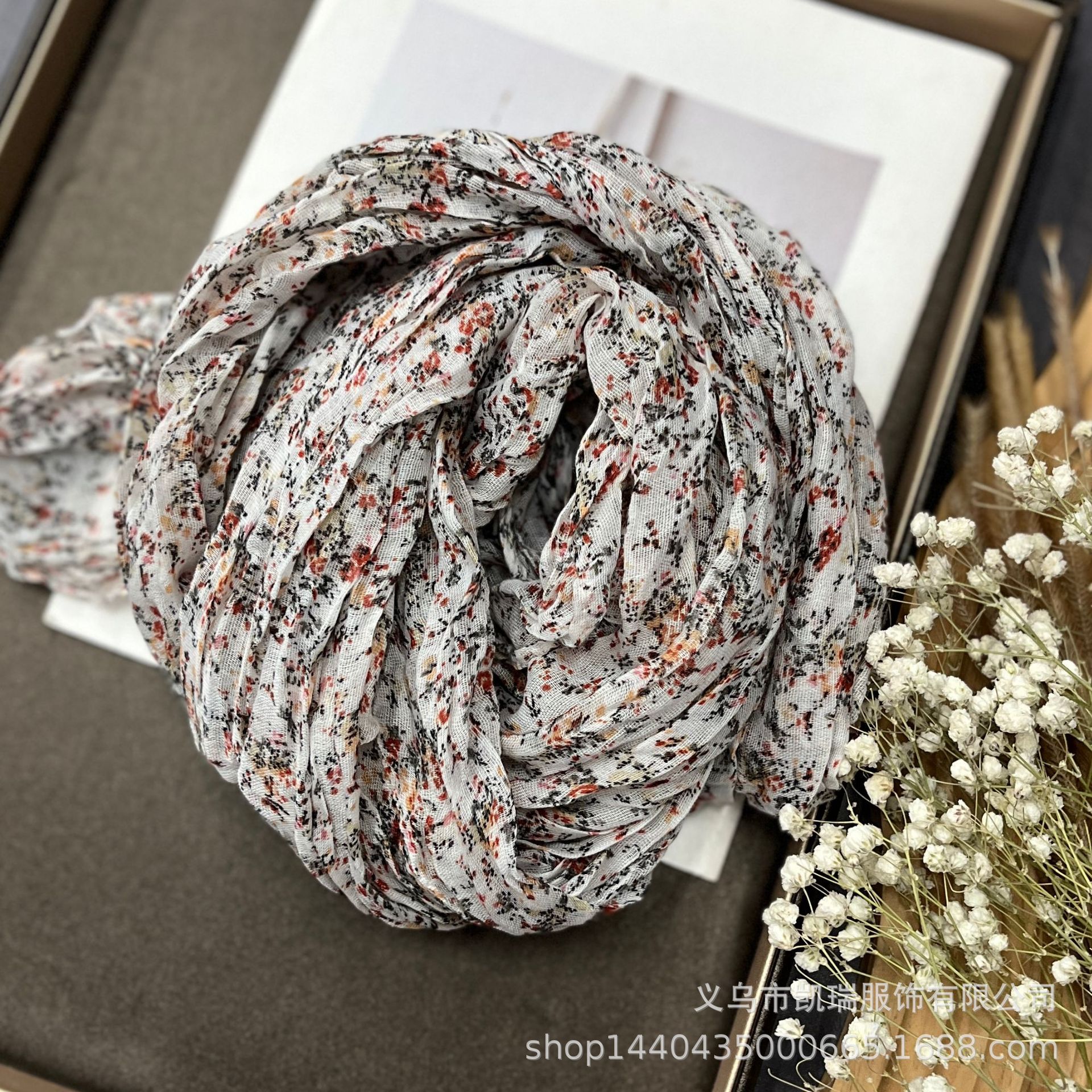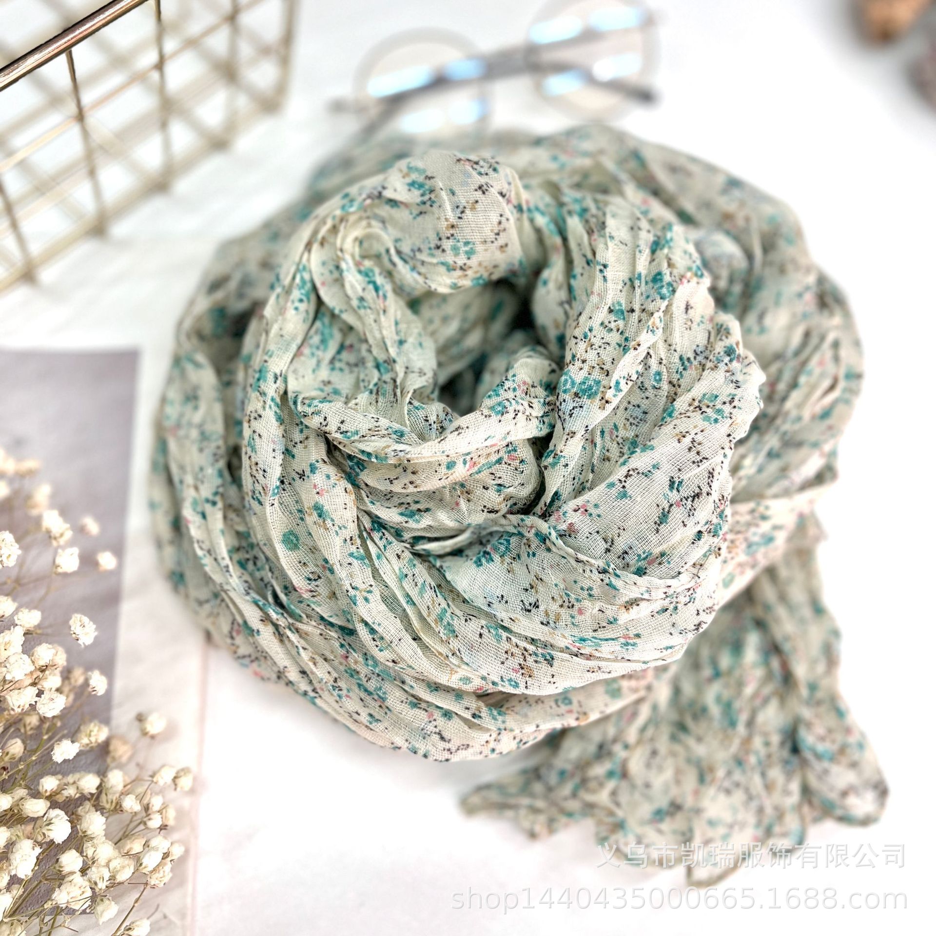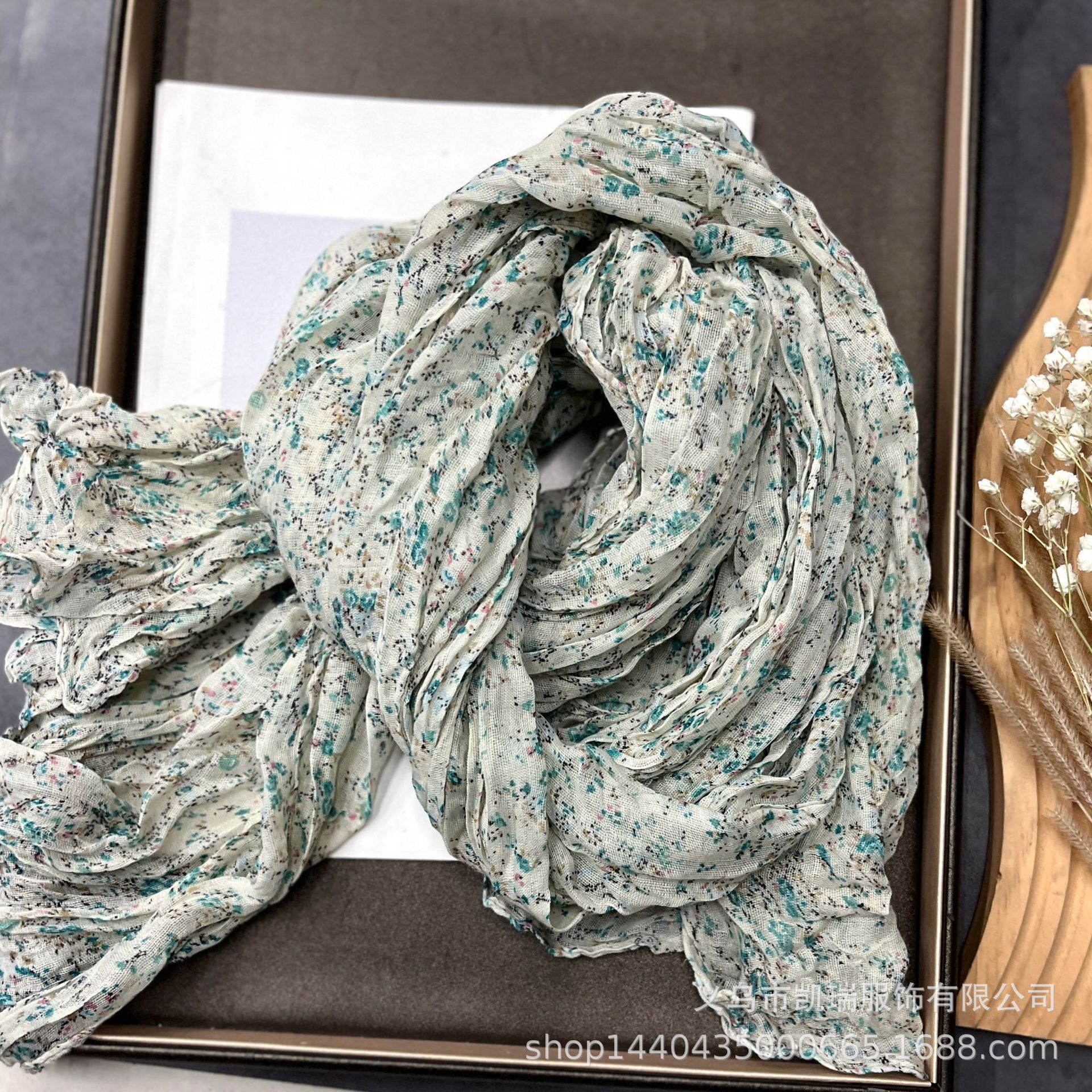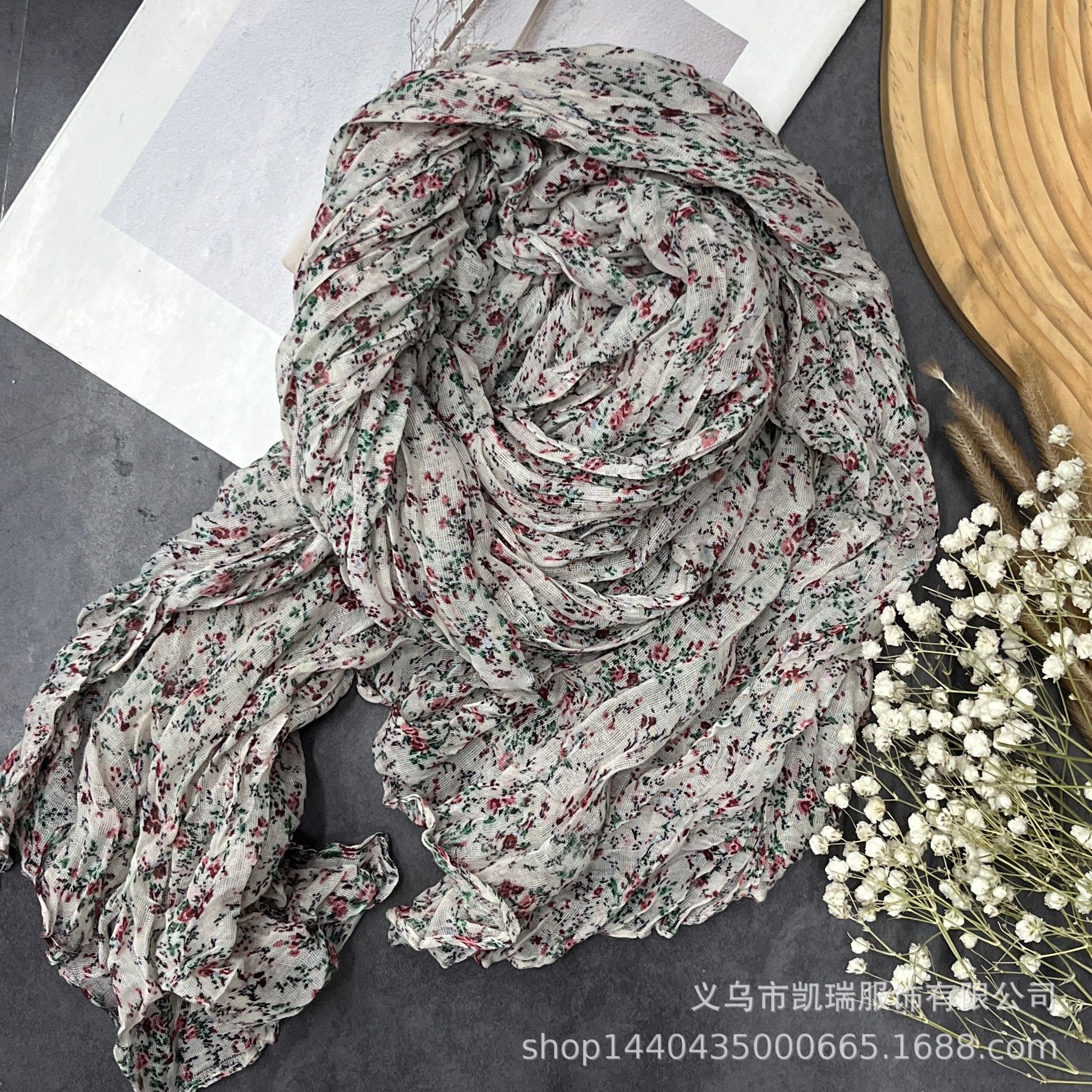 여성을 위한 얇은 면 및 린넨 스카프, 새로운 작은 꽃무늬, 복고풍 숲 스타일, 부드러운 도트 무늬, 여성용 주름 다용도 실크 스카프스토어 가기