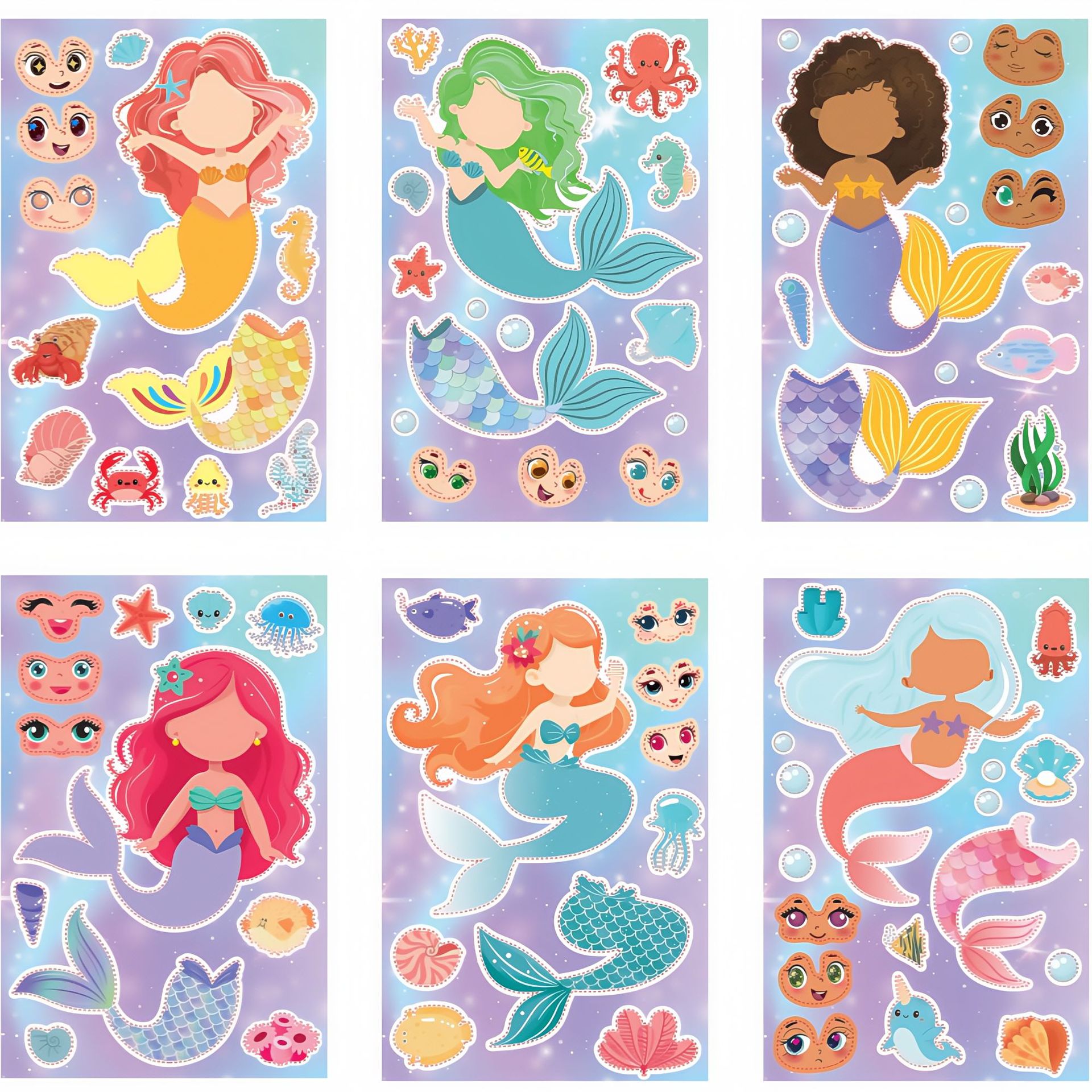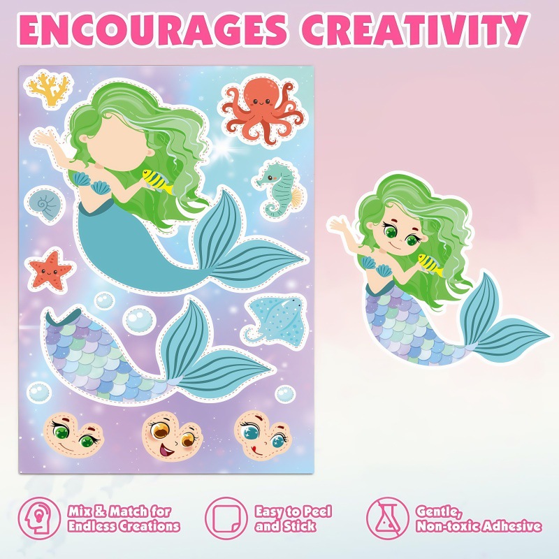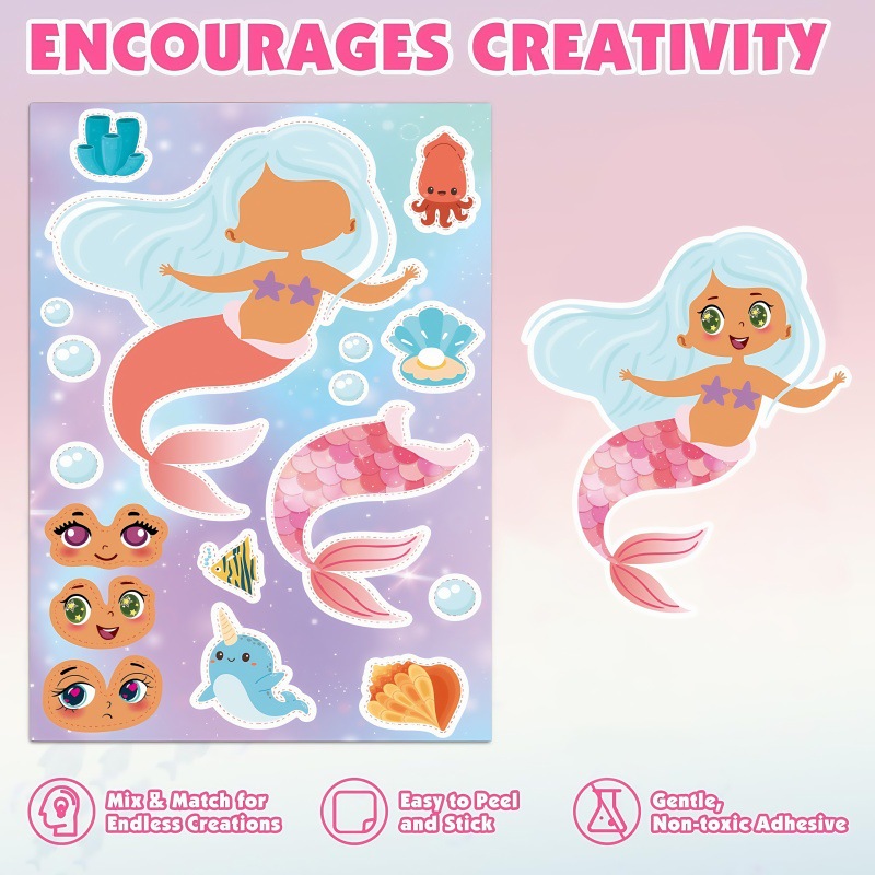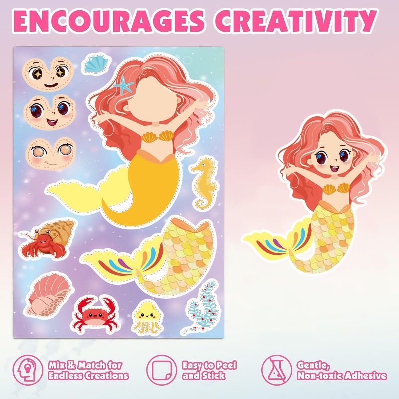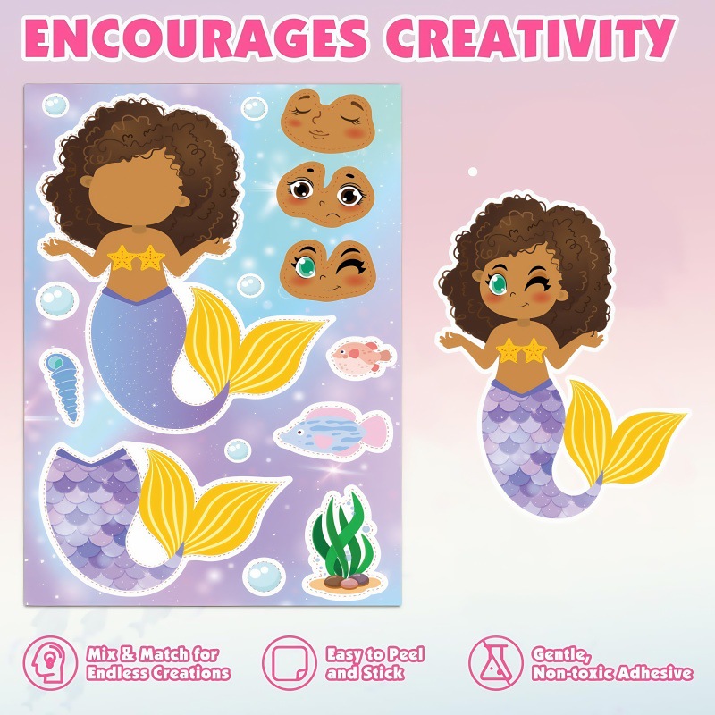 국경 간 인어 DIY 스티커 6 만화 얼굴 변경 어린이 스티커 공주 손 계정 퍼즐 손 장식 퍼즐스토어 가기