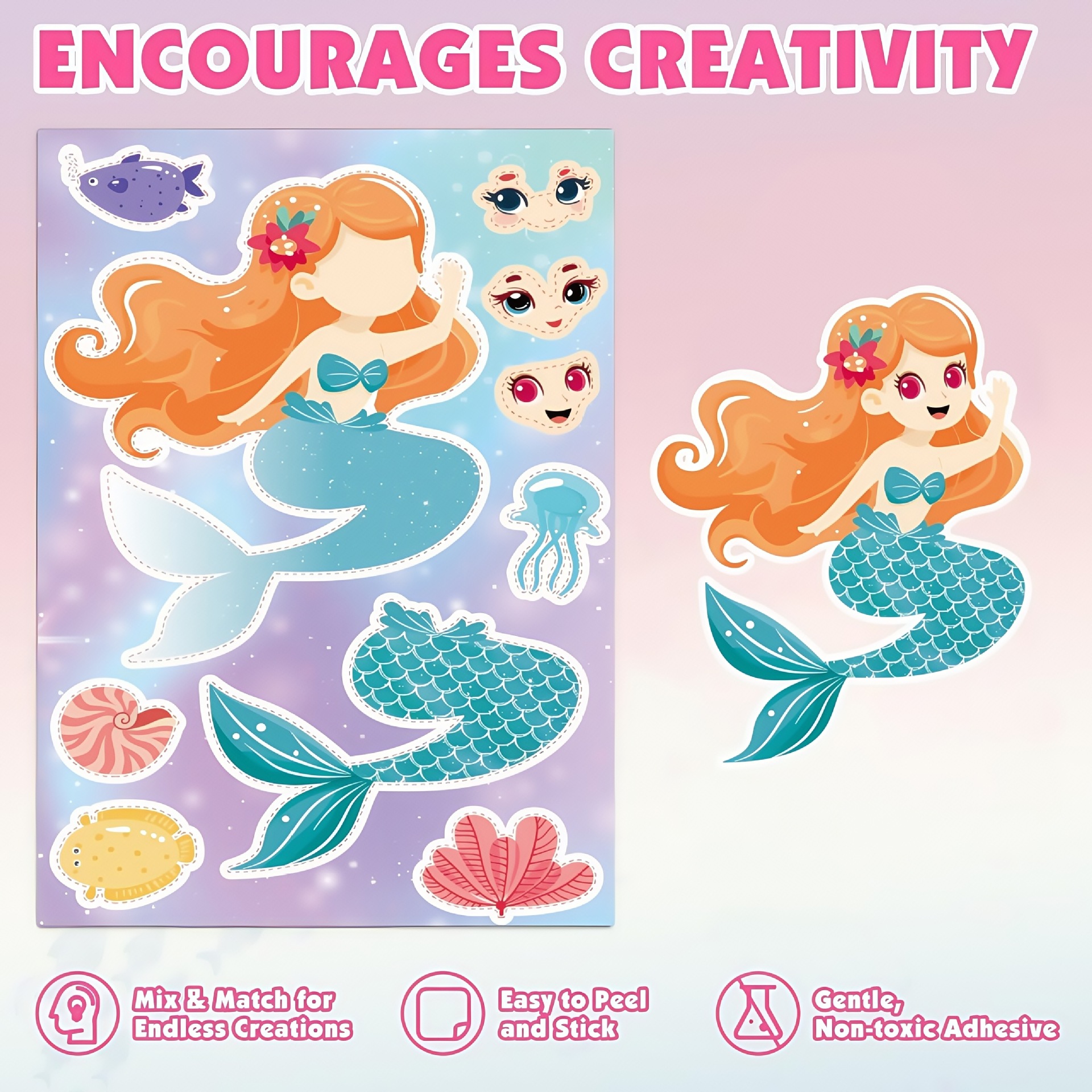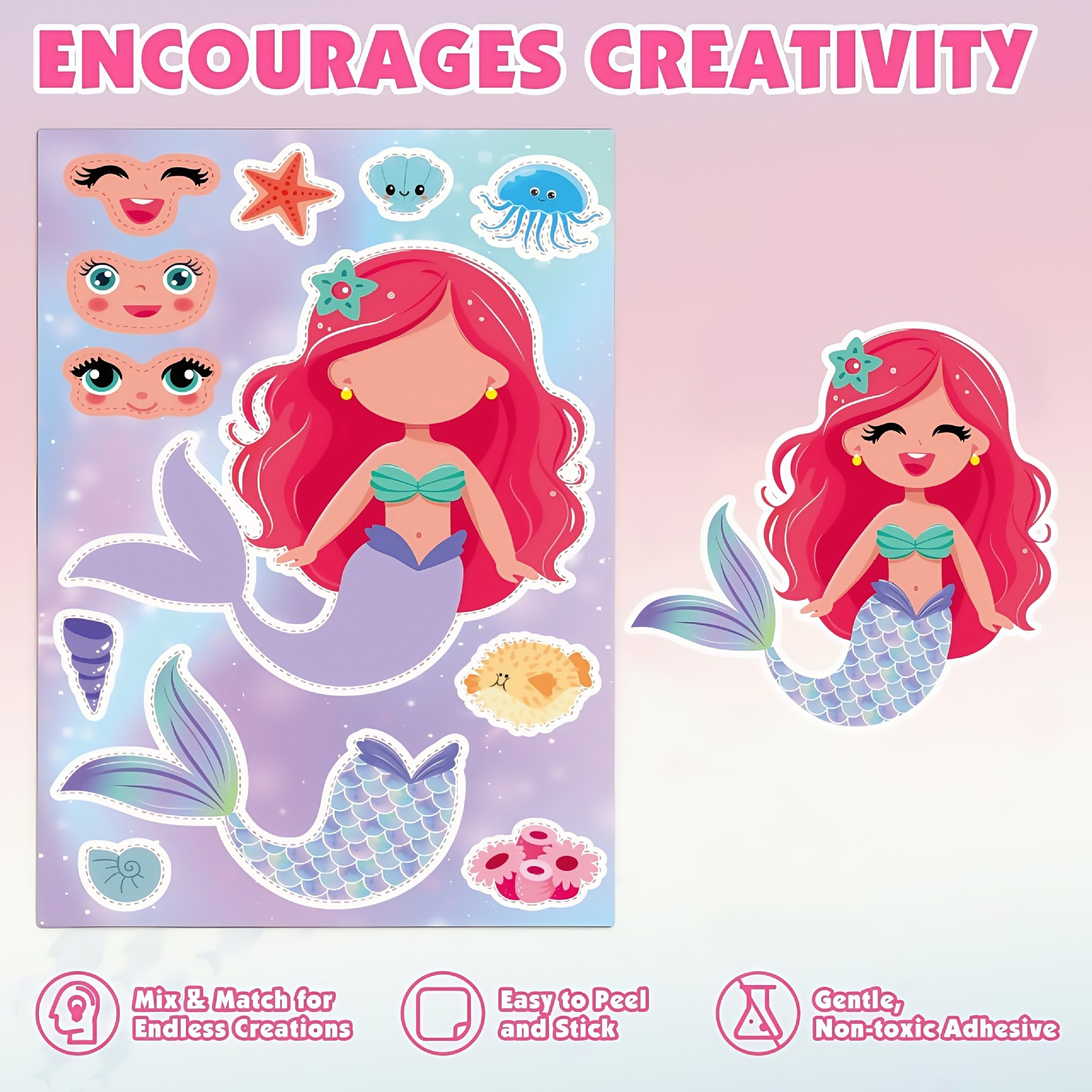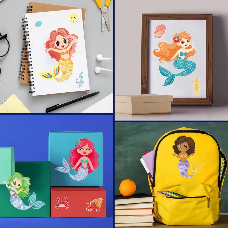 국경 간 인어 DIY 스티커 6 만화 얼굴 변경 어린이 스티커 공주 손 계정 퍼즐 손 장식 퍼즐스토어 가기